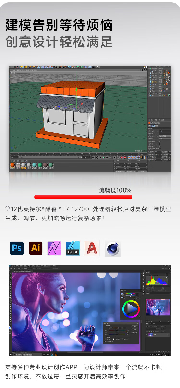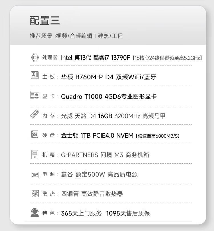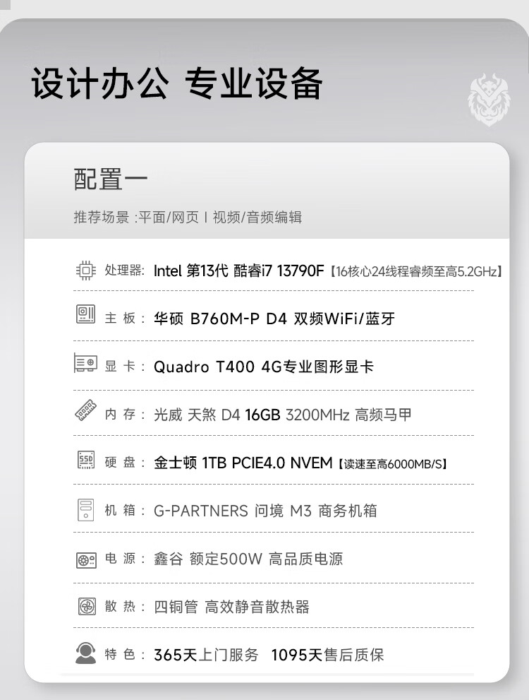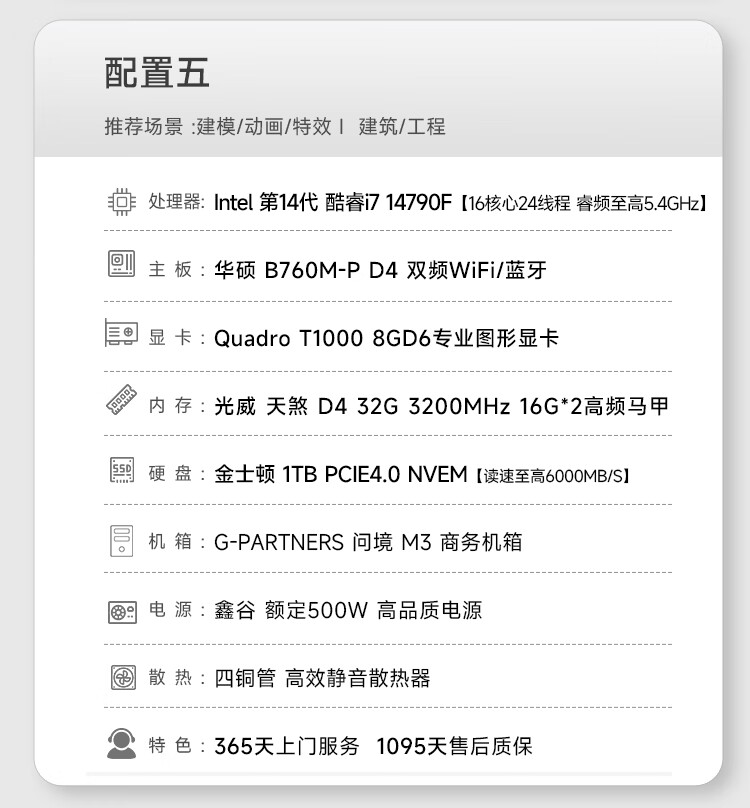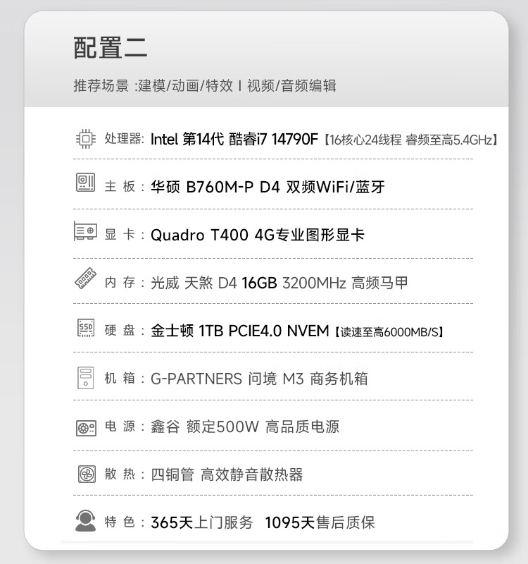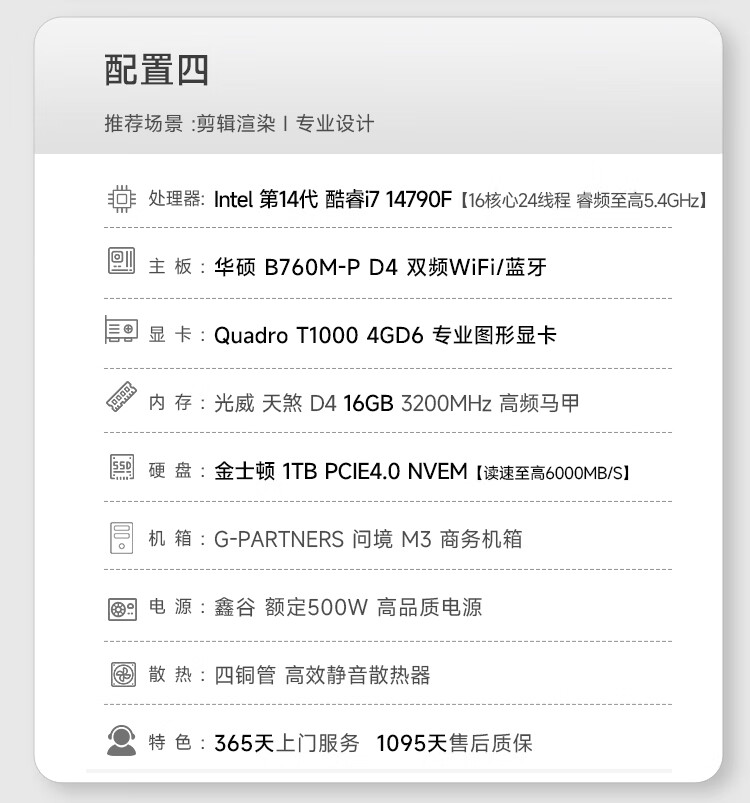 Wuji Turing i7 14700F/T400/T1000/A2000 video editing graphics design rendering modeling desktop computer host complete assembly computer DIY assembly machine 13th generation i7+T400 4G+1TB configuration one