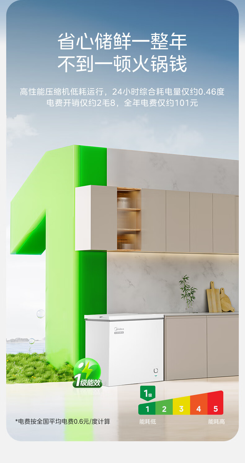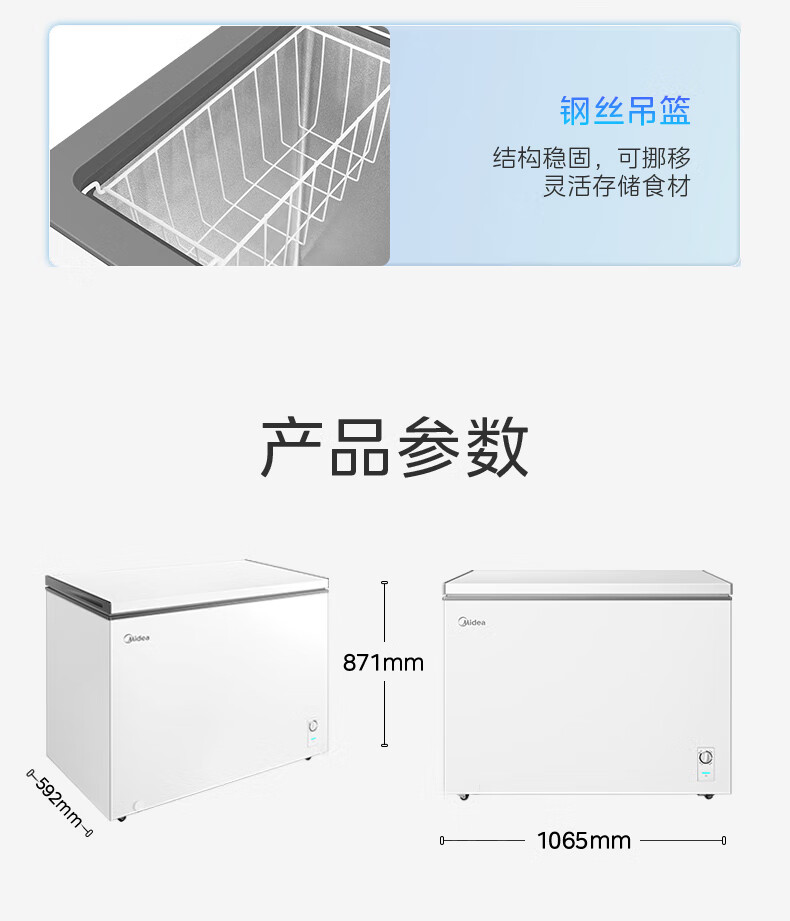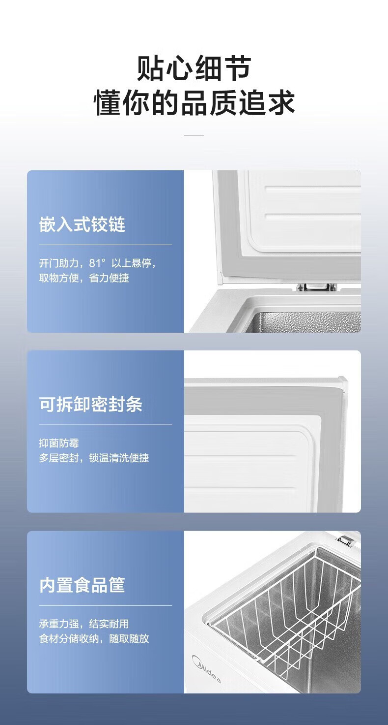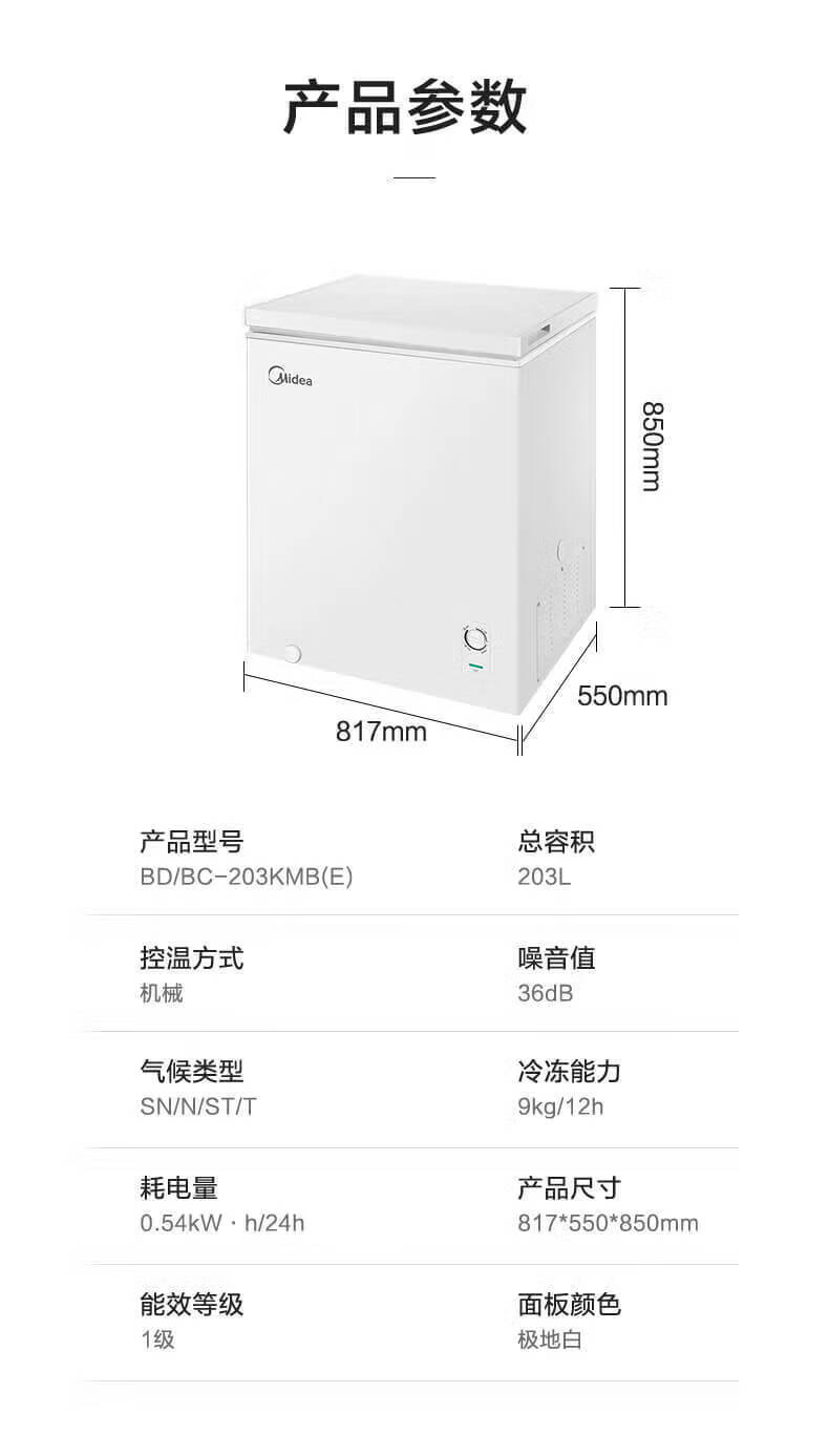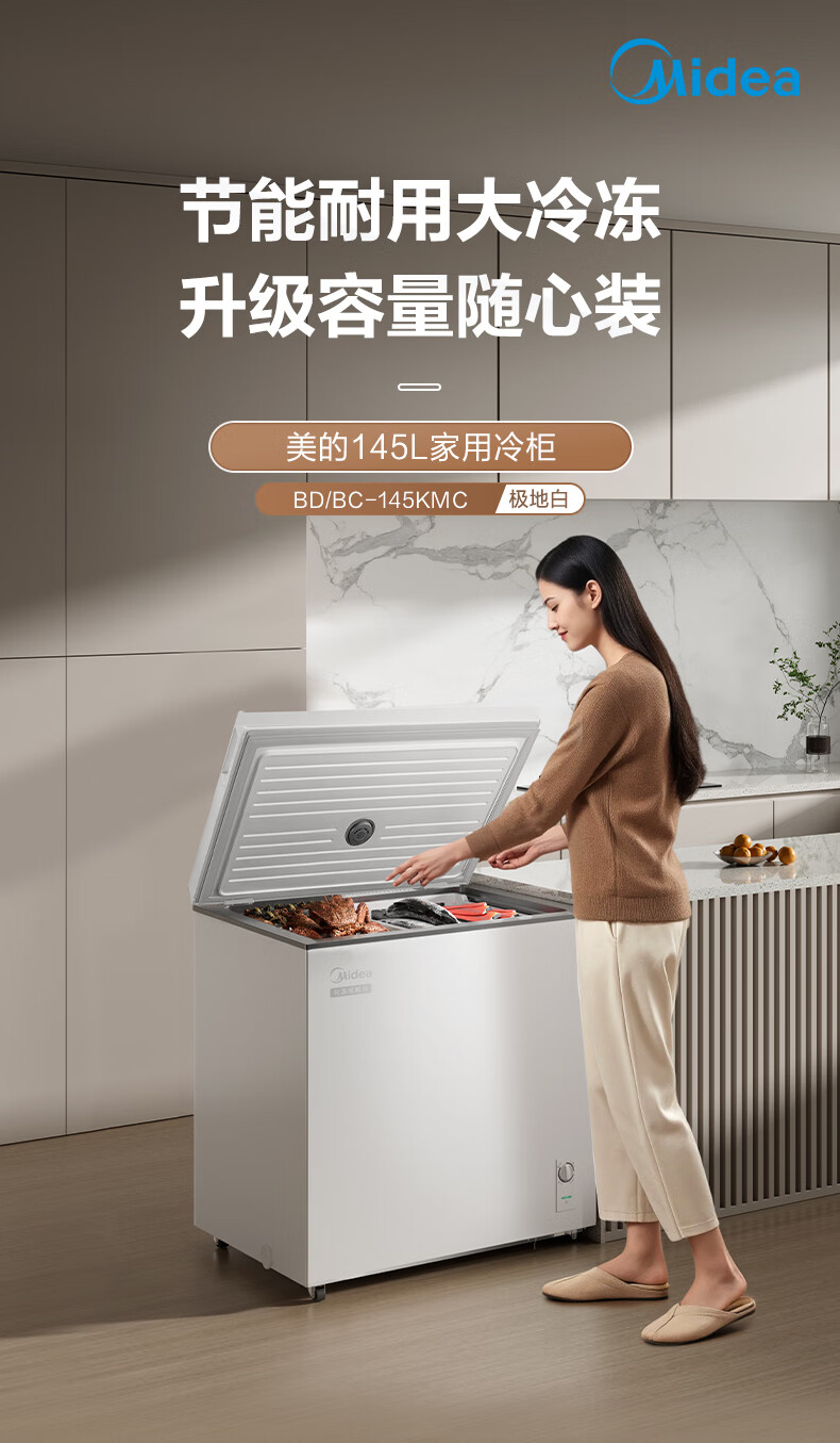 Midea freezer household commercial frost reduction sterilization low noise quick freezing freezer refrigerated freezer small freezer energy saving horizontal refrigerator high-end version 203L first-class energy efficiency 203KMB