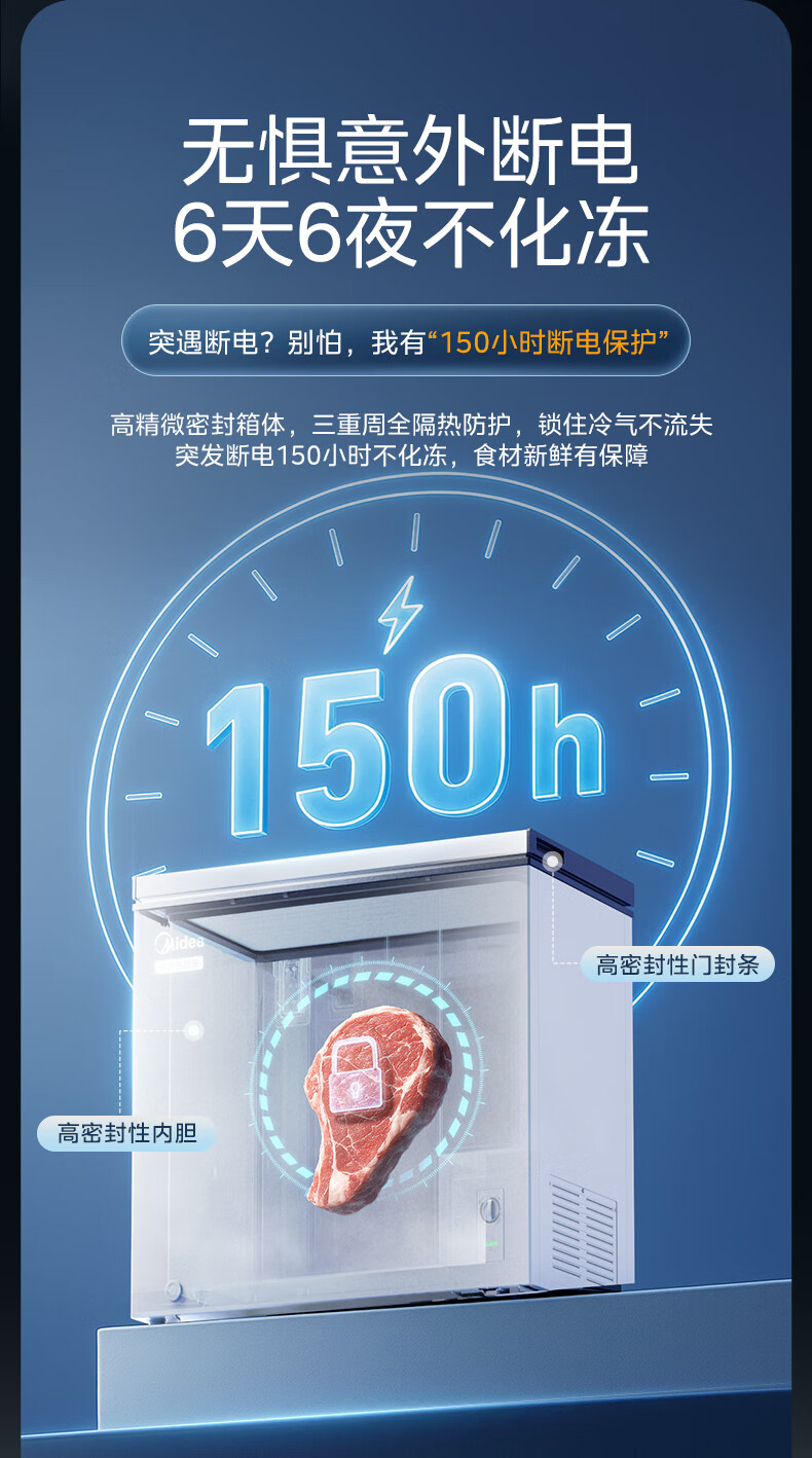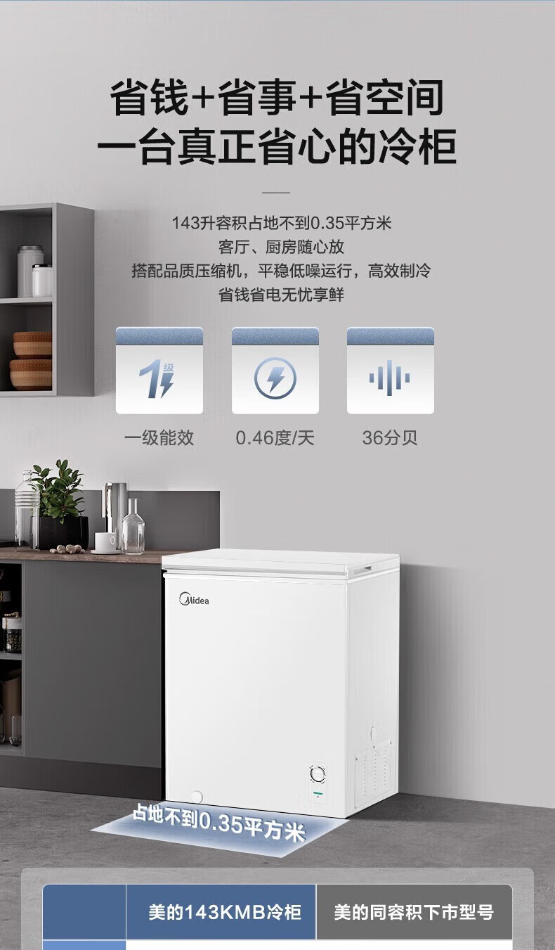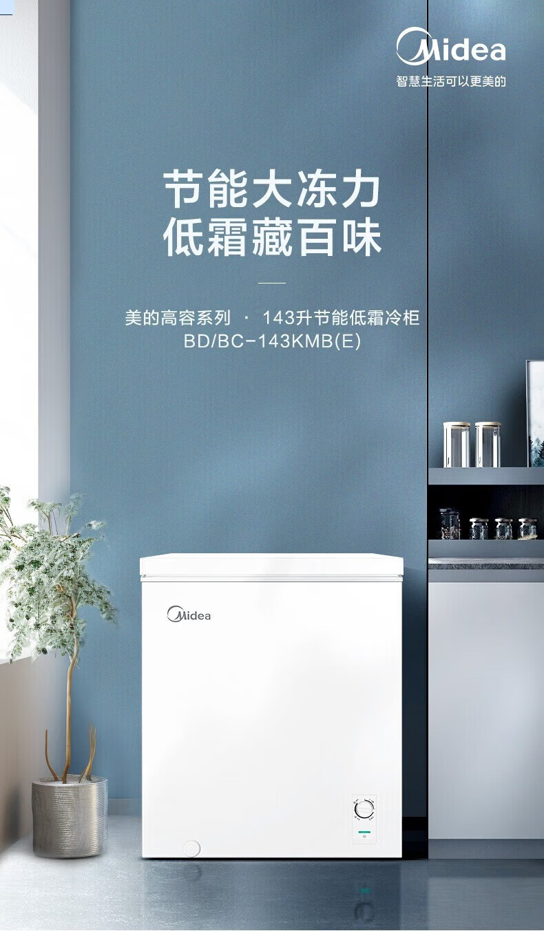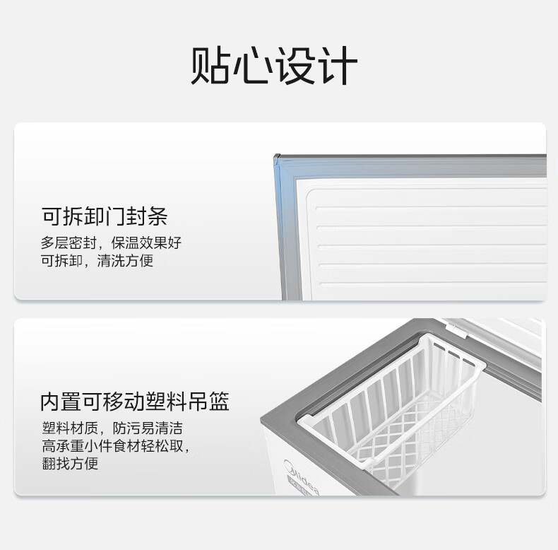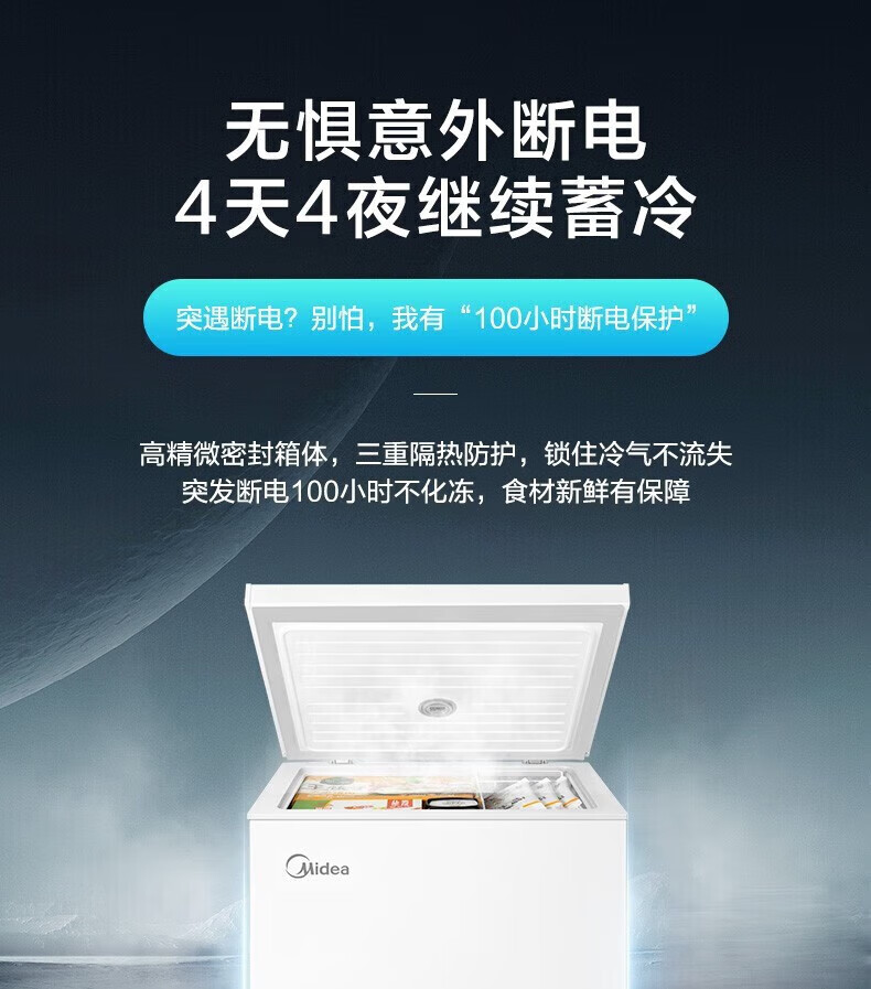 Midea freezer household commercial frost reduction sterilization low noise quick freezing freezer refrigerated freezer small freezer energy saving horizontal refrigerator high-end version 203L first-class energy efficiency 203KMB