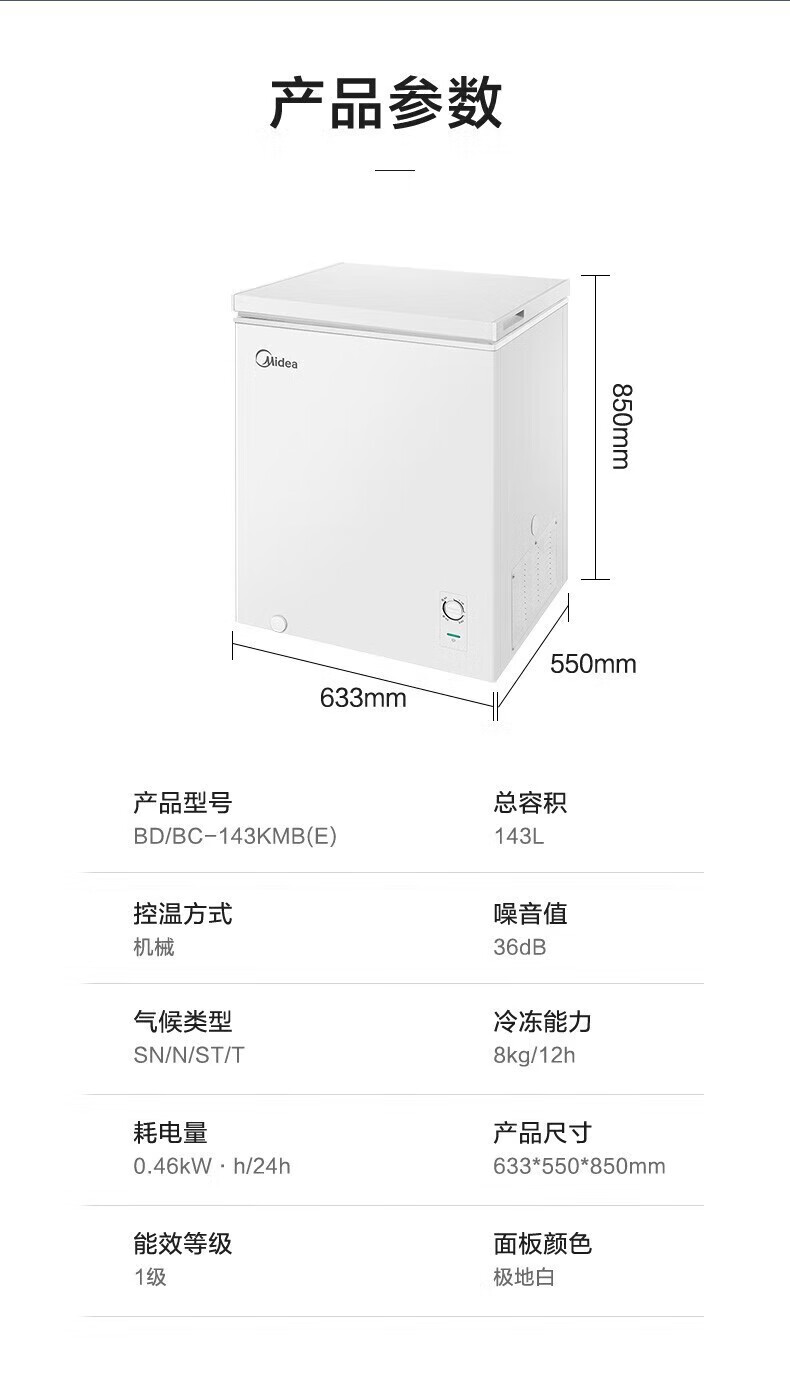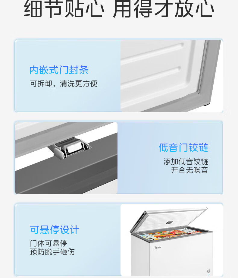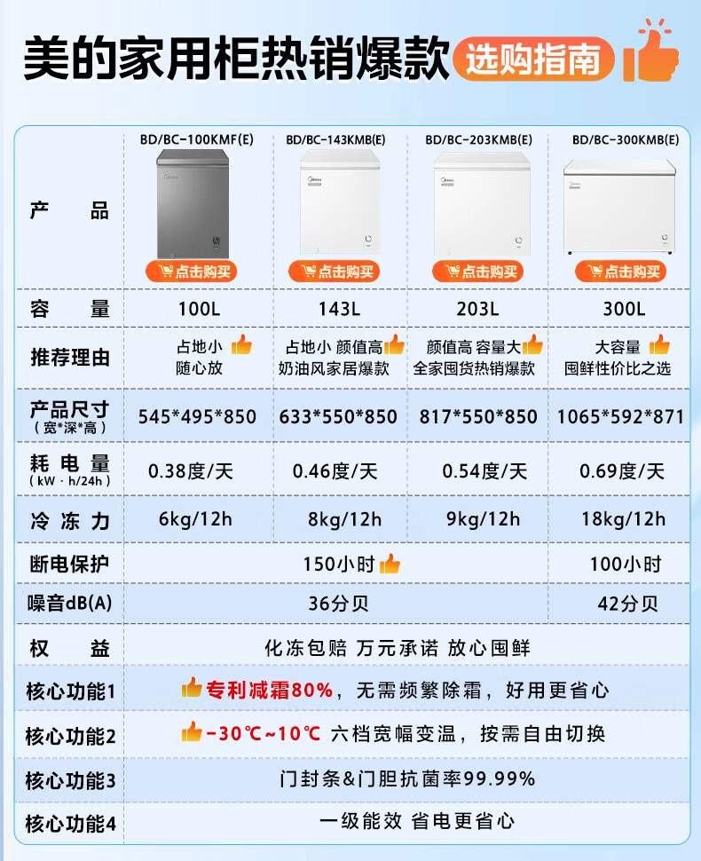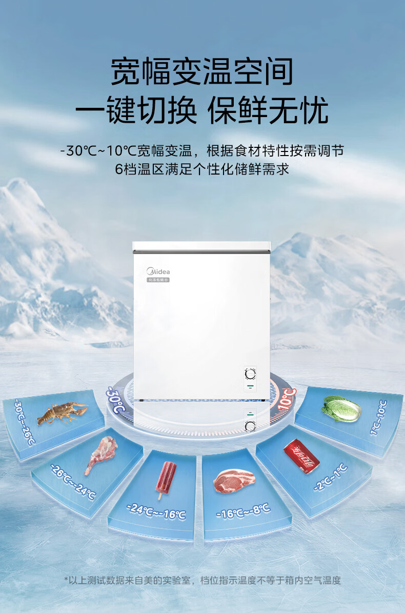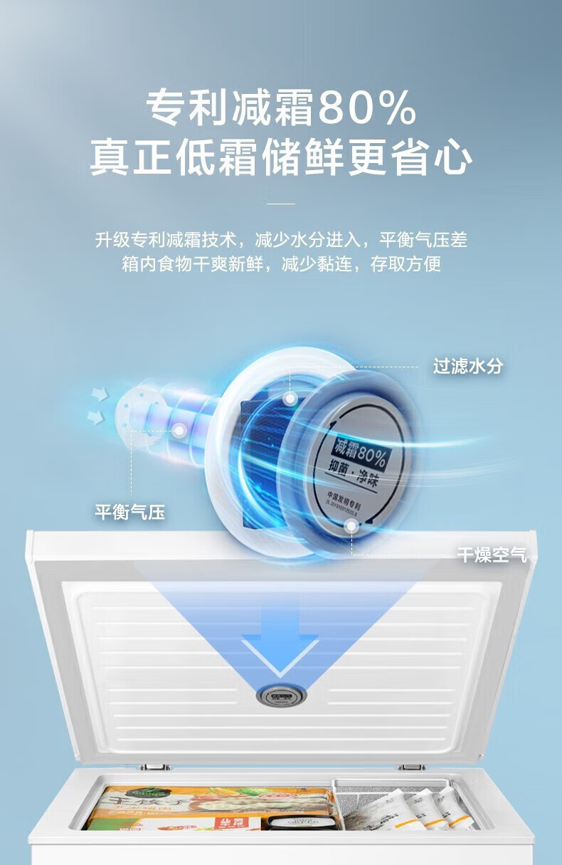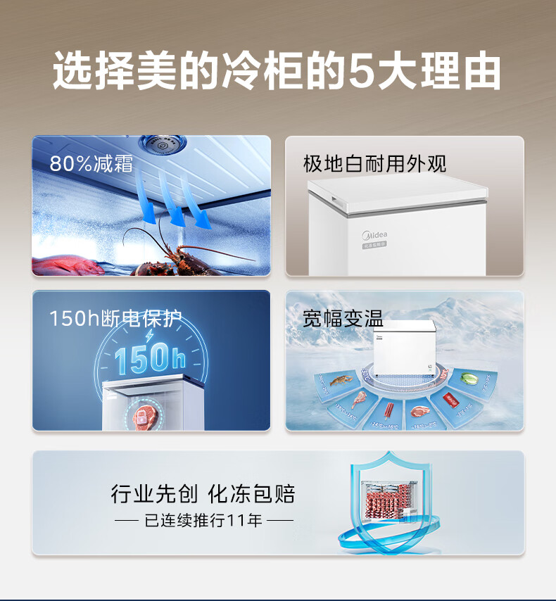 Midea freezer household commercial frost reduction sterilization low noise quick freezing freezer refrigerated freezer small freezer energy saving horizontal refrigerator high-end version 203L first-class energy efficiency 203KMB