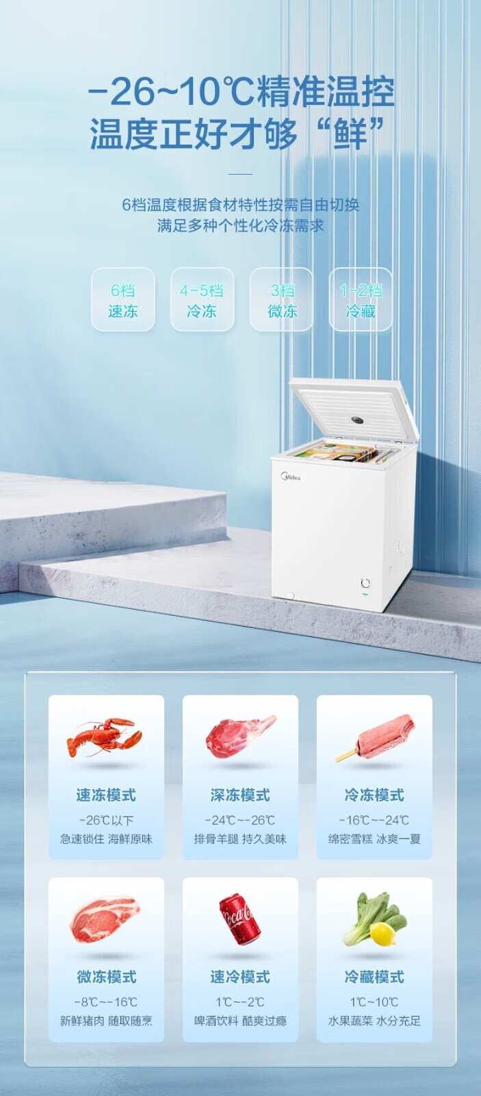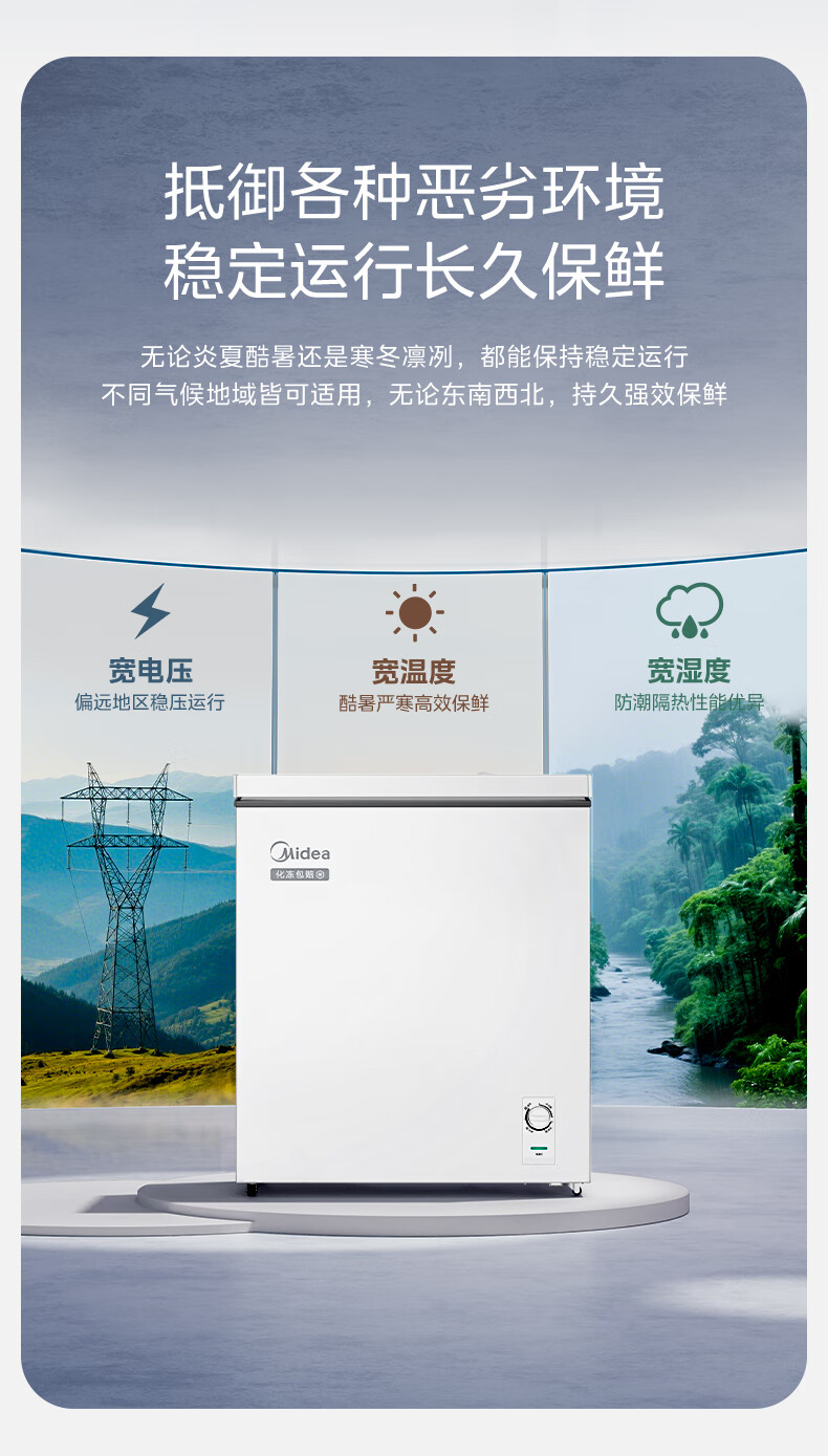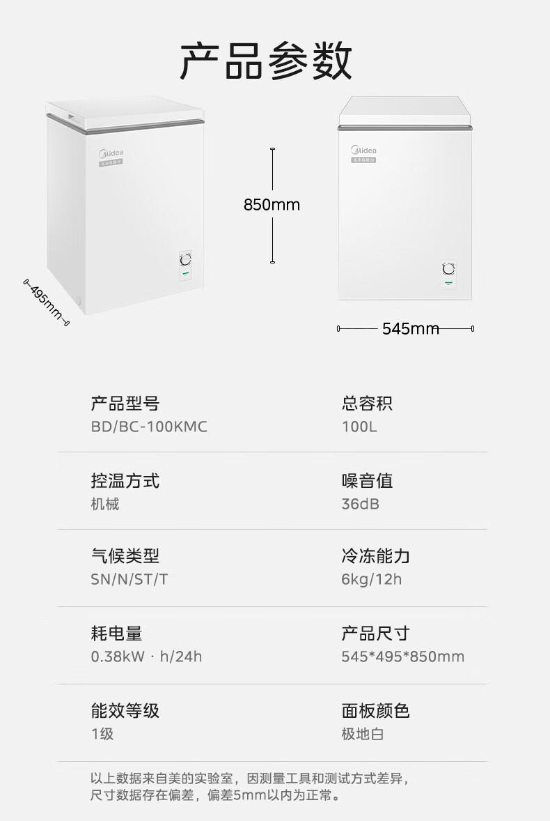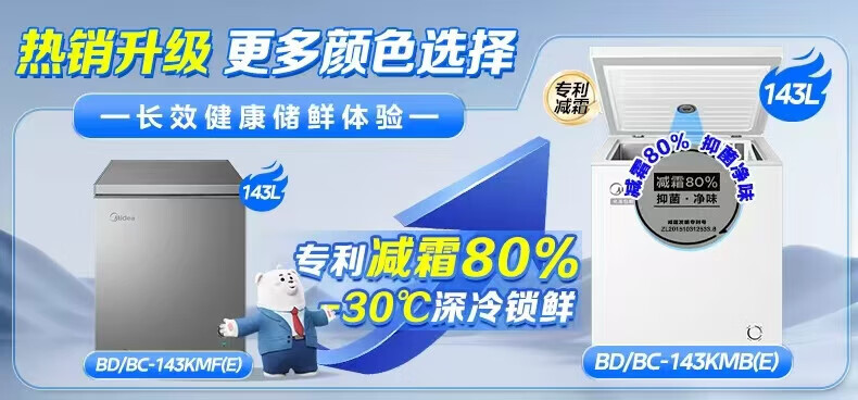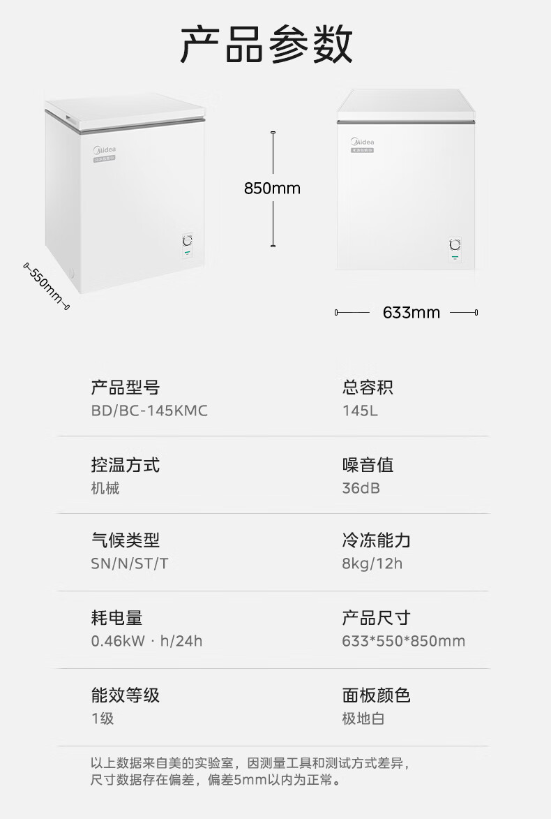 Midea freezer household commercial frost reduction sterilization low noise quick freezing freezer refrigerated freezer small freezer energy saving horizontal refrigerator high-end version 203L first-class energy efficiency 203KMB