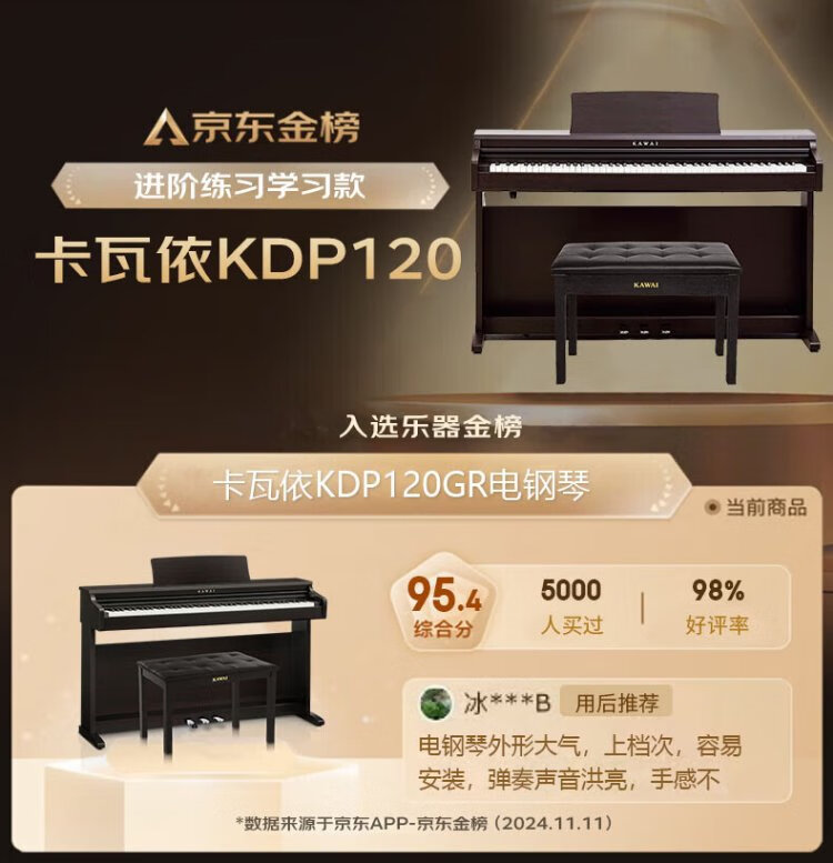 KAWAI KDP120 electric piano 88-key hammered key-by-key sound Kawai adult electronic digital piano keyboard instrument KDP120GR complete set + piano stool gift package