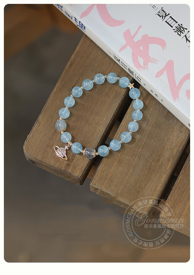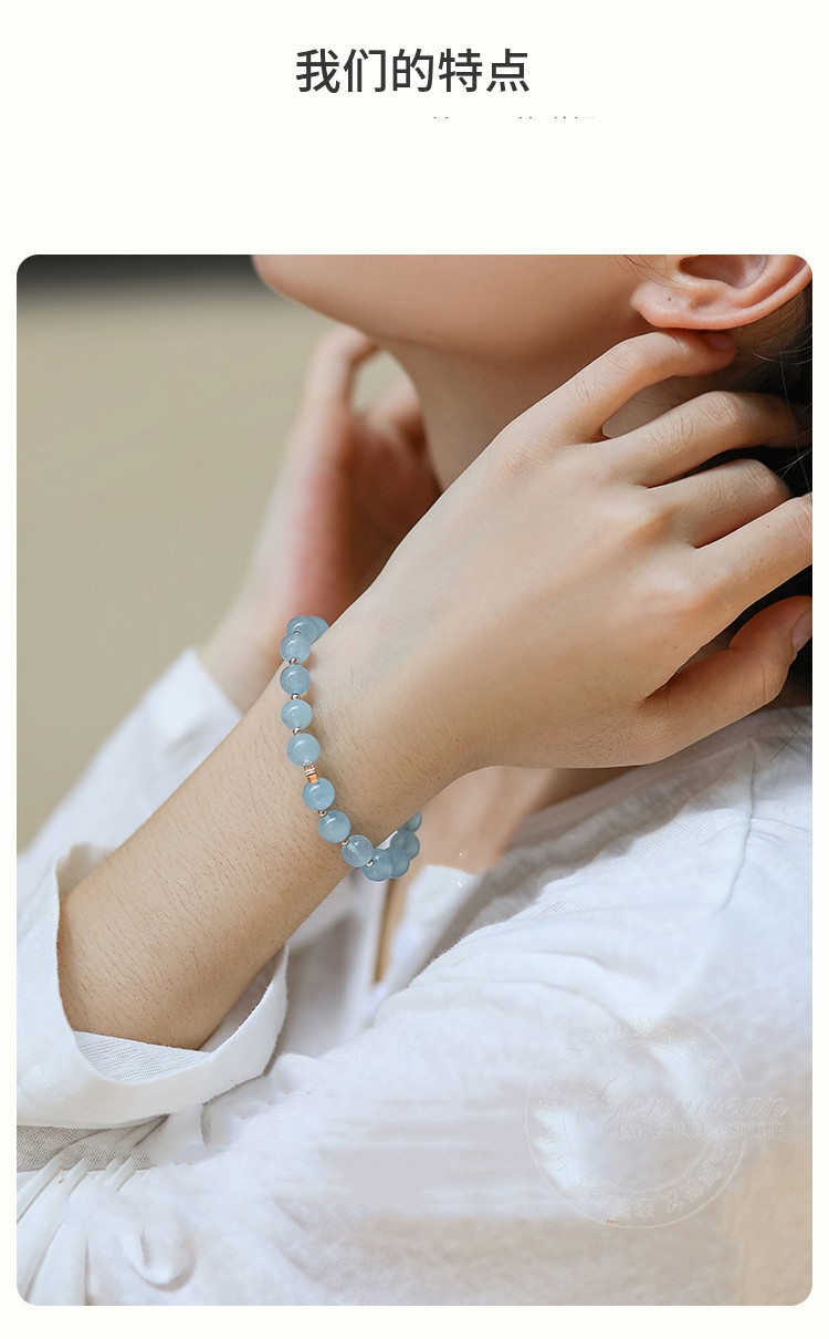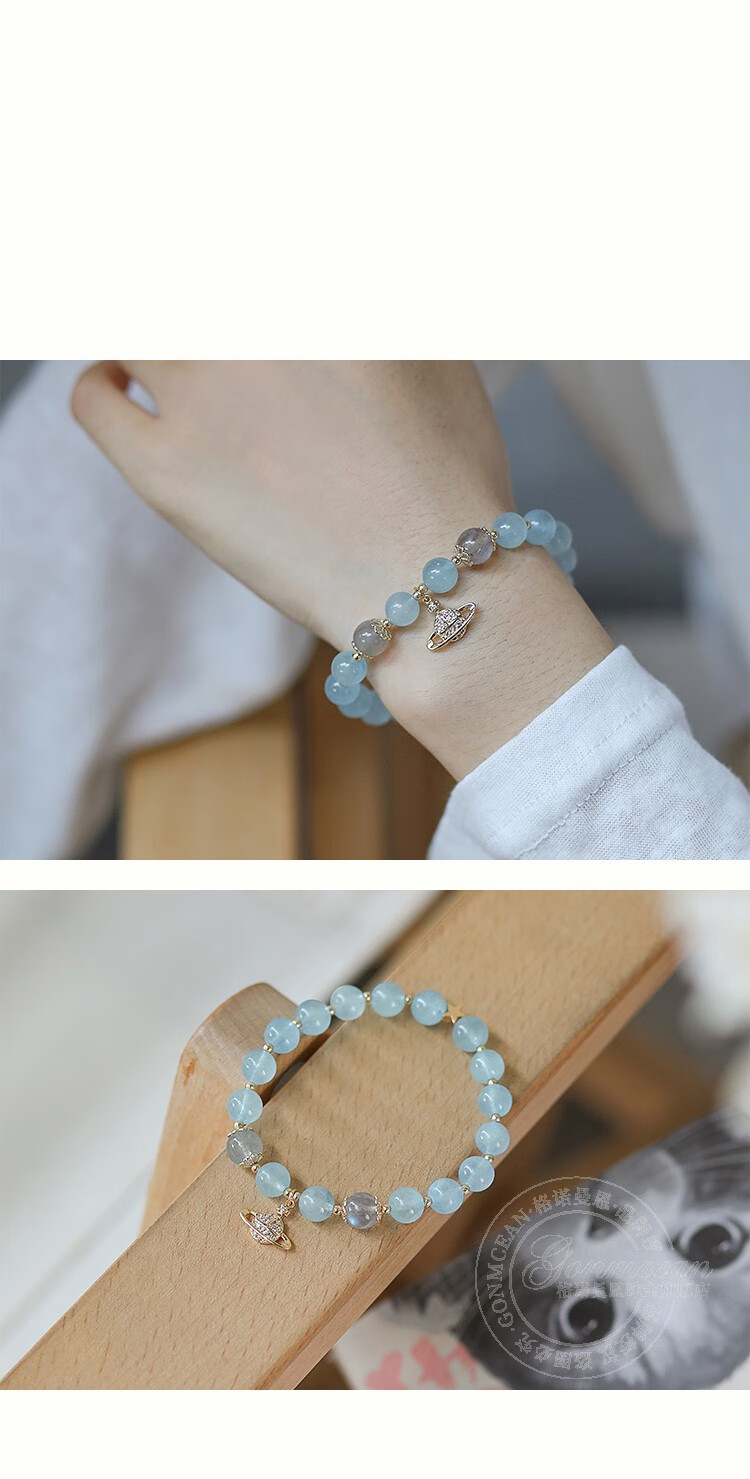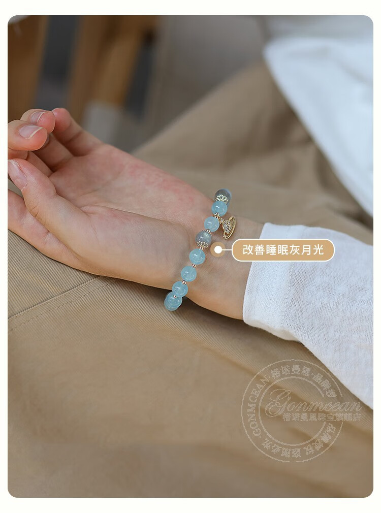 GONMCEAN Aquamarine Crystal Bracelet for Women Simple Gray Moonstone Blue Beads Girls Bracelet Gift