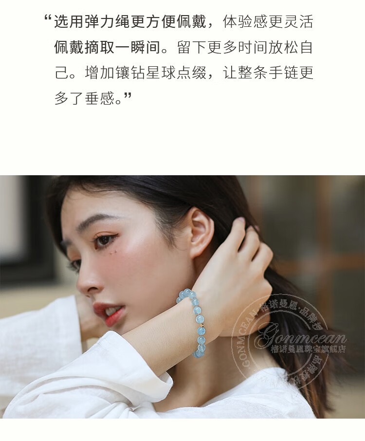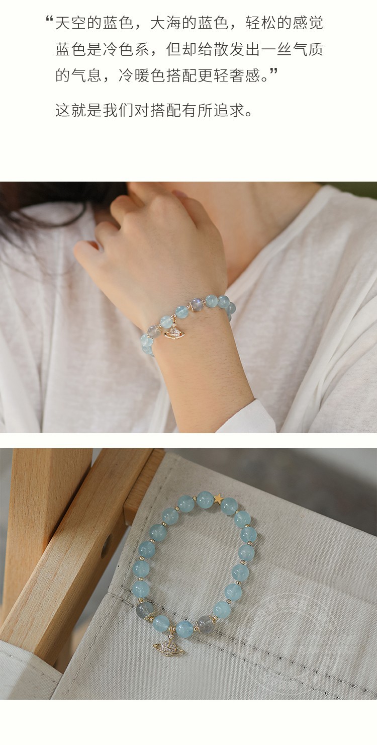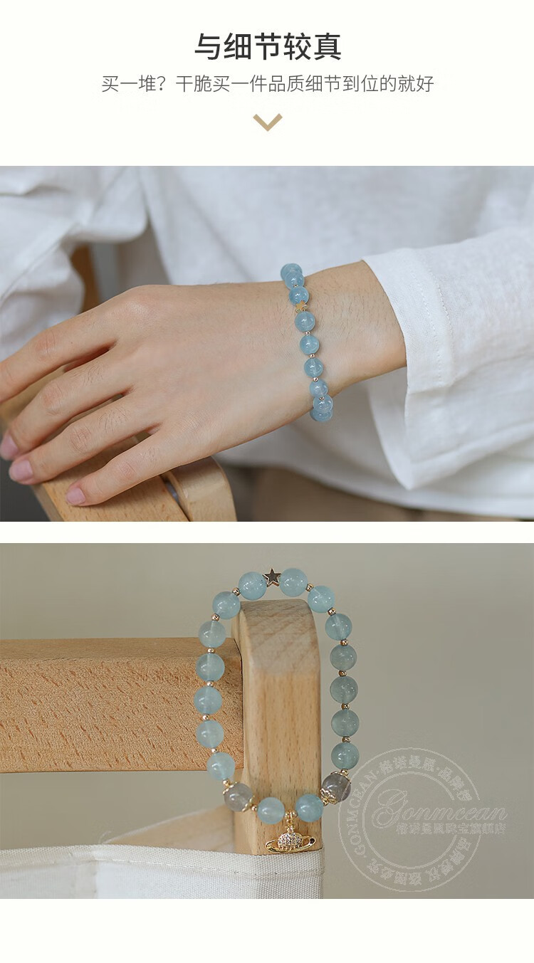 GONMCEAN Aquamarine Crystal Bracelet for Women Simple Gray Moonstone Blue Beads Girls Bracelet Gift