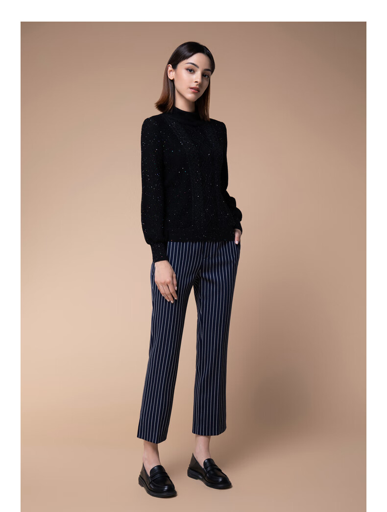 PORTS autumn and winter new women's nine-point pants vertical striped trousers SM9P008NFF081 Zhangqing striped XS (2)