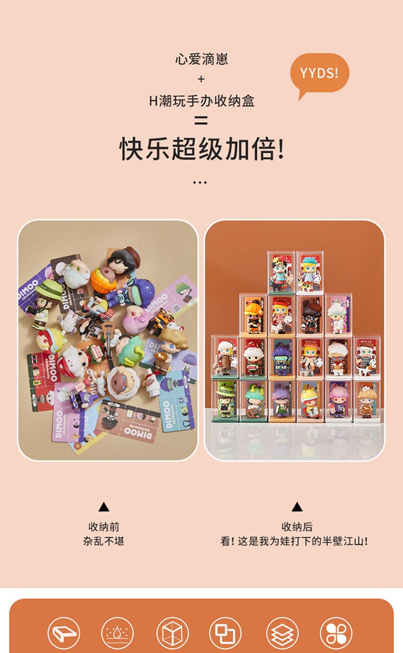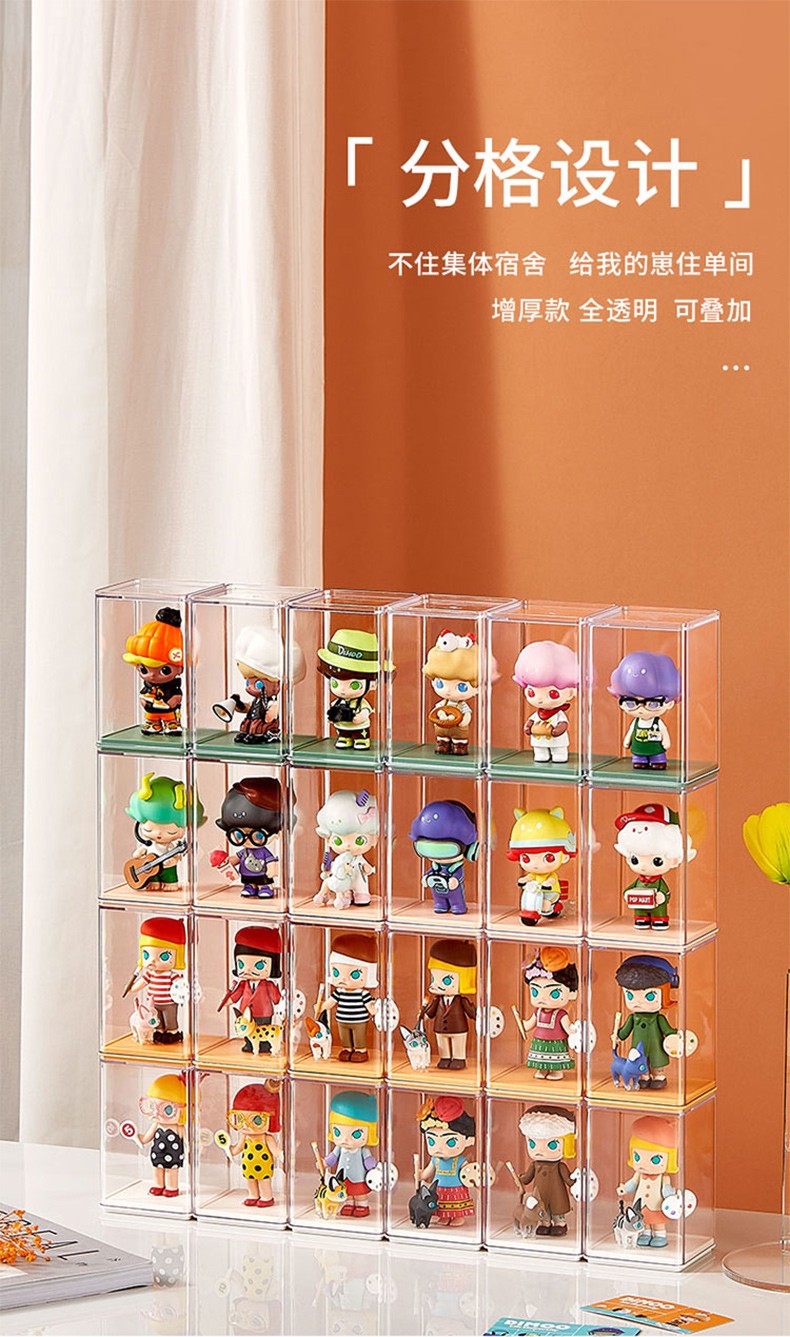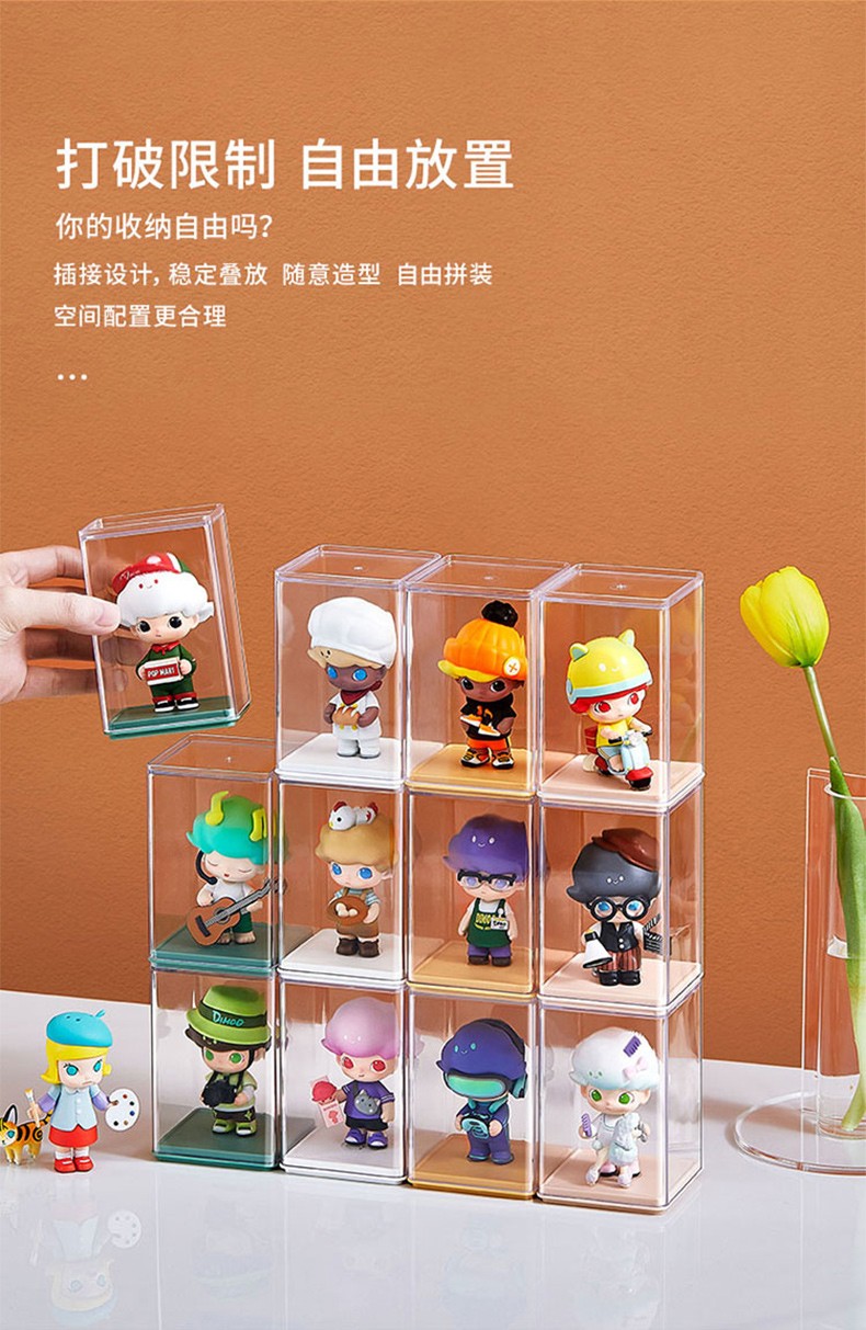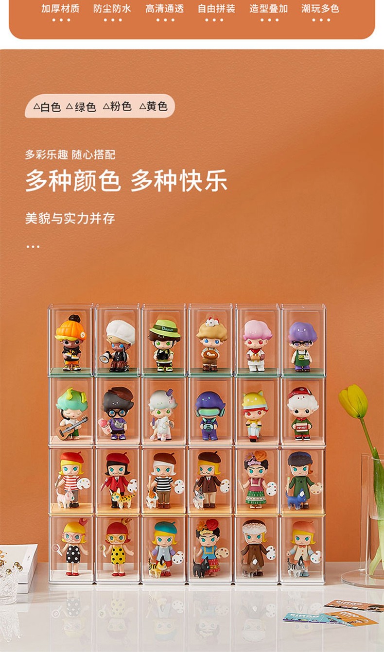 KAMAN Blind Box Storage Display Rack Transparent Dustproof Jar Bubble Mart Doll Doll Storage Box White 6 Pack Free of Glue