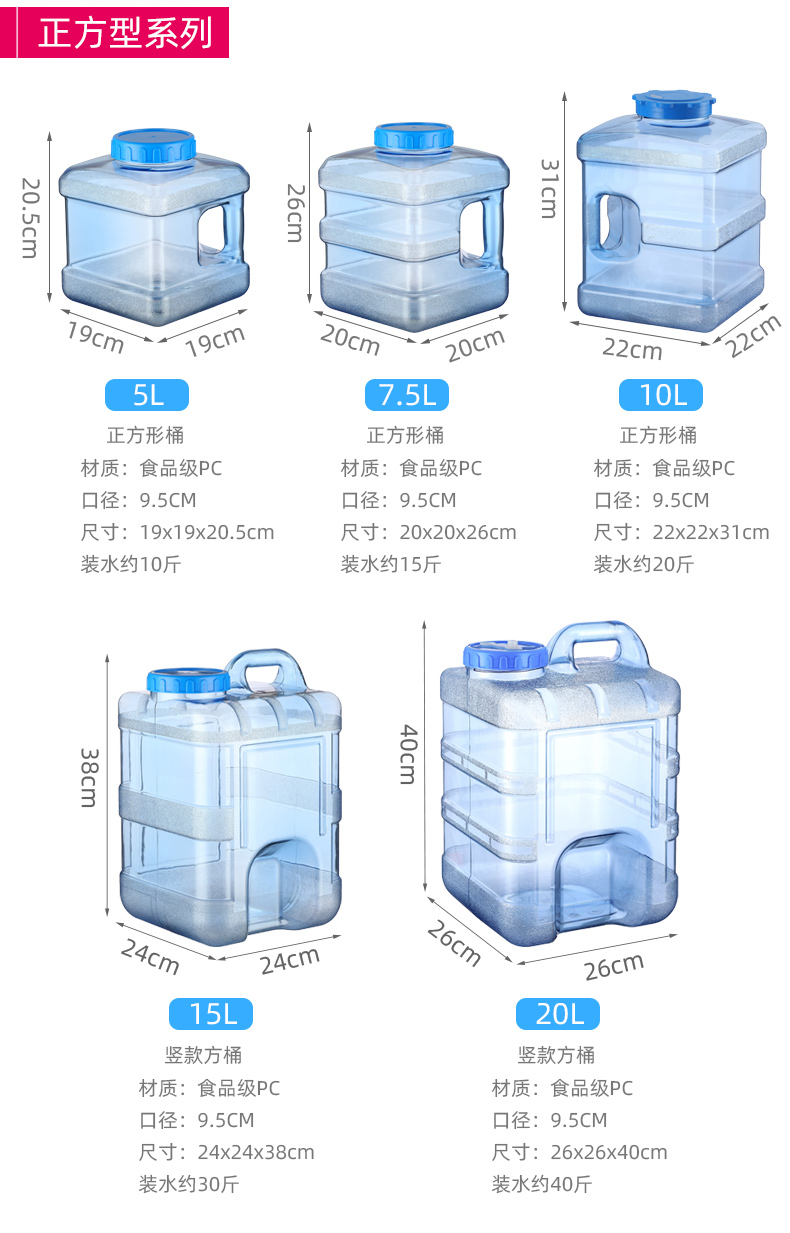 Lingyu outdoor pure water bucket food grade water storage bucket thickened water storage tank drinking storage water tea square bucket large empty bucket 15 liter vertical bucket + pipe brush