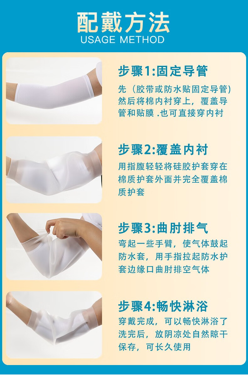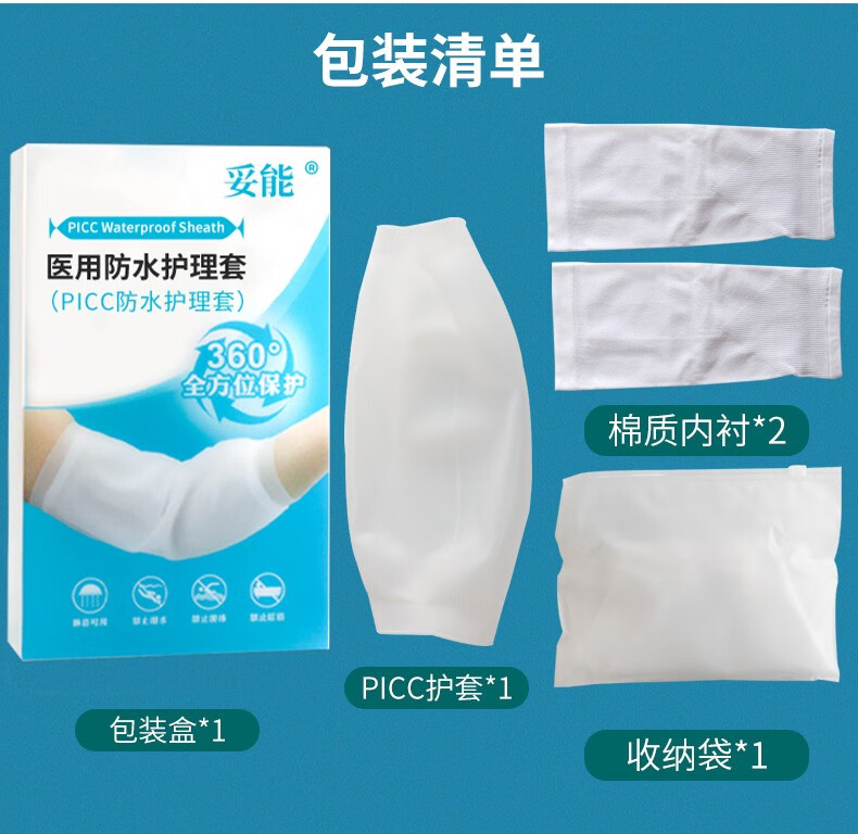 Picc catheter waterproof protective cover medical mesh nursing cover breathable arm wound peripheral central venous catheter chemotherapy silicone bath sleeve dressing change package care package maintenance package recommended mesh elastic protective cover adult * 2 sets of replacement
