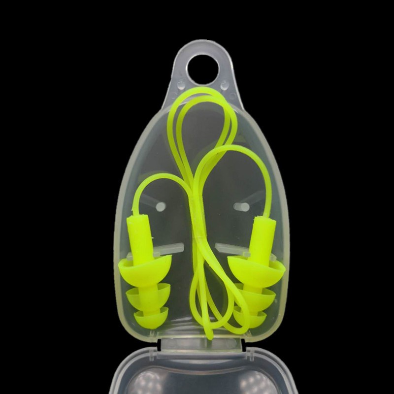 Jiaoliu adult and children's swimming earplugs, soft silicone, waterproof, anti-lost, comfortable box for bathing and diving with rope, orange