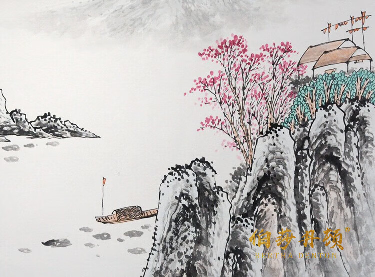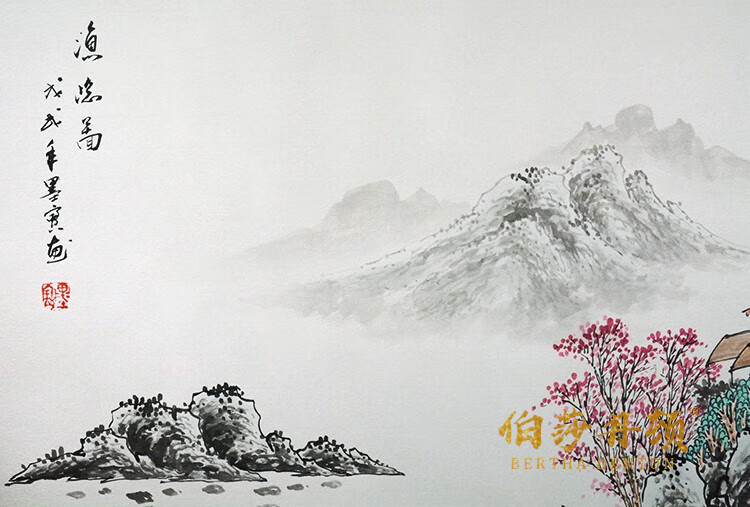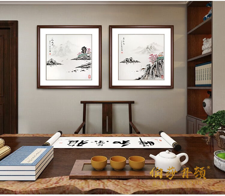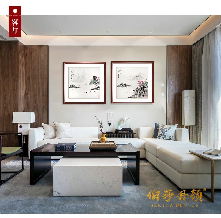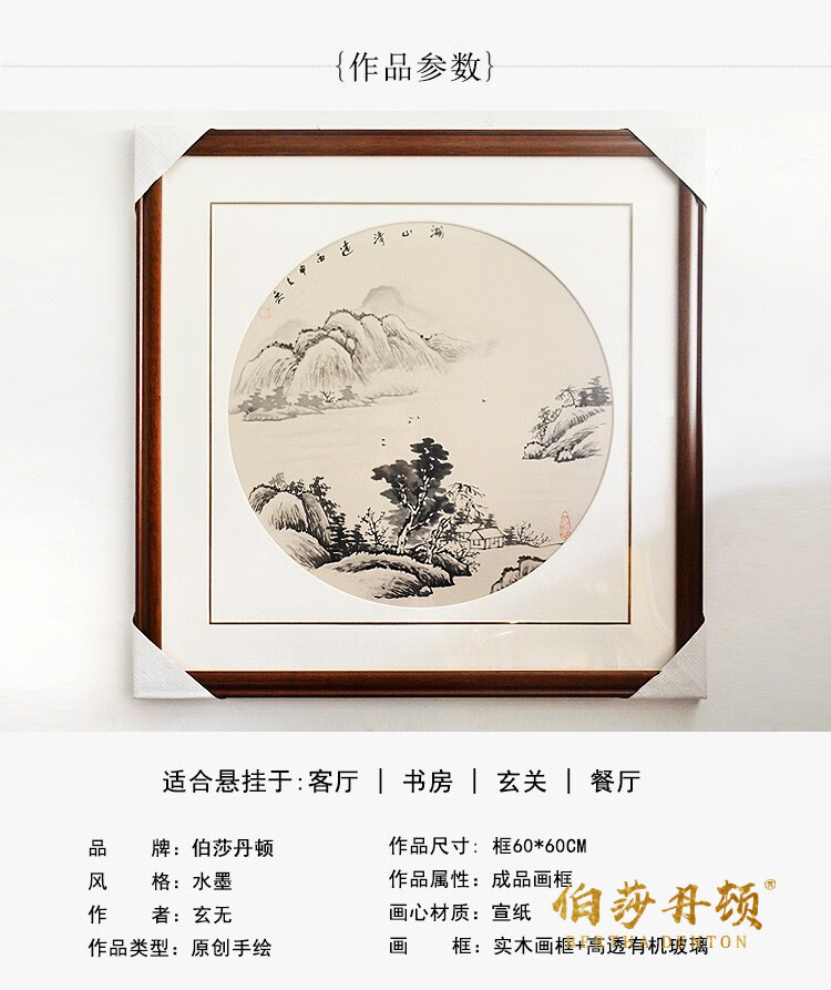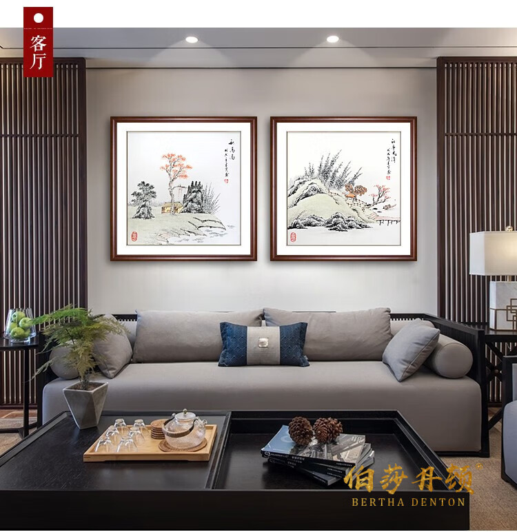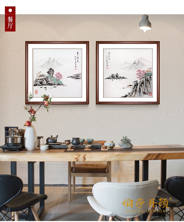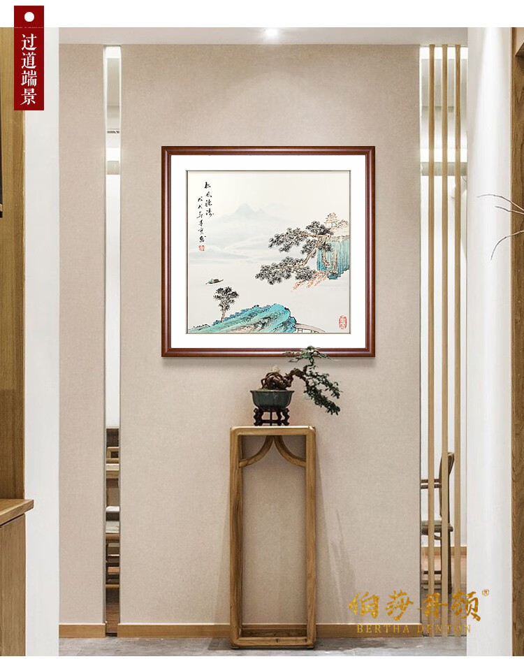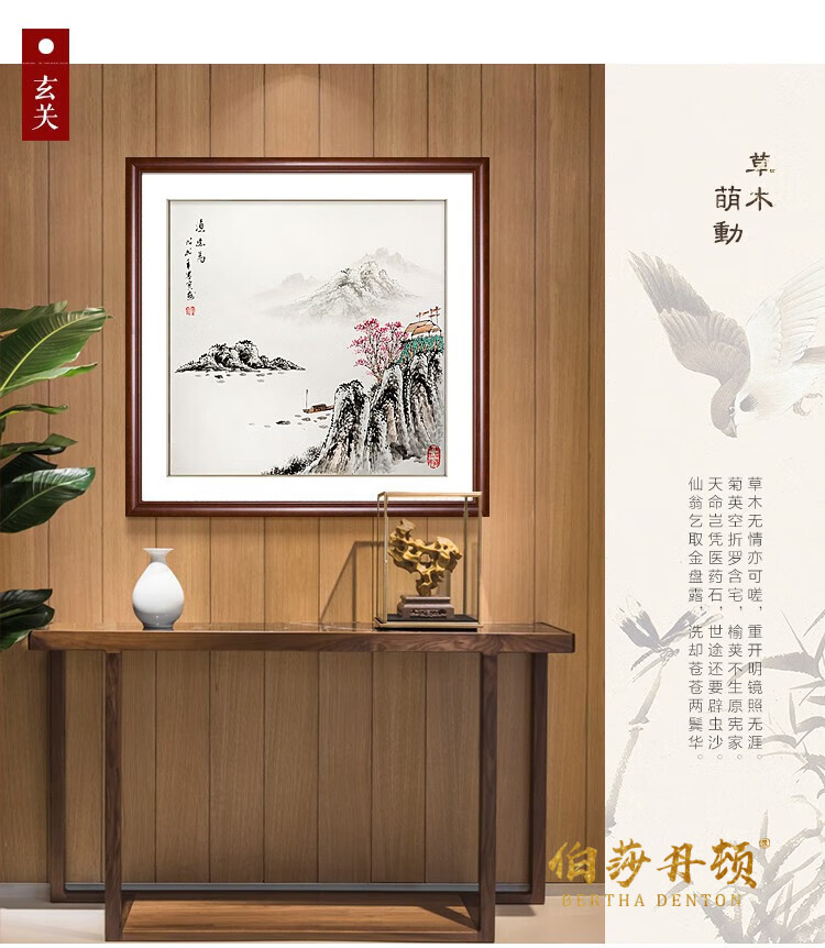 BERTHA DENTON Chinese style pure hand-painted landscape painting ink painting living room sofa entrance private room restaurant Dou Fang Chinese painting decorative hanging painting Autumn high picture has been framed 60*60 cm