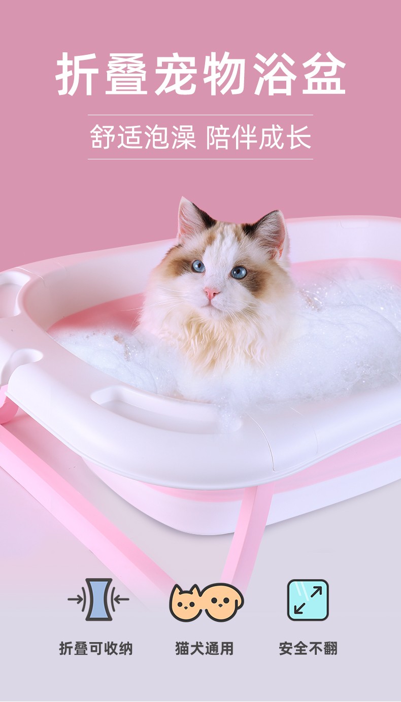 Pampering cat bathtub anti-run foldable bathtub dog golden retriever teddy bathtub artifact bathtub pet supplies silicone massage bathing gloves