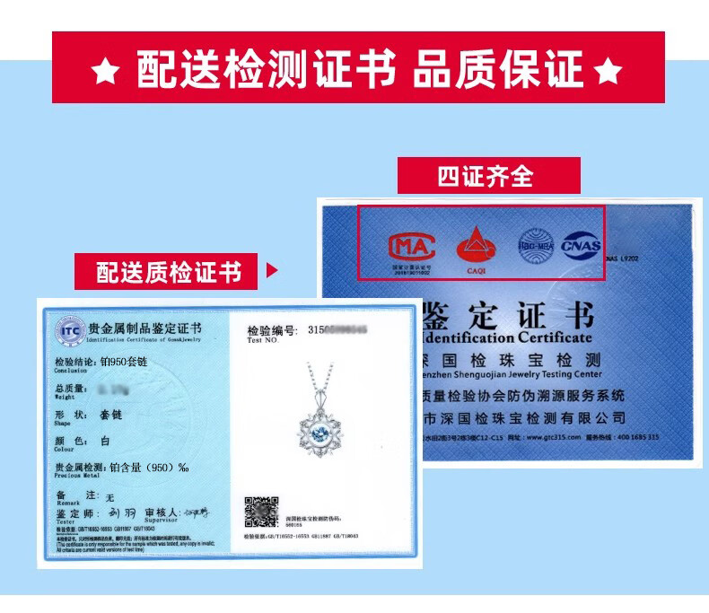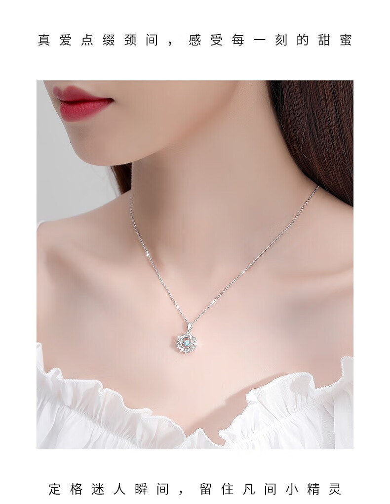 Qiao Baida platinum necklace for women platinum ladies birthday Chinese Valentine's Day gift for adults to give to girlfriend and wife local warehouse silver-plated-sky blue necklace