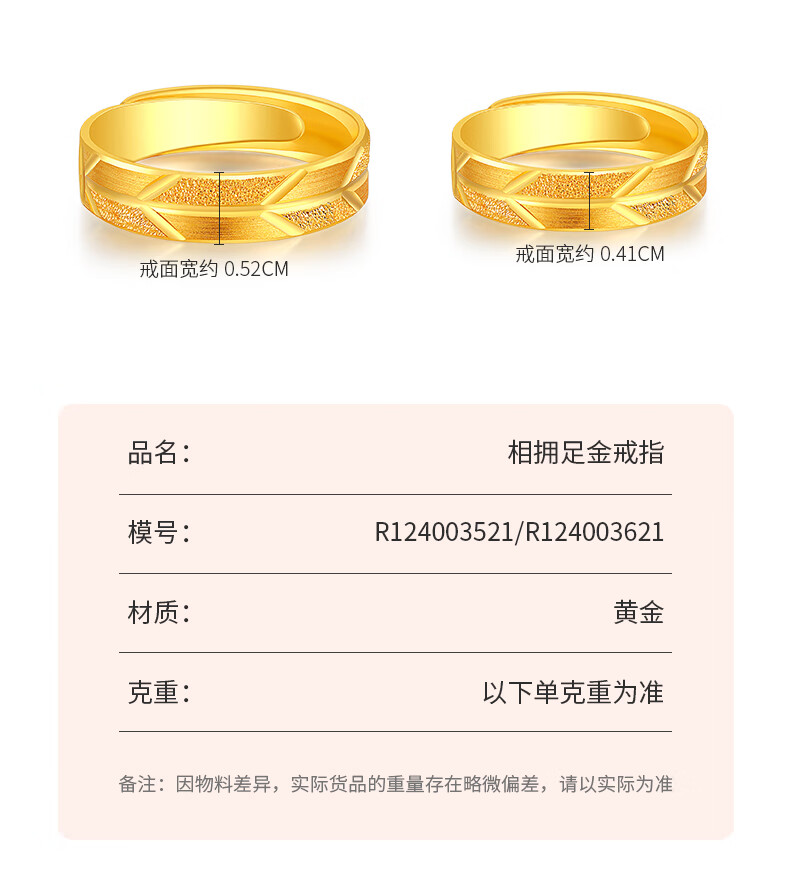 Gold Supreme (3DG Jewelery) Gold Ring Couple's Ring Embrace 999 Pure Gold Wedding Ring Wedding Men's and Women's Live Birthday Gift Price Women's Ring 4.17g-R124003621