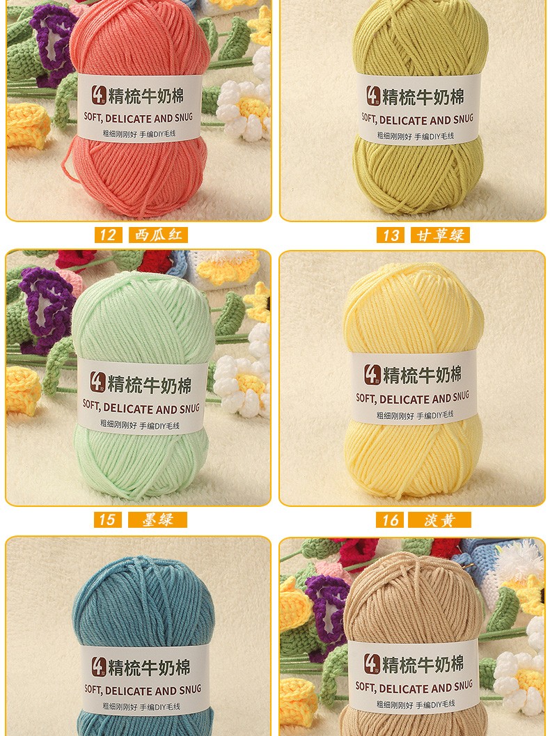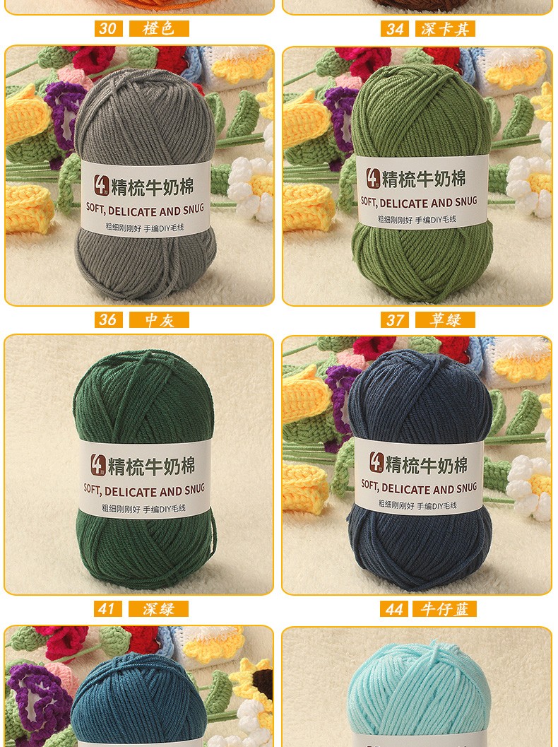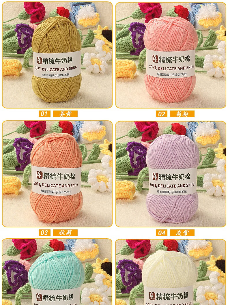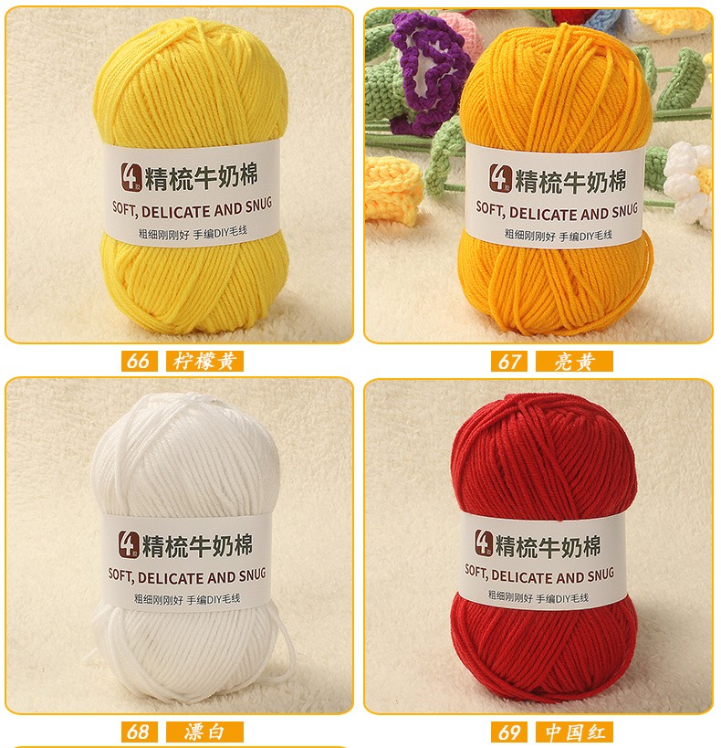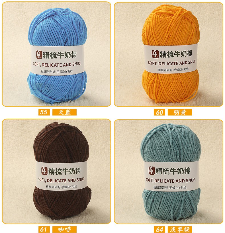 Clothes are embroidered 4-strand milk cotton combed cotton milk wool ball hand-knitted diy crochet scarf material package baby sweater bleached color 68