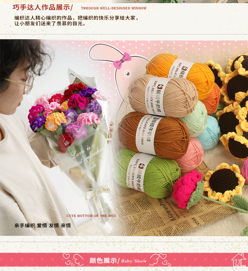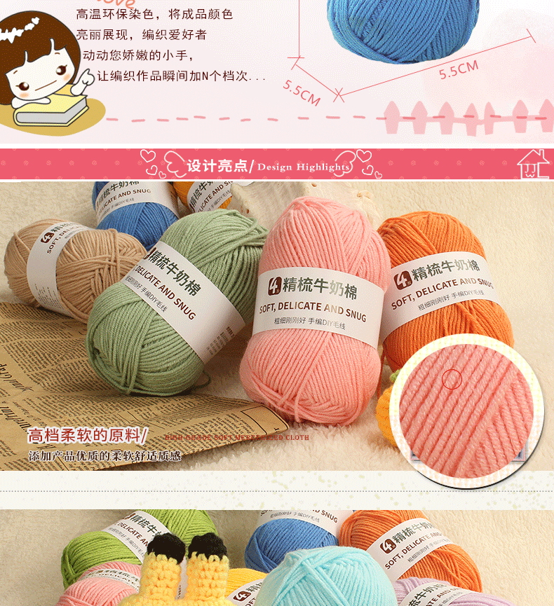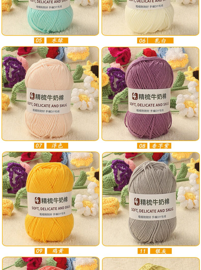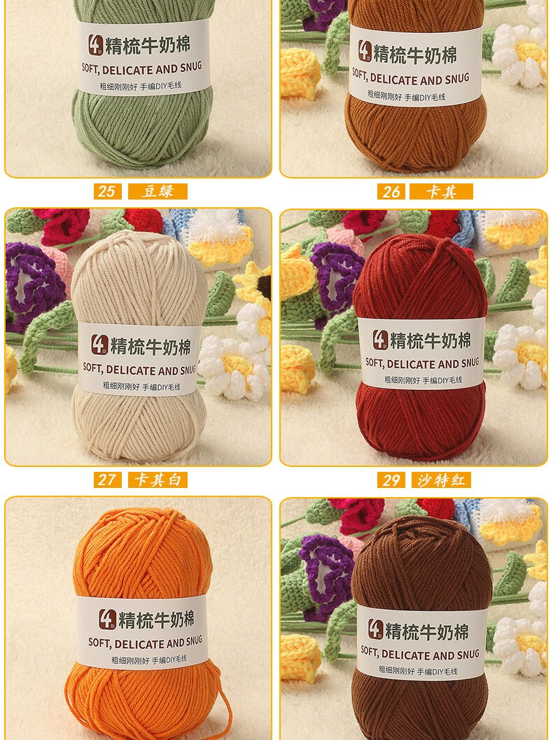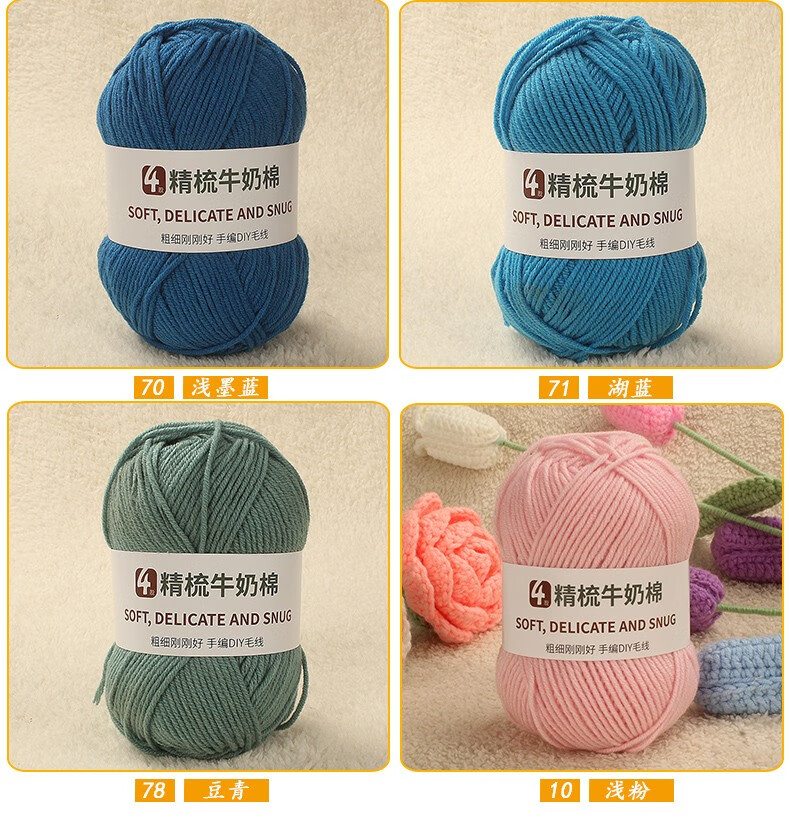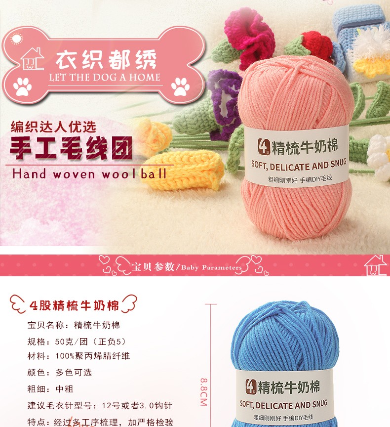 Clothes are embroidered 4-strand milk cotton combed cotton milk wool ball hand-knitted diy crochet scarf material package baby sweater bleached color 68