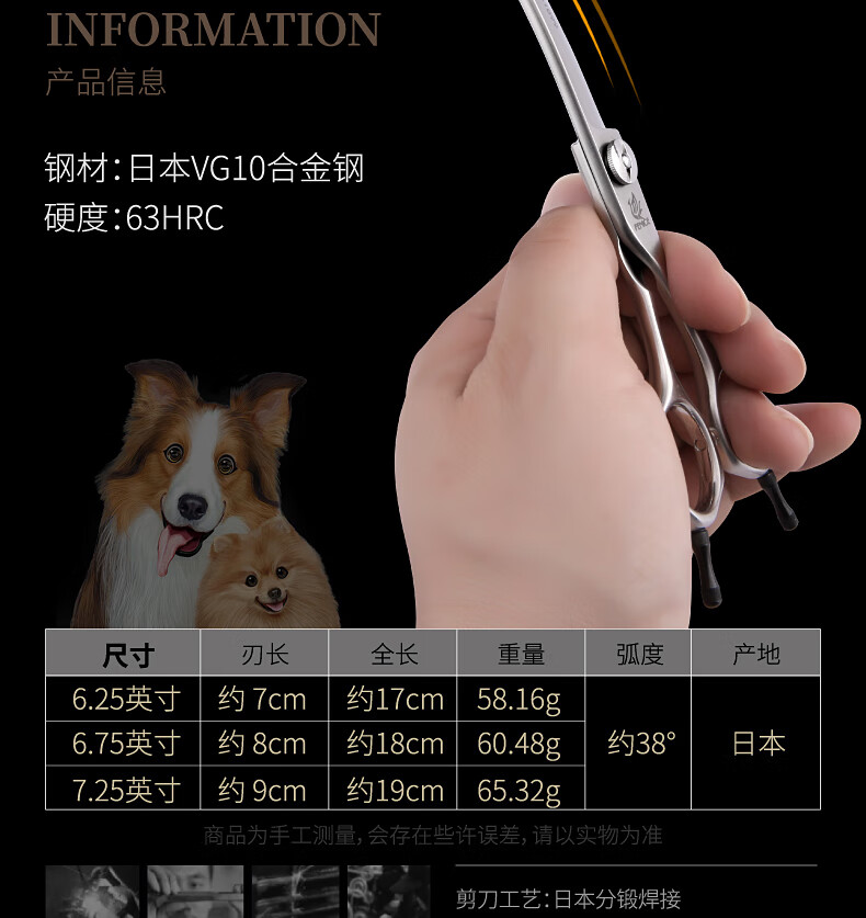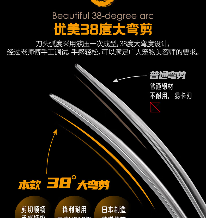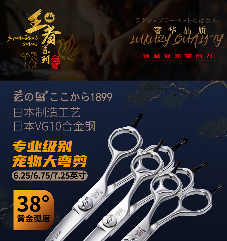 Xuanniao King pet scissors large curved scissors VG10 steel pet groomer professional curved scissors dog hair trimming 38 degrees curved 7.25 inches