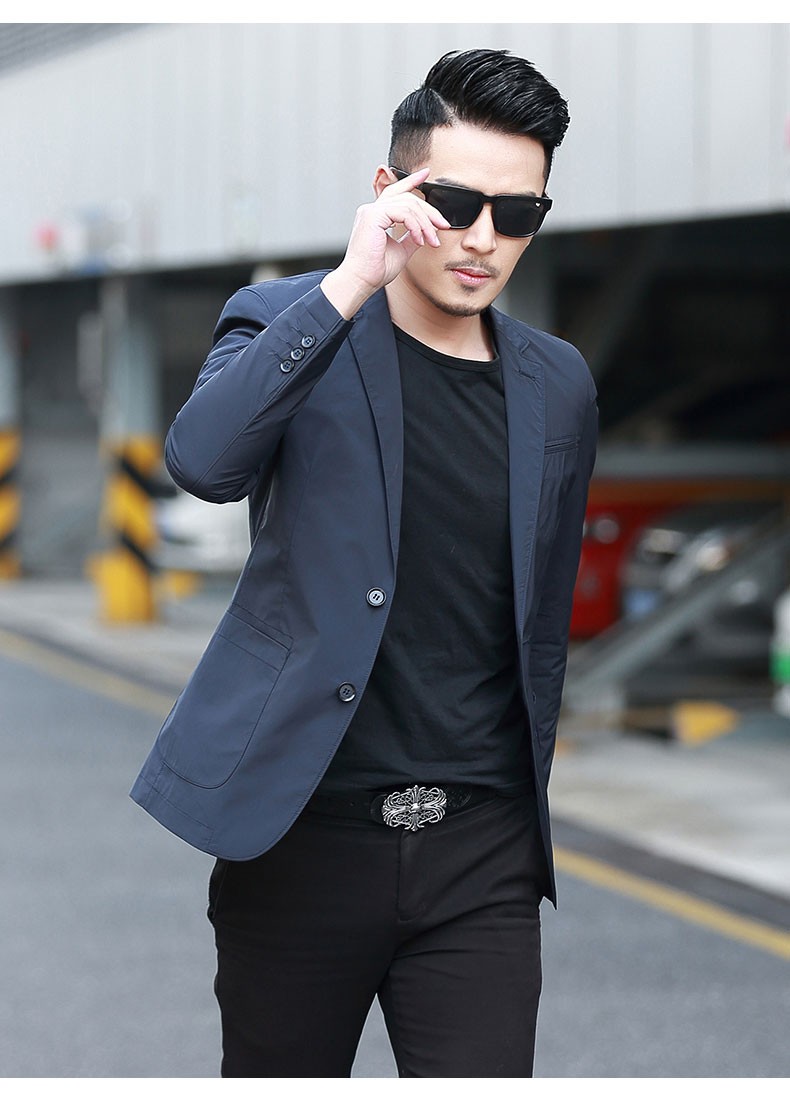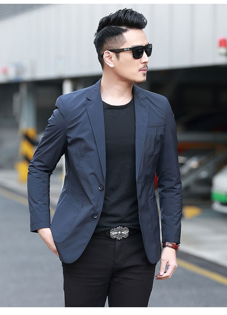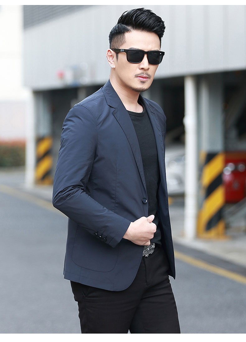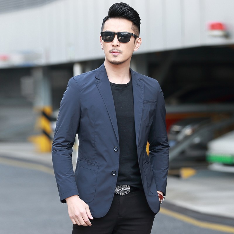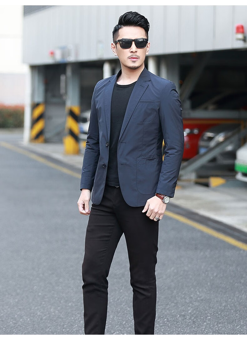 Dubbing Spring and Autumn Thin Casual Suit Men's Korean Style Slim Single Suit Top Light Luxury Business Youth Small Suit Jacket Fashion 8606 Blue L (175)