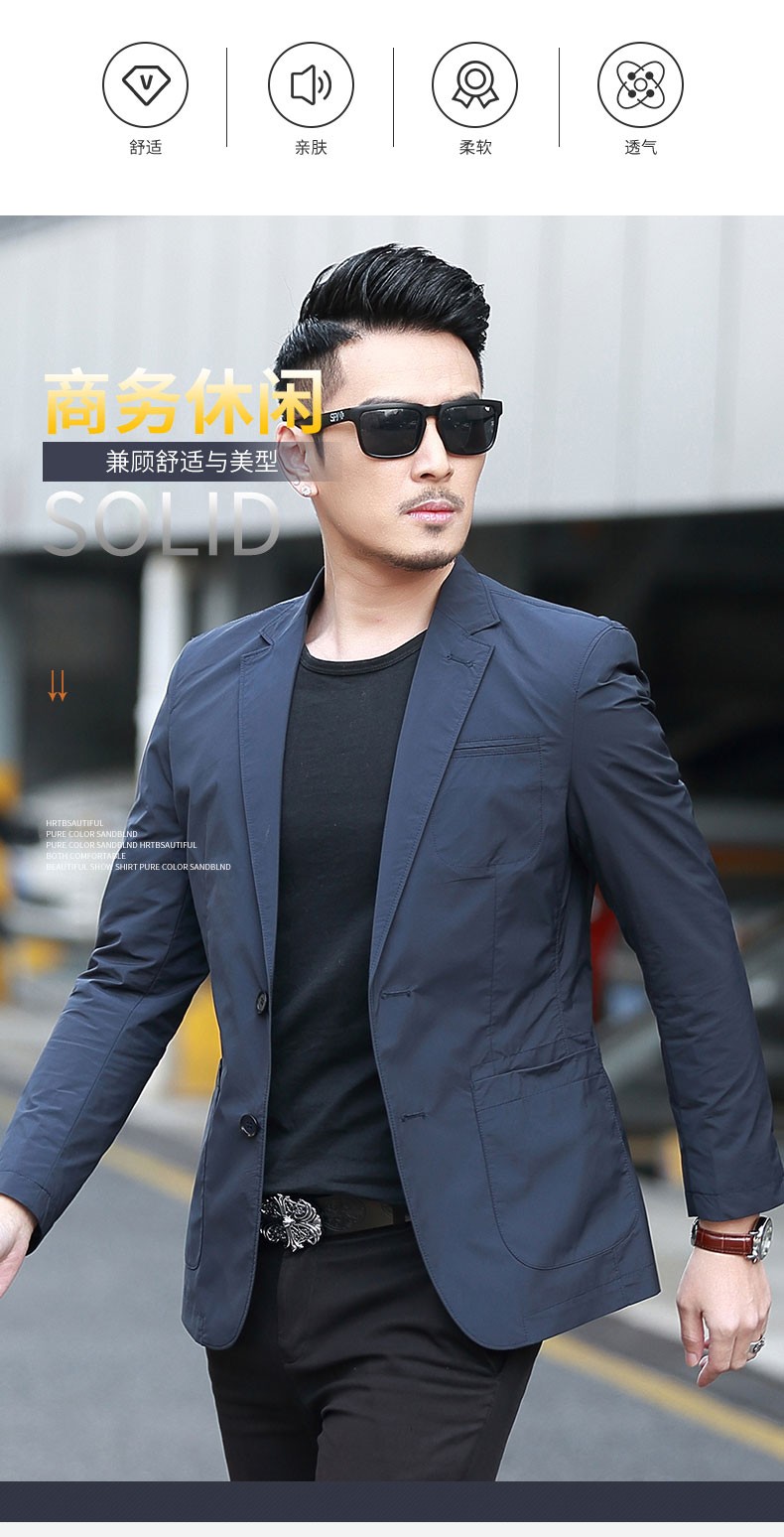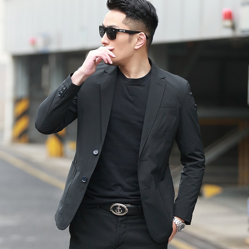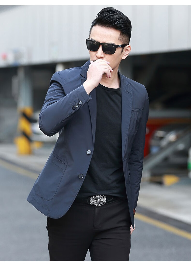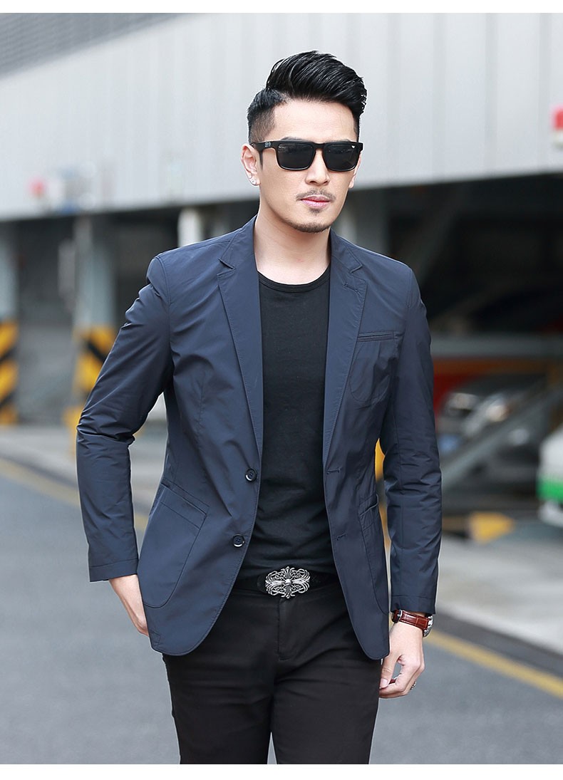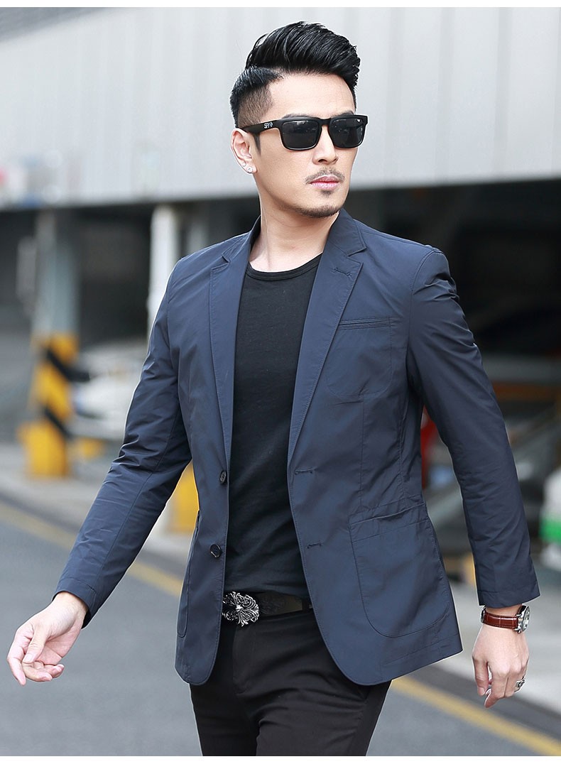 Dubbing Spring and Autumn Thin Casual Suit Men's Korean Style Slim Single Suit Top Light Luxury Business Youth Small Suit Jacket Fashion 8606 Blue L (175)
