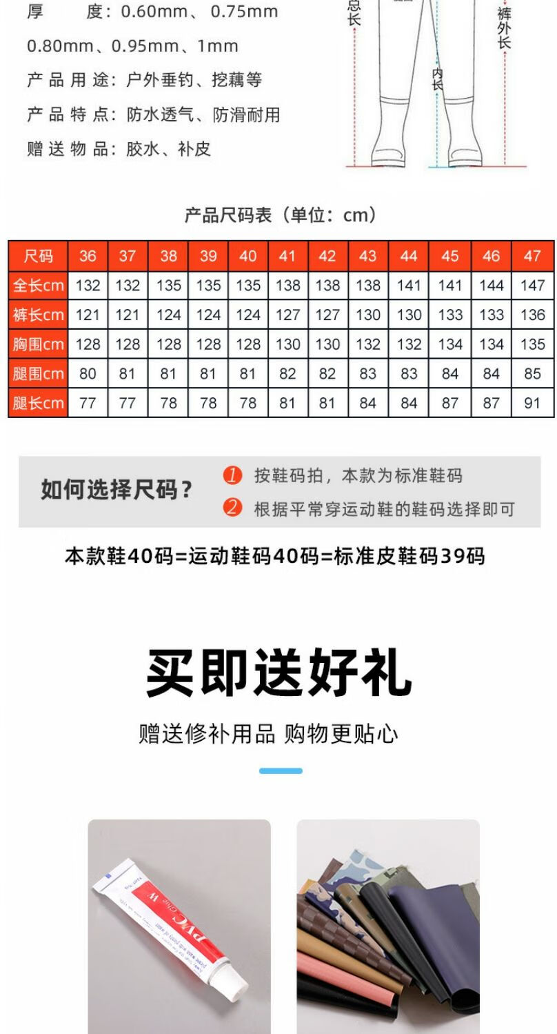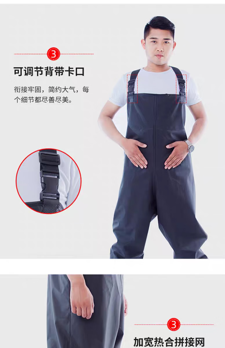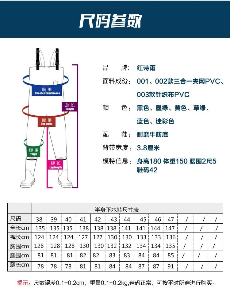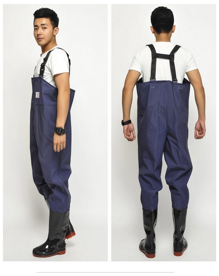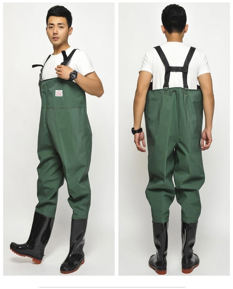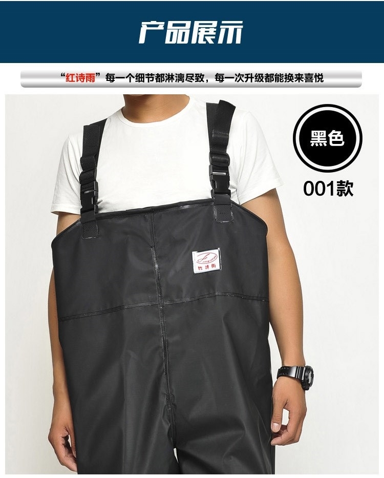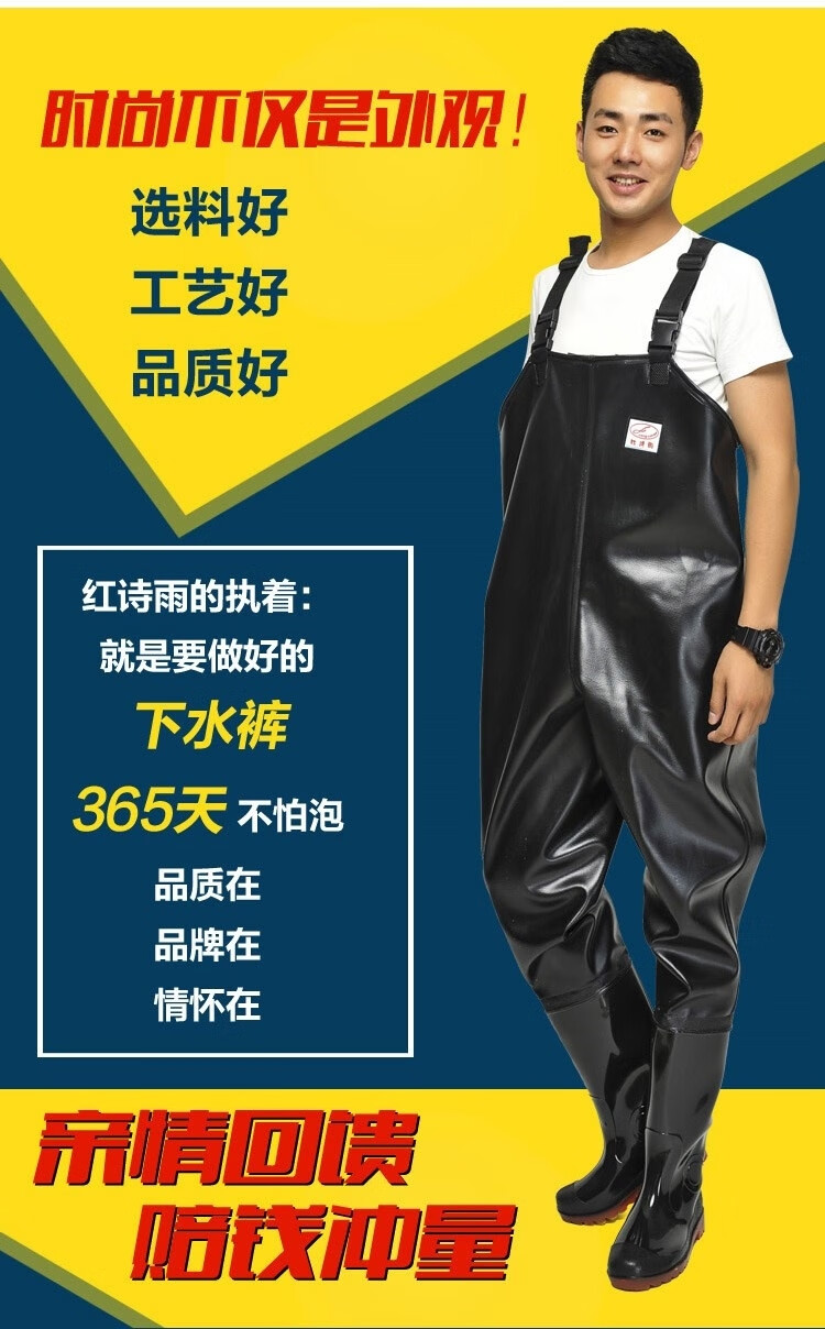 Hongshiyu thickened half-body waders for catching fishing one-piece full-body waterproof clothes men's leather water-forked pants wear-resistant reservoir fishing clothes thickened black leather pattern half-body 110 silk 39