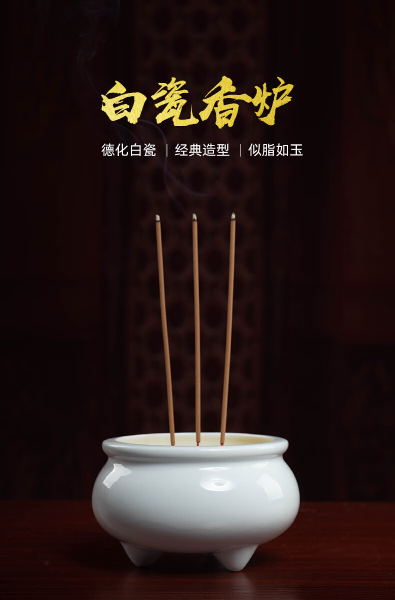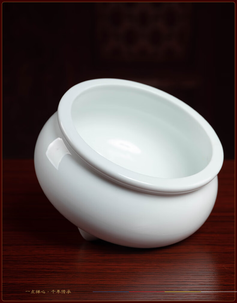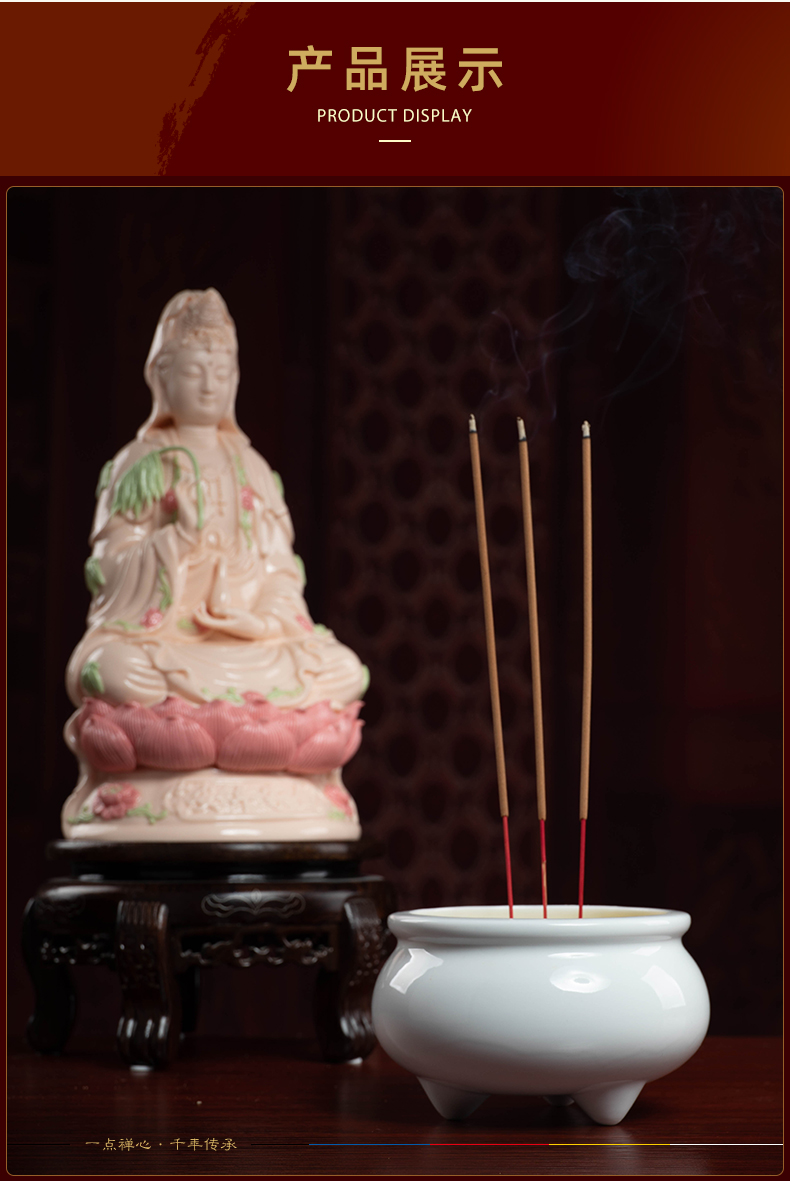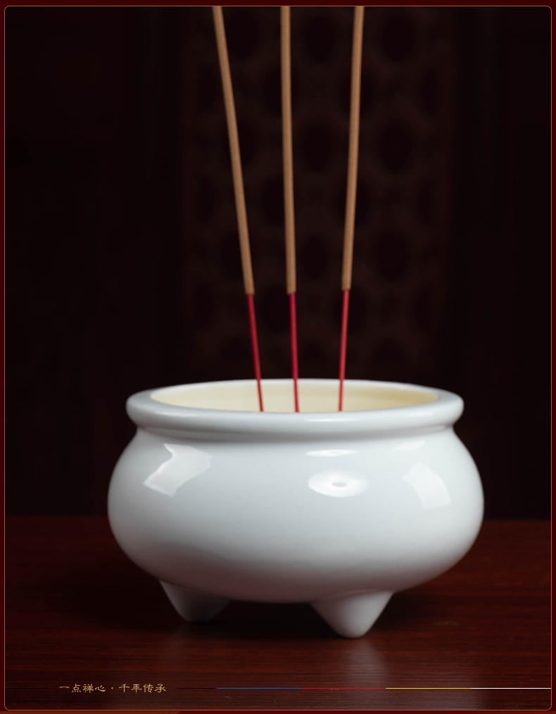 Ceramic incense burner for household Buddha, front line incense stick, incense for Buddha, incense burner, Buddhist temple, worship supplies, D18-05C three-legged incense burner, white porcelain, large size