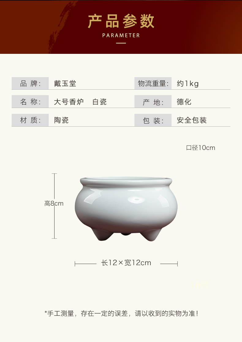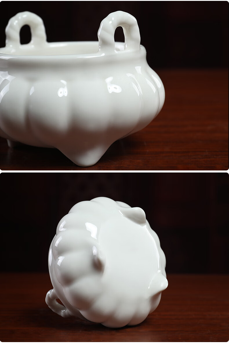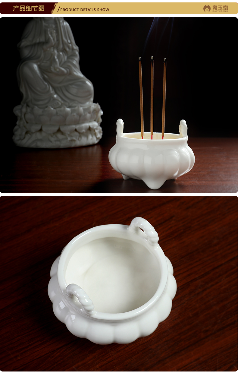 Ceramic incense burner for household Buddha, front line incense stick, incense for Buddha, incense burner, Buddhist temple, worship supplies, D18-05C three-legged incense burner, white porcelain, large size