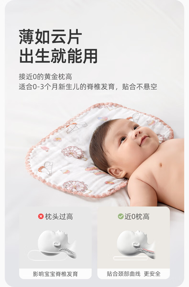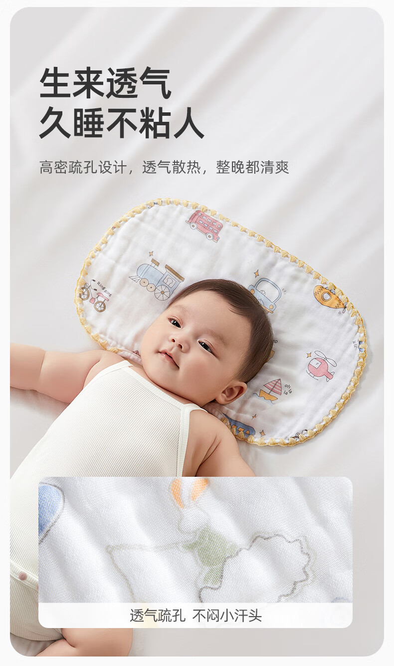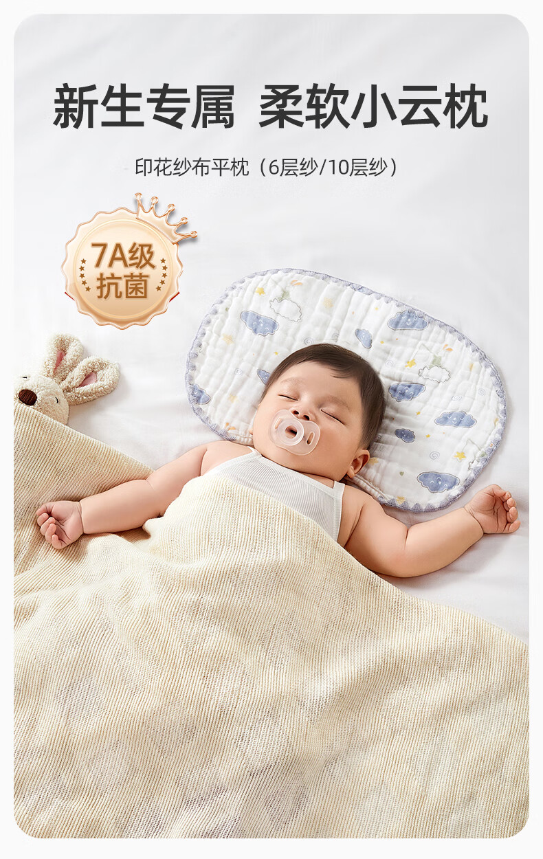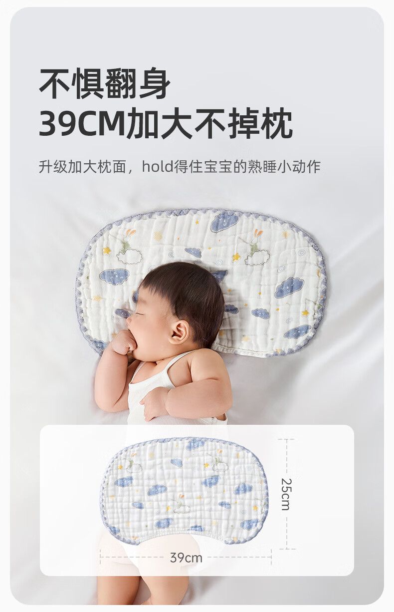 October Crystal Newborn Pillow Cover, Baby Cloud Piece Pillow, Gauze Flat Pillow, Anti-vomiting, Sweat-absorbent, Breathable Cotton Newborn, 7A Grade Antibacterial 39*25cm, Yunyou Dreamland, 6 layers of cotton yarn