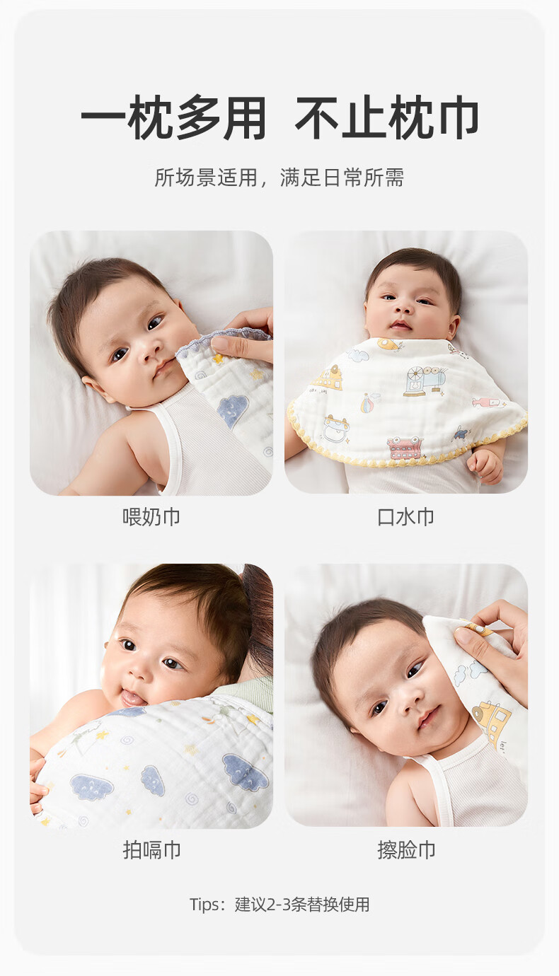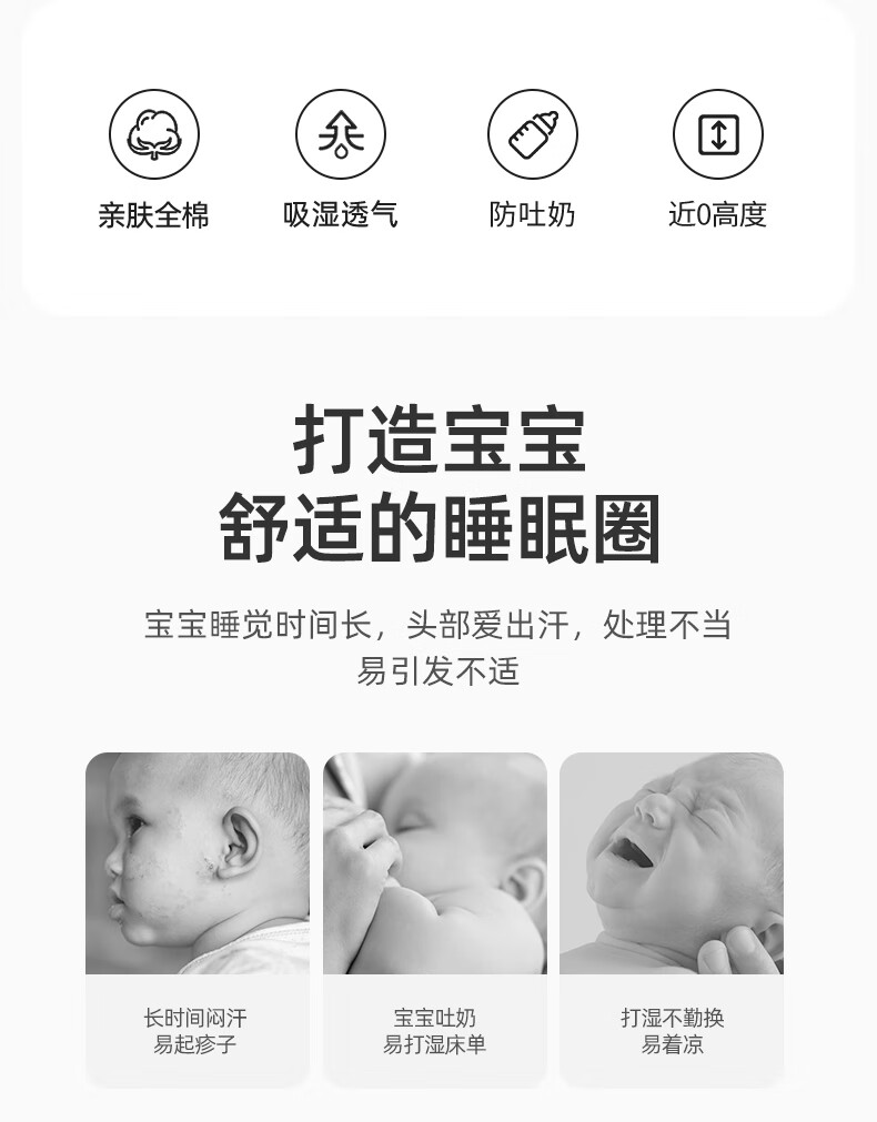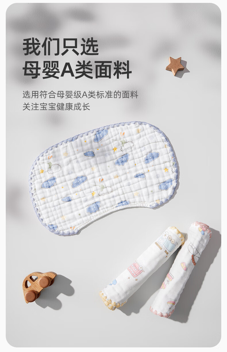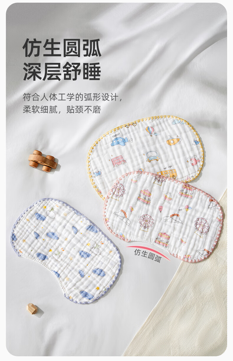 October Crystal Newborn Pillow Cover, Baby Cloud Piece Pillow, Gauze Flat Pillow, Anti-vomiting, Sweat-absorbent, Breathable Cotton Newborn, 7A Grade Antibacterial 39*25cm, Yunyou Dreamland, 6 layers of cotton yarn