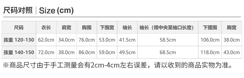 Size (cm) 42 44 46 48 50