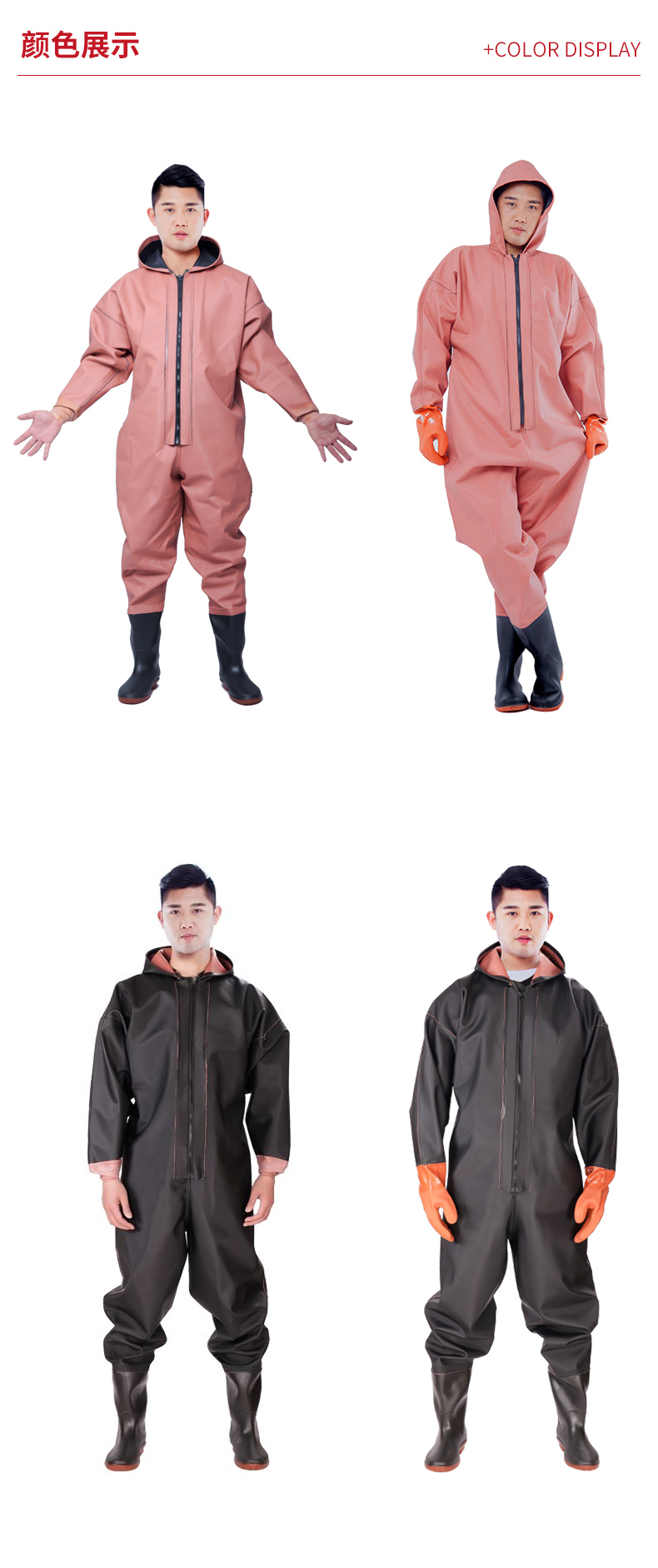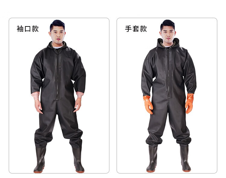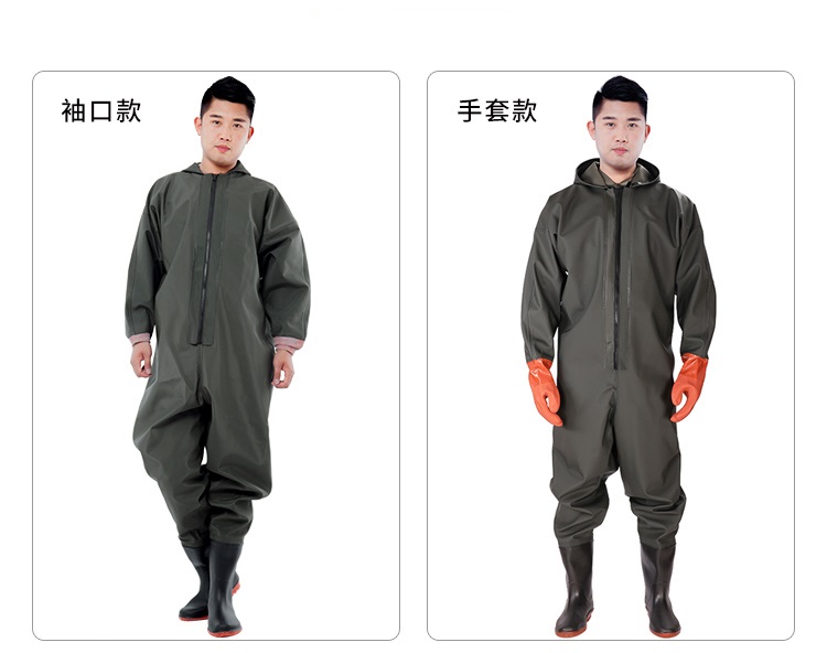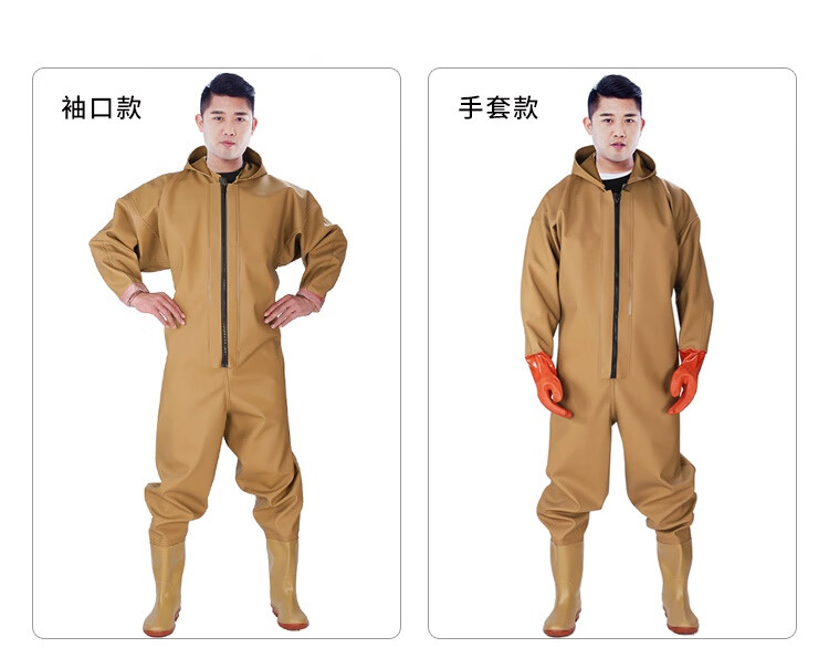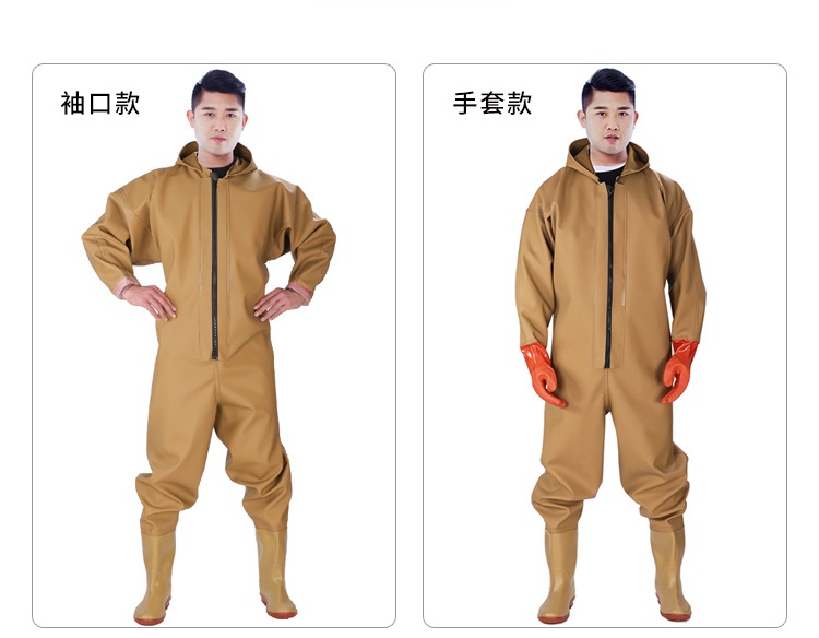 Hongshiyu waders, thickened wear-resistant half-length rain boots, full-length one-piece waders, waterproof clothes, reservoir men's leather fork fishing rain trousers, yellow full-body gloves 110 silk 41