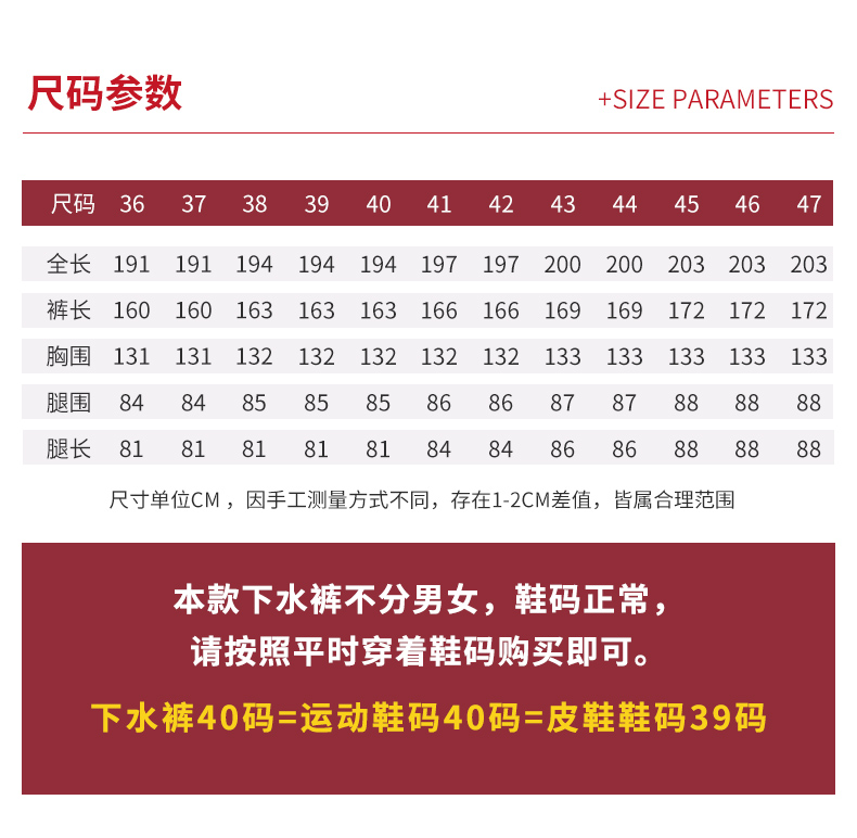 China (cm) 165 / 88-90 170 / 96-98 175 / 108-110 180 / 118-122 185 / 126-130