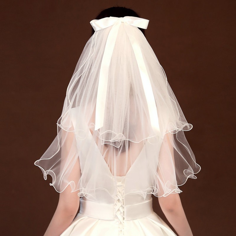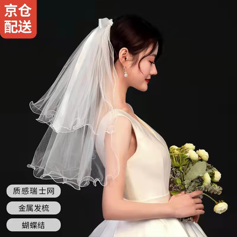 Renshanxiang Veil Proposal Wedding Wedding Dress Headdress Veil Crown Proposal Wedding Certificate Posing Props Birthday Veil 2-layer White Bow 60cm Alloy Hair Comb 1