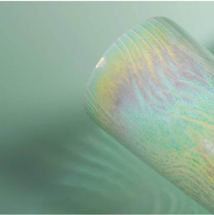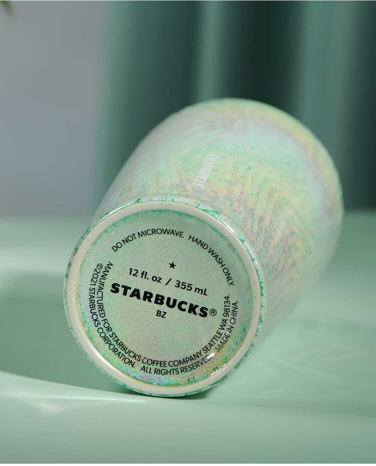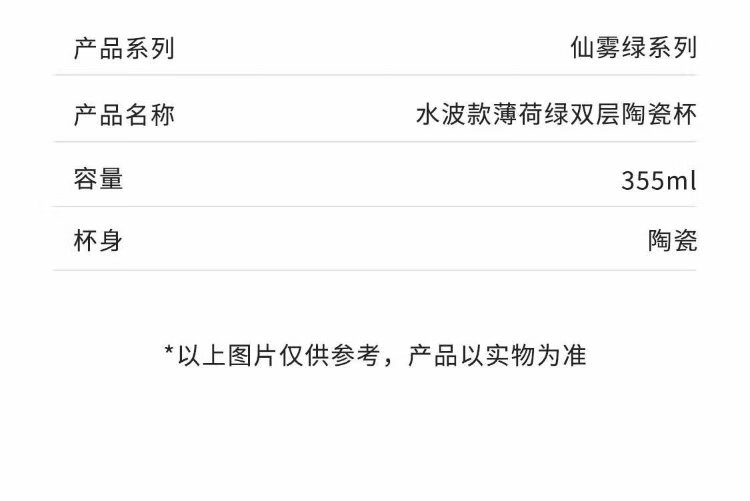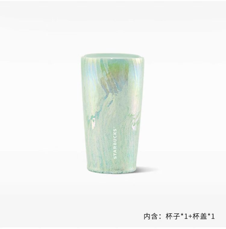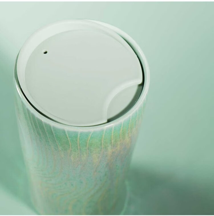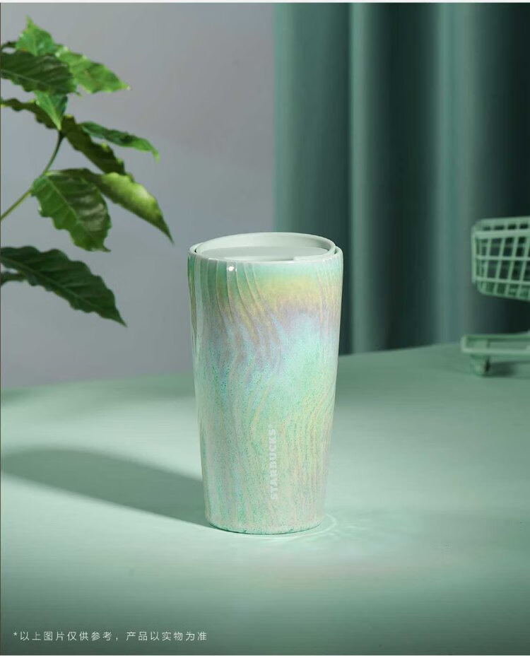 Starbucks (Starbucks) cup coffee cup water wave fairy mist green double-layer ceramic cup with lid 355ml water cup men and women gifts
