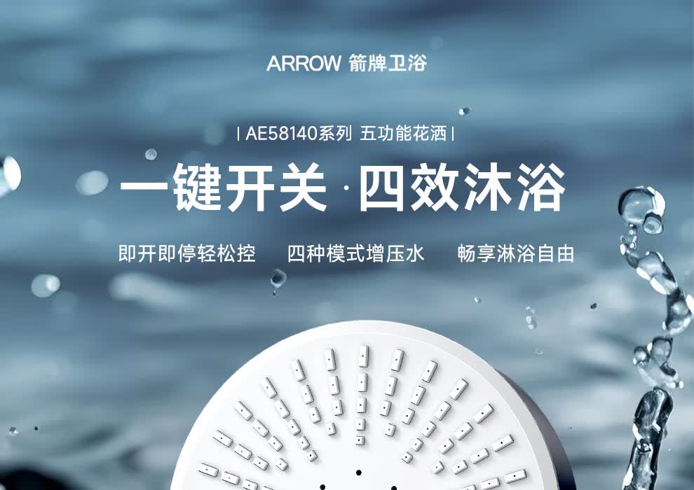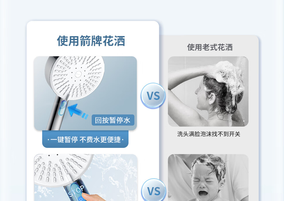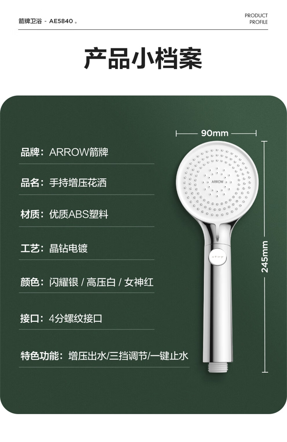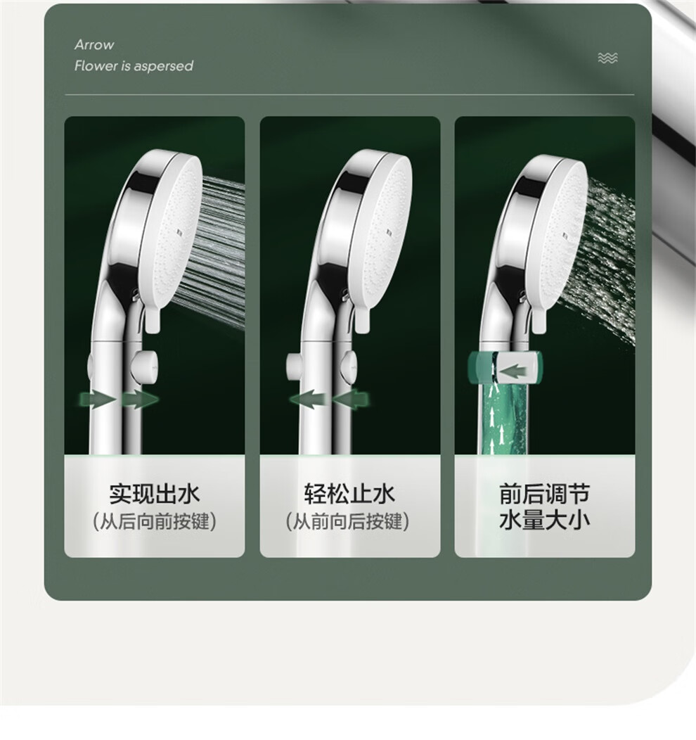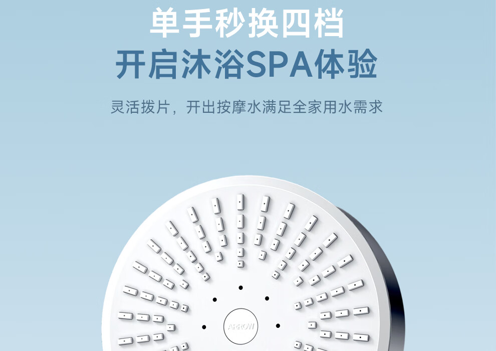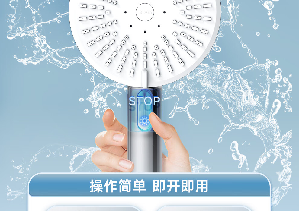 ARROW Government Subsidy Shower Pressurized Shower Head One-touch Water Stop Handheld Shower Large Shower Head Shower Paddle 3-speed Boost + One-touch Water Stop White