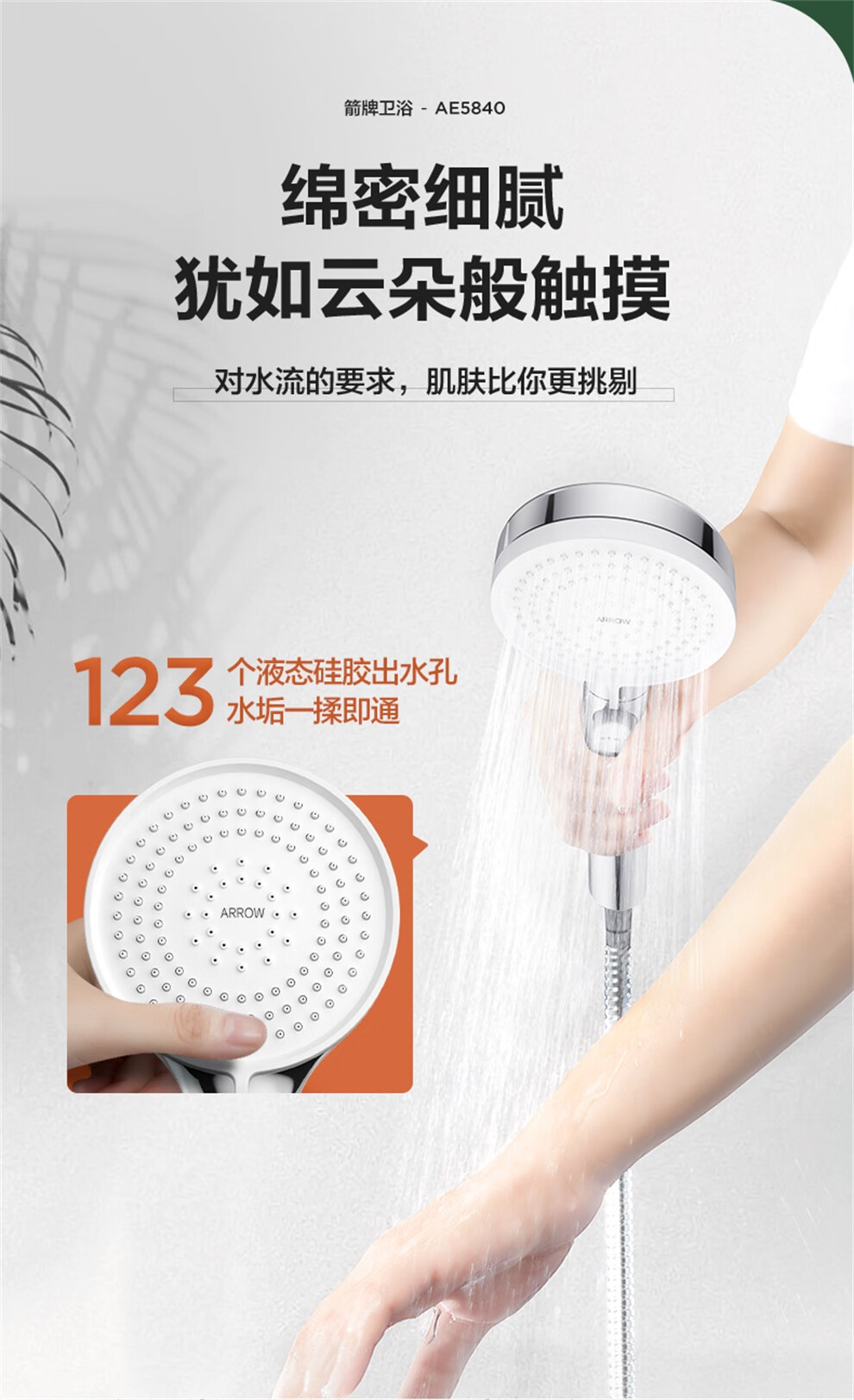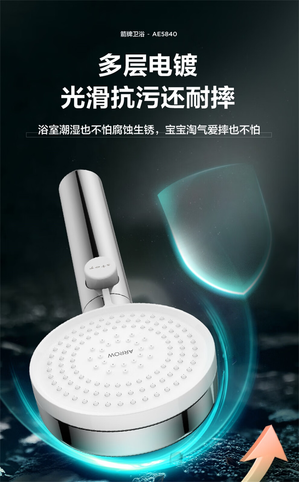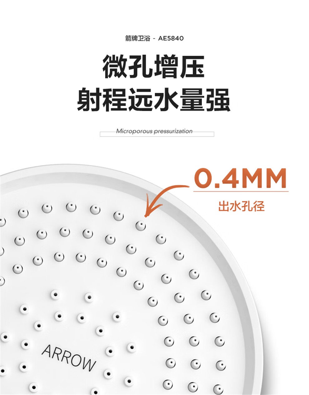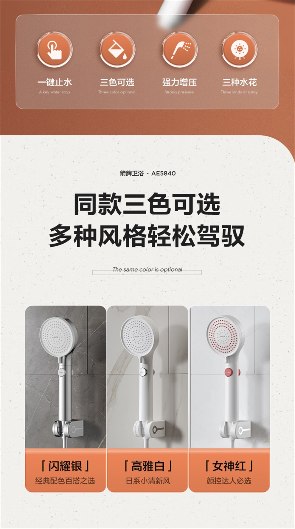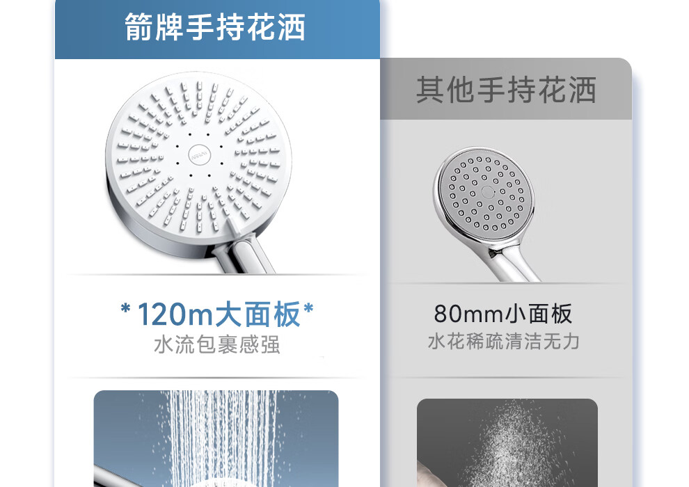 ARROW Government Subsidy Shower Pressurized Shower Head One-touch Water Stop Handheld Shower Large Shower Head Shower Paddle 3-speed Boost + One-touch Water Stop White