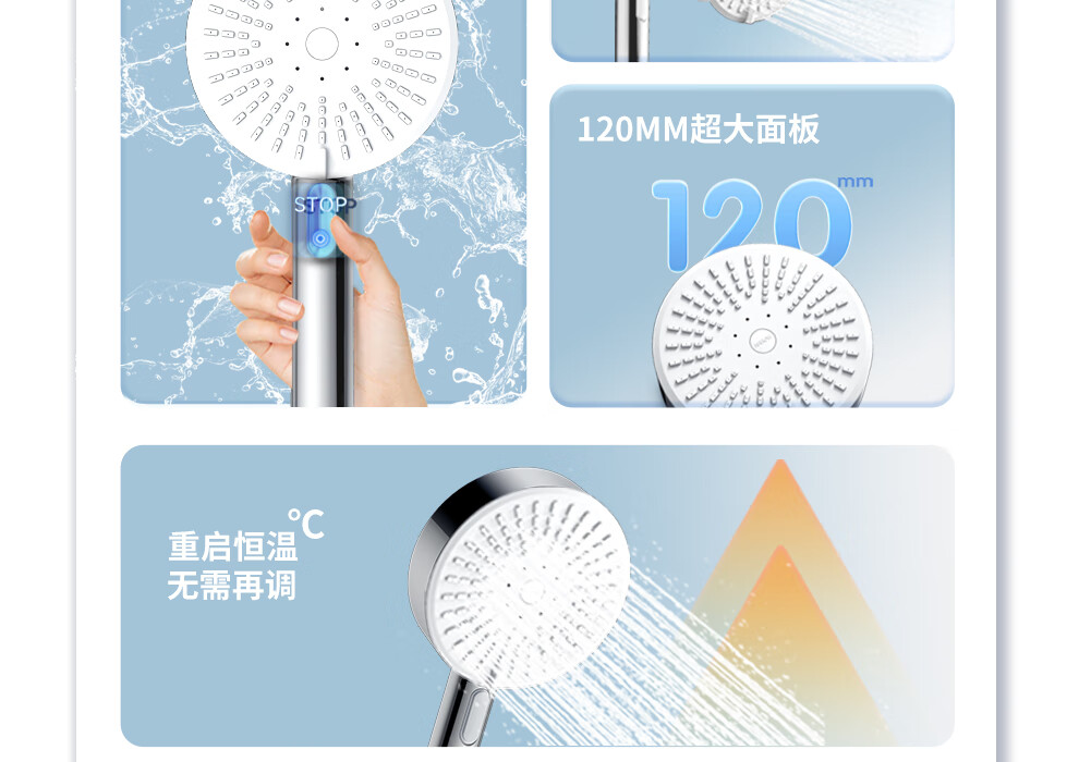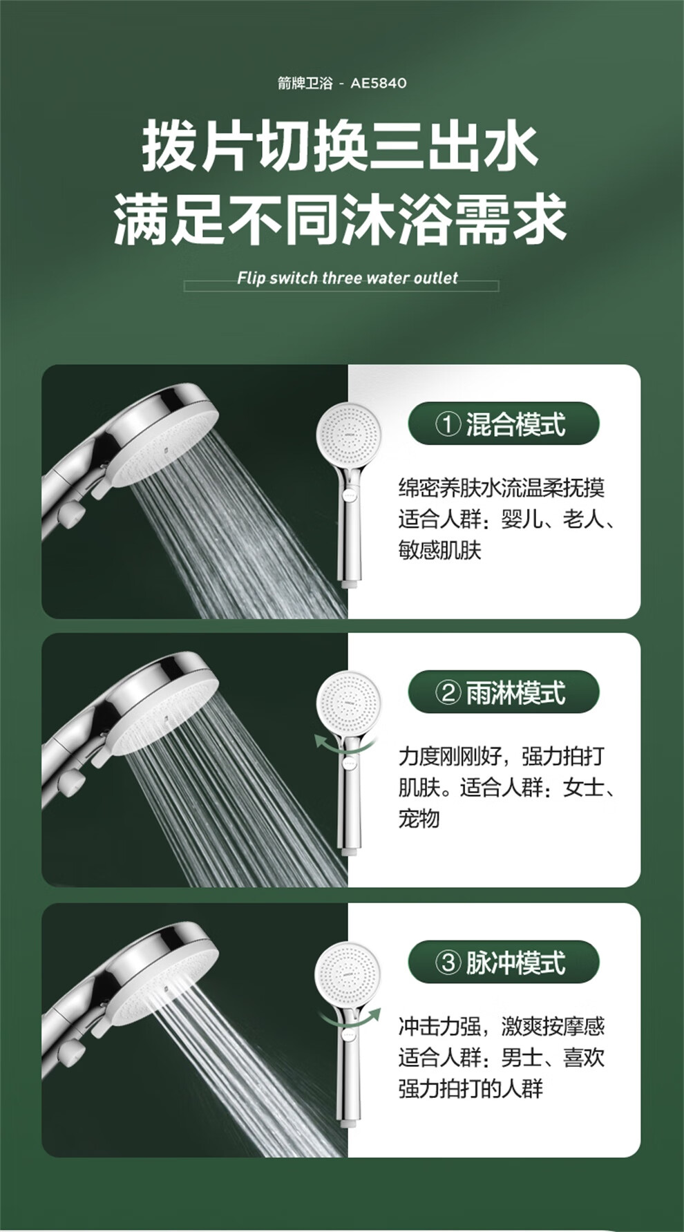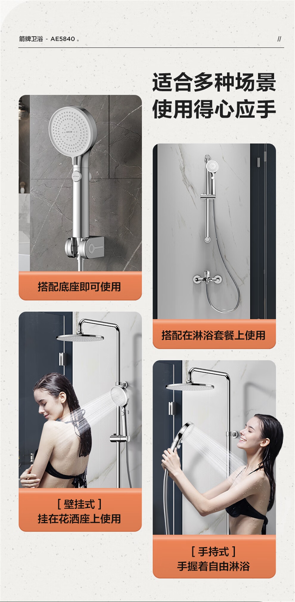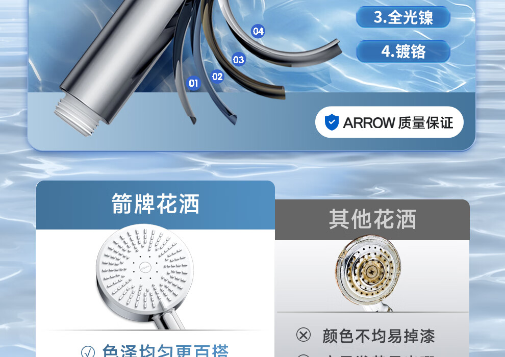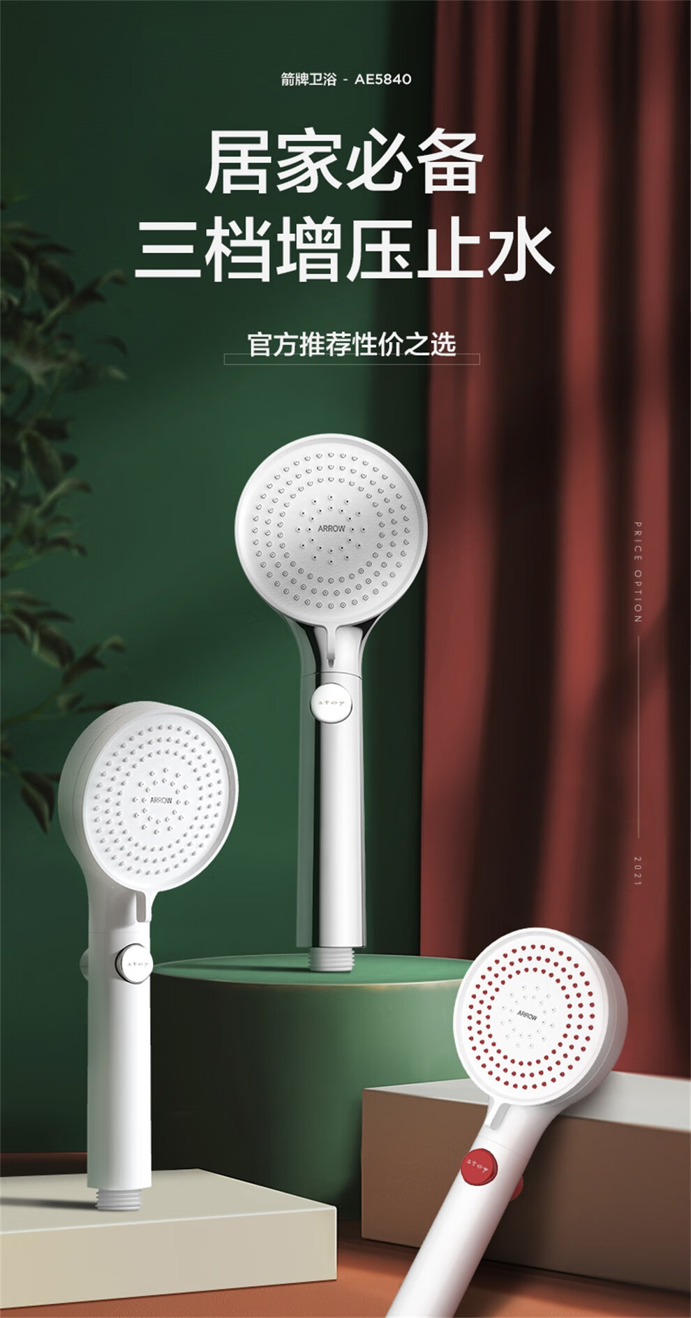 ARROW Government Subsidy Shower Pressurized Shower Head One-touch Water Stop Handheld Shower Large Shower Head Shower Paddle 3-speed Boost + One-touch Water Stop White