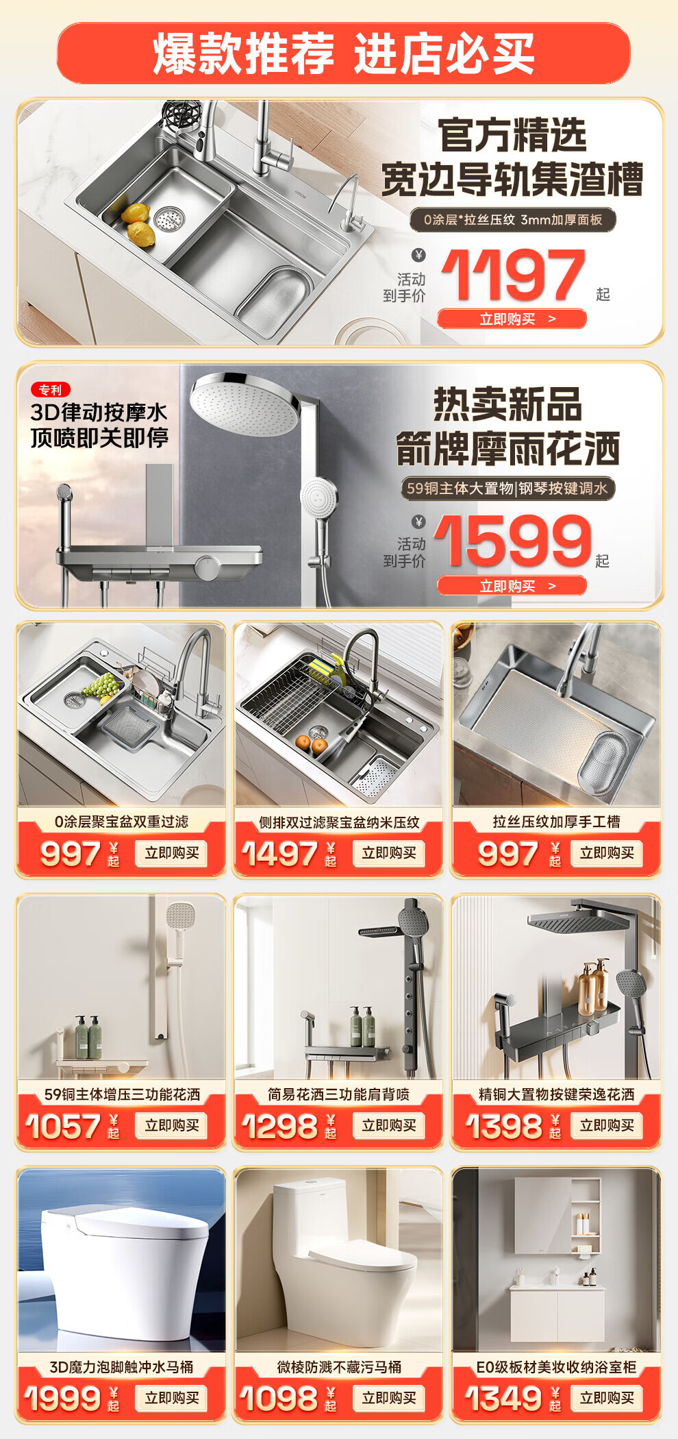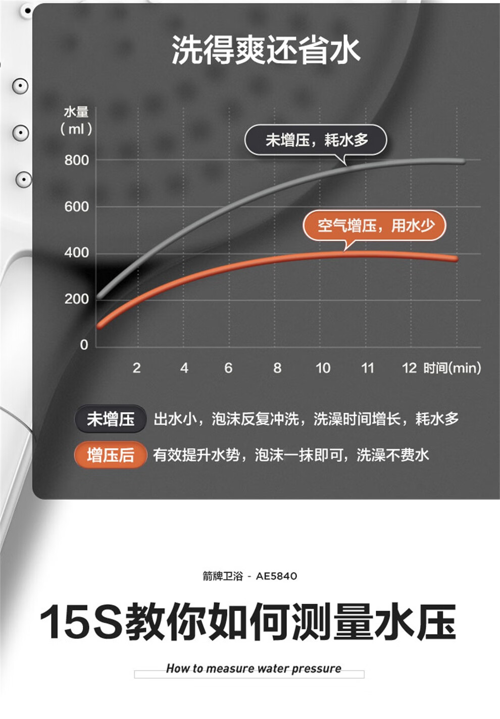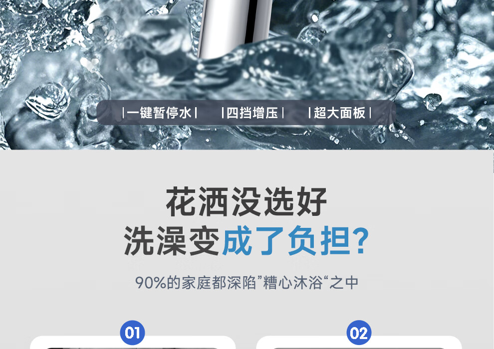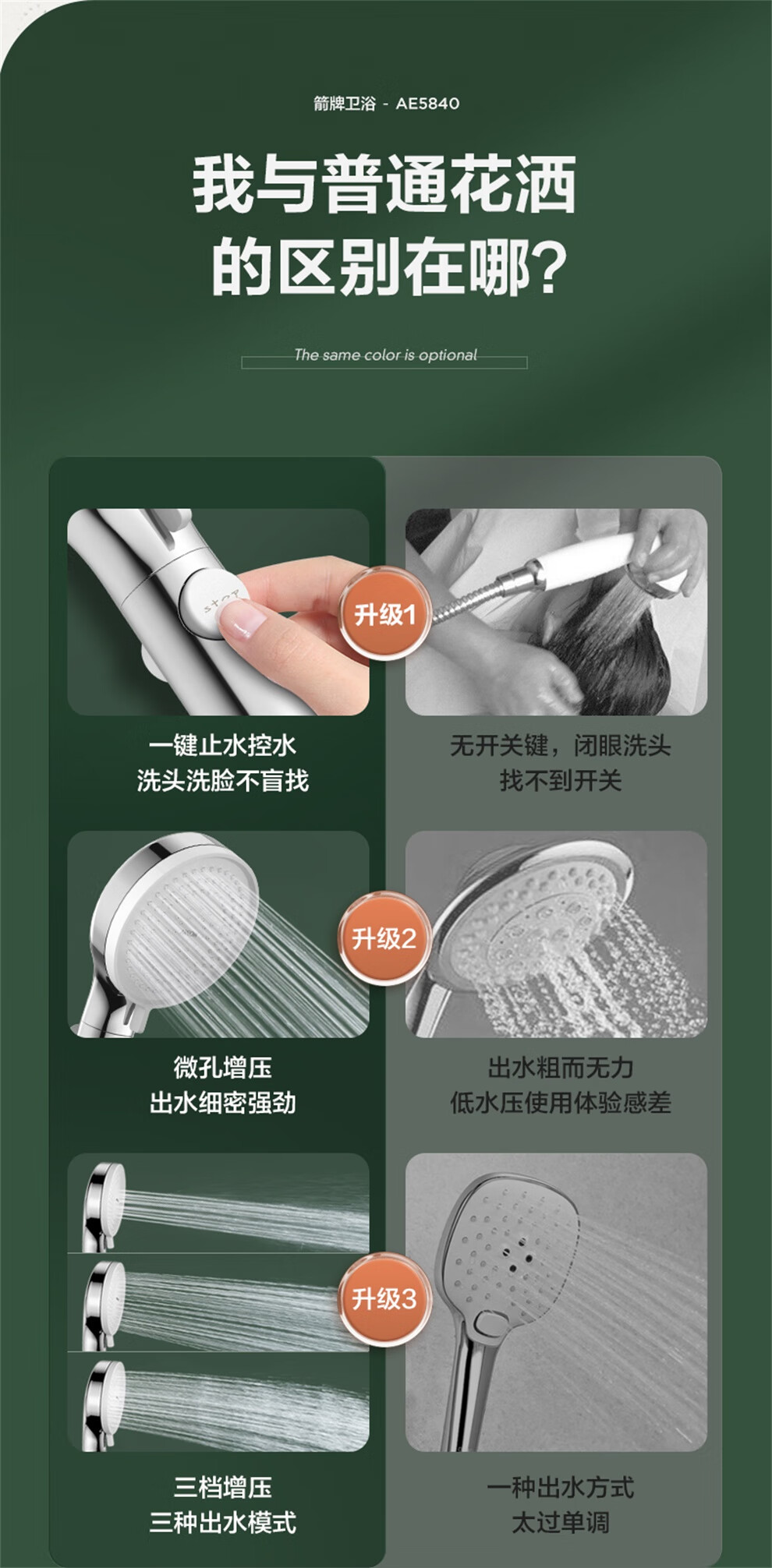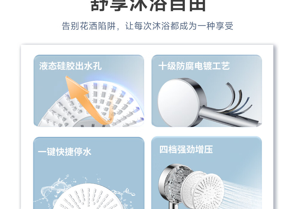 ARROW Government Subsidy Shower Pressurized Shower Head One-touch Water Stop Handheld Shower Large Shower Head Shower Paddle 3-speed Boost + One-touch Water Stop White
