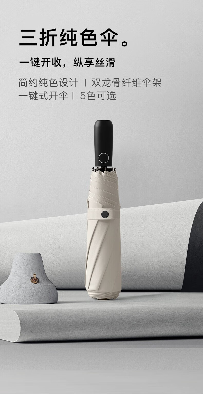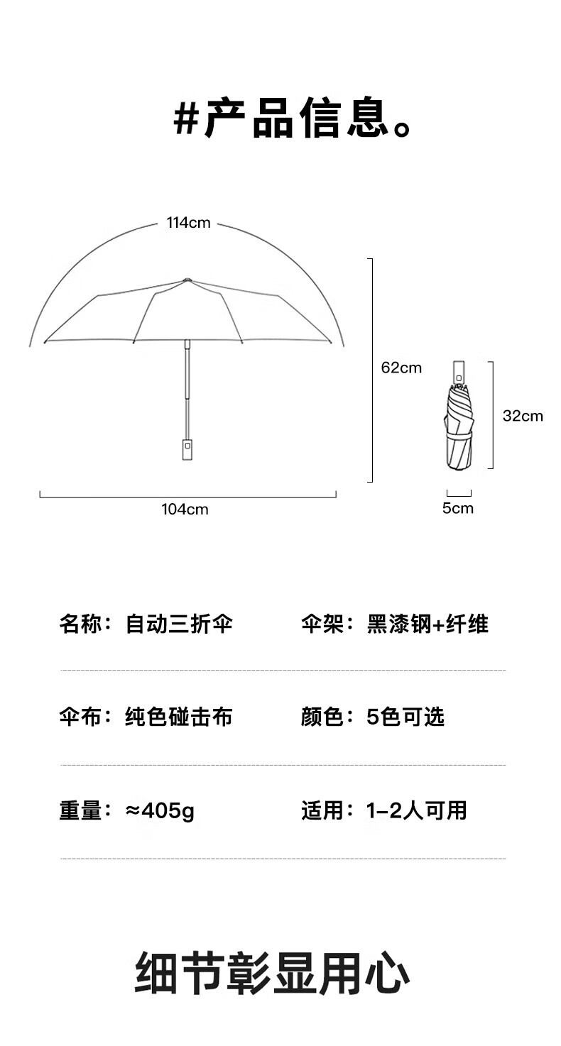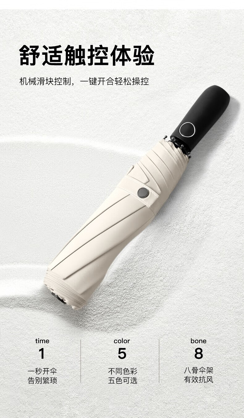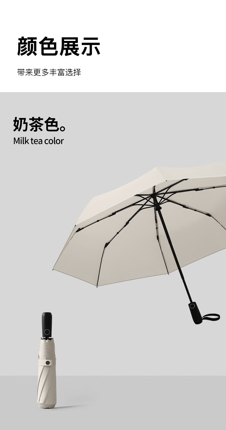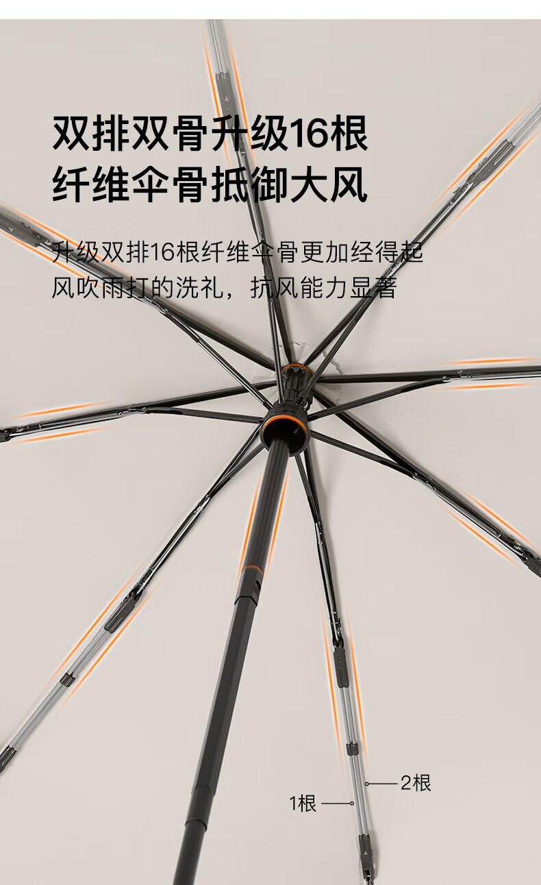 MAYDU Fully Automatic Umbrella Three-fold Large Double Umbrella Windproof Increased Reinforcement Men's Business Folding Fair Umbrella Fully Automatic Double Keel - Milk Tea Color