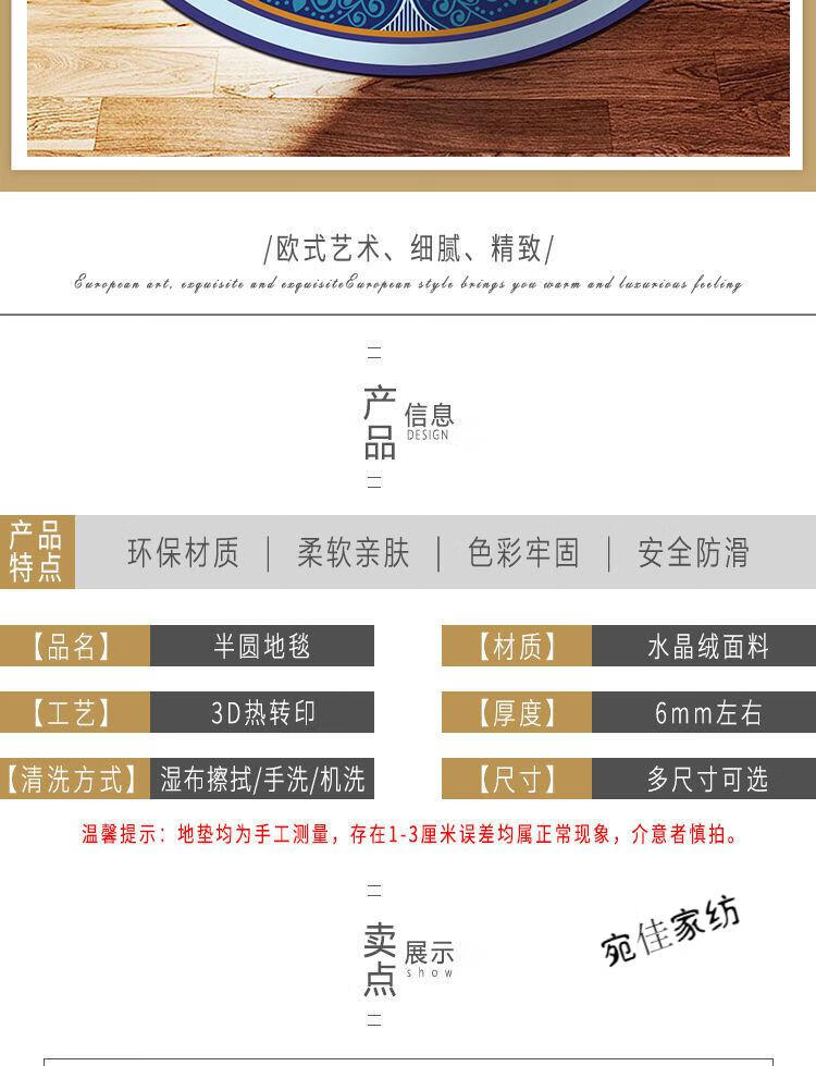 Ruiba halbrunde Türmatten und Fußmatten im europäischen Stil für den Ein- und Ausgang, rutschfeste Schlafzimmertür-Fußmatten für das Arbeitszimmer, Foyermatten, Eingangshalle im europäischen Stil, Halbkreis-01 Paar 45 * 90 cm Halbkreis