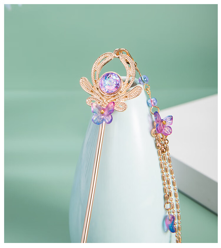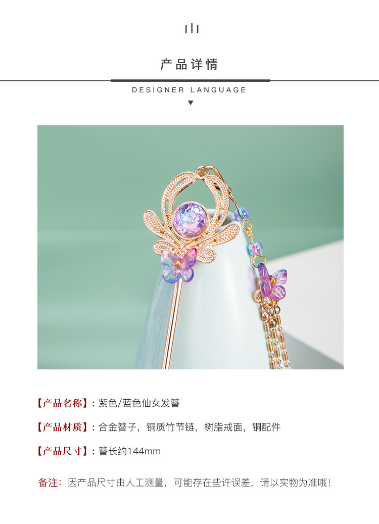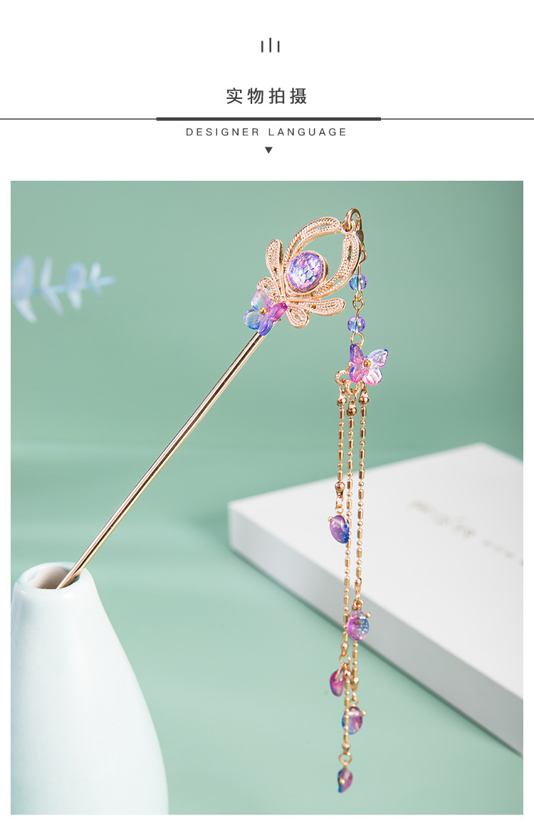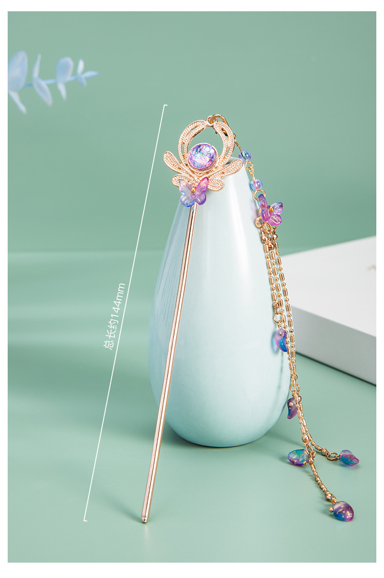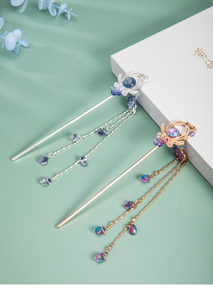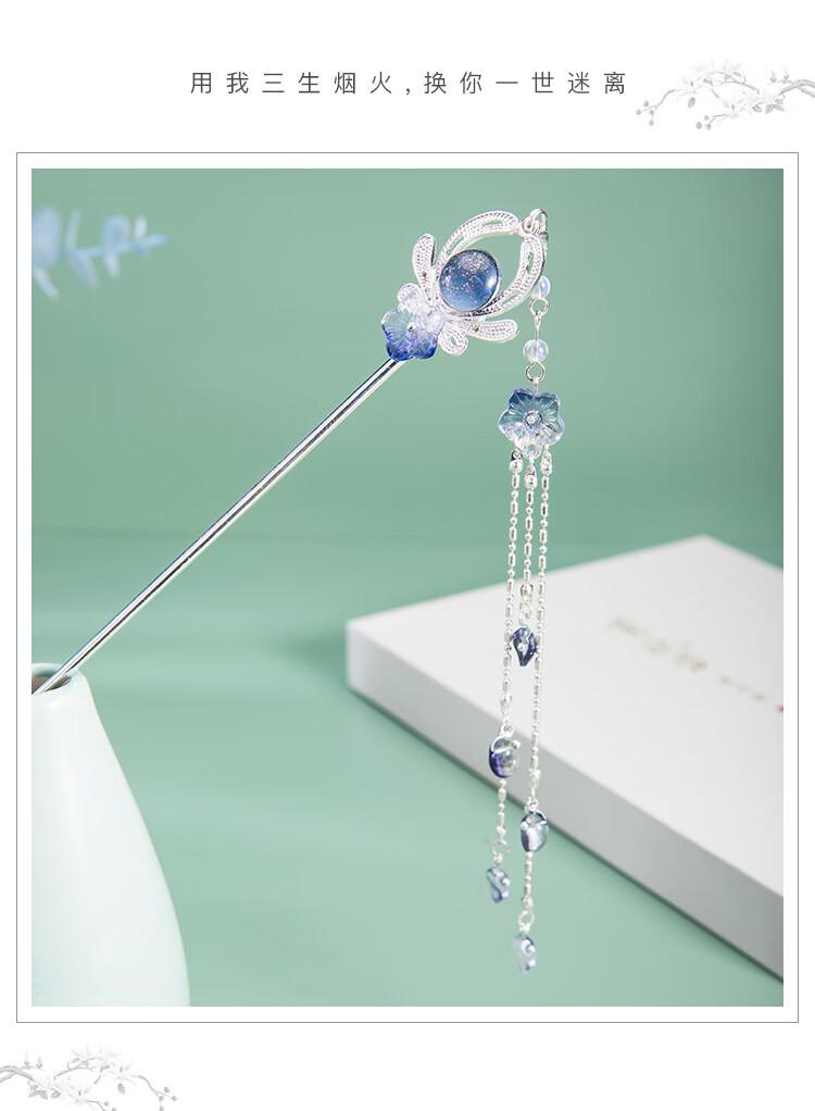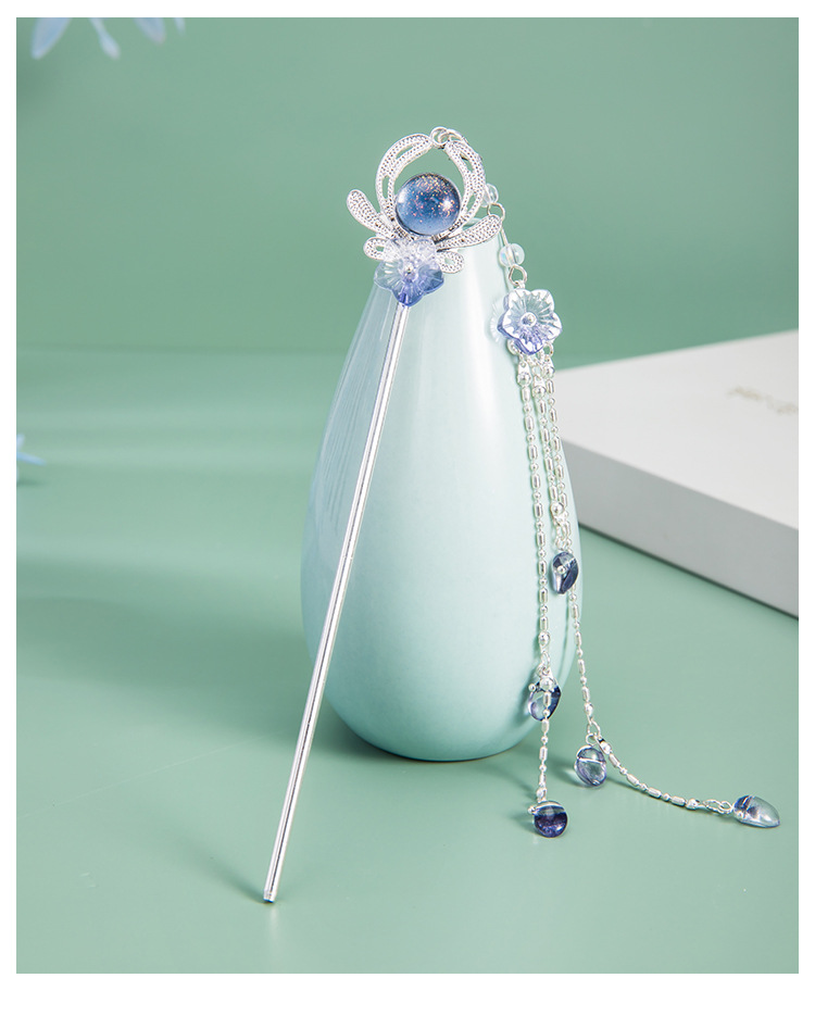 Qianbaolai ancient style hairpin fairy style retro step shake Hanfu accessories hairpin women's hairpin daily simple Chinese style tassel hairpin blue fairy hairpin