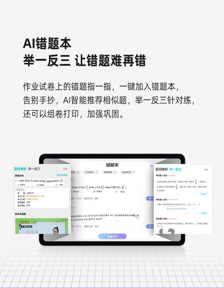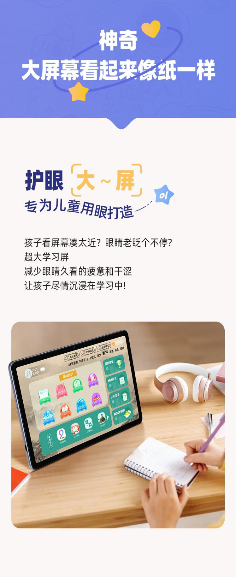 Huajingfang learning machine tablet primary school to high school paper screen eye protection intelligent early education machine for grades 1-6 synchronized third generation eye protection丨512G photo taking and answering丨5G insertable card AR finger reading