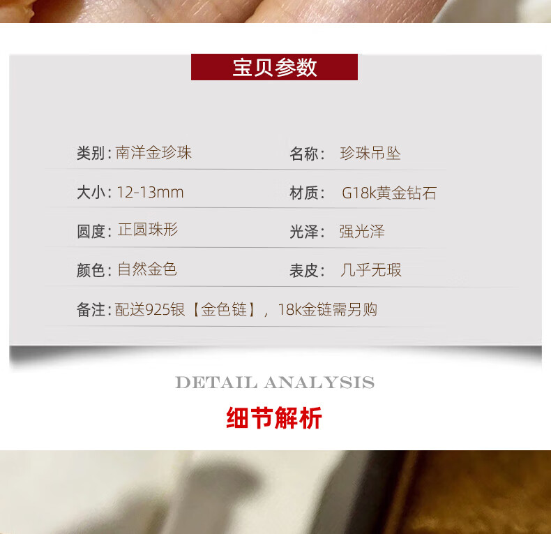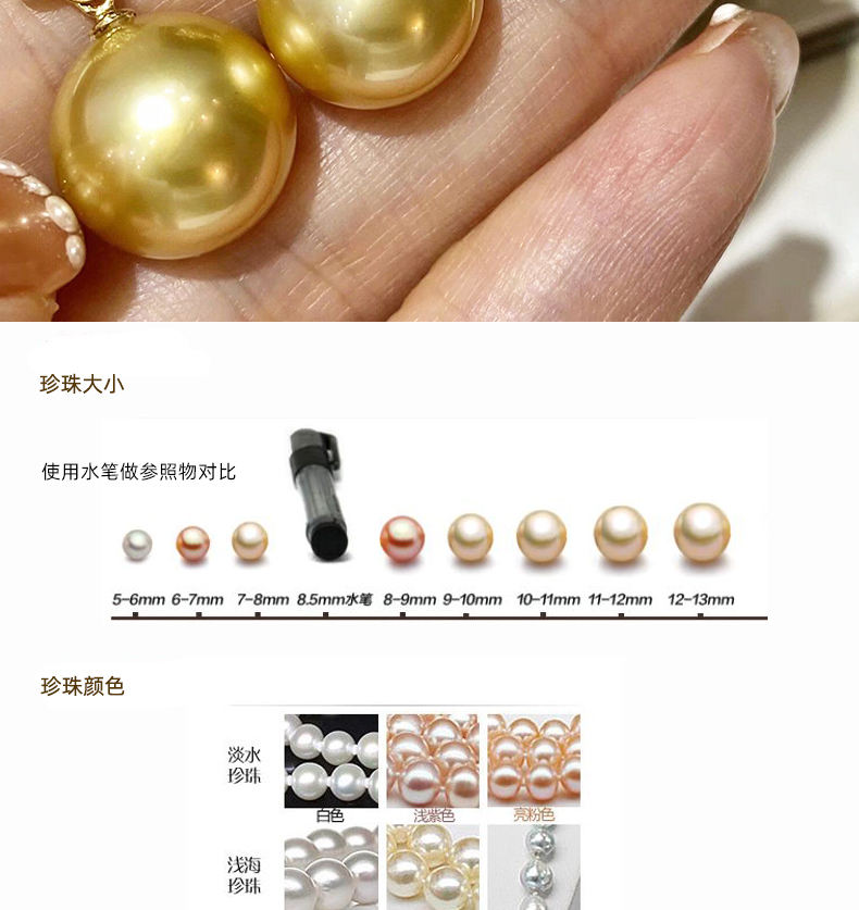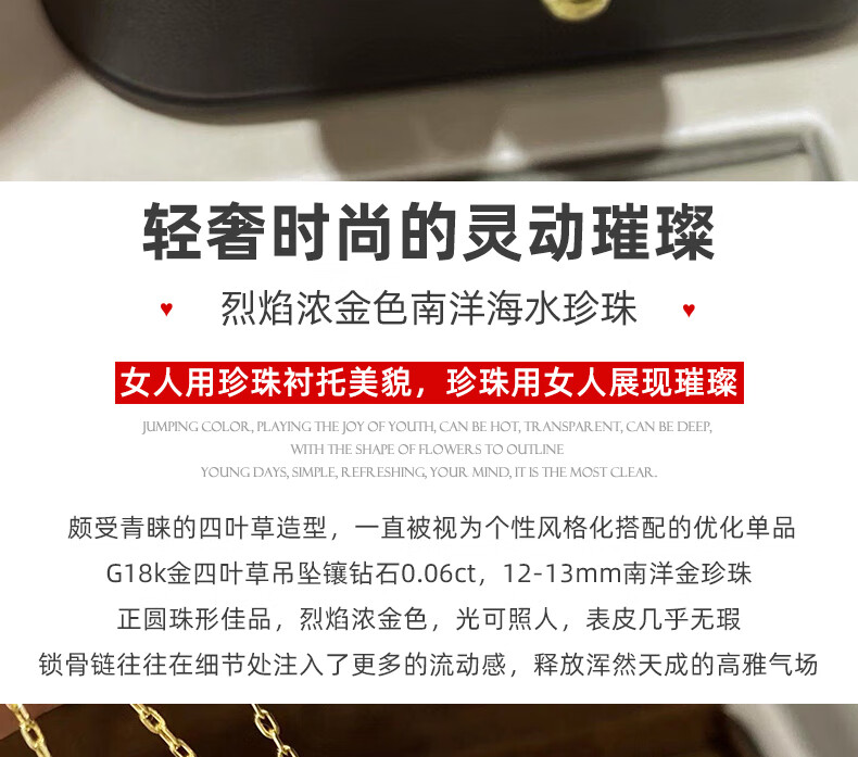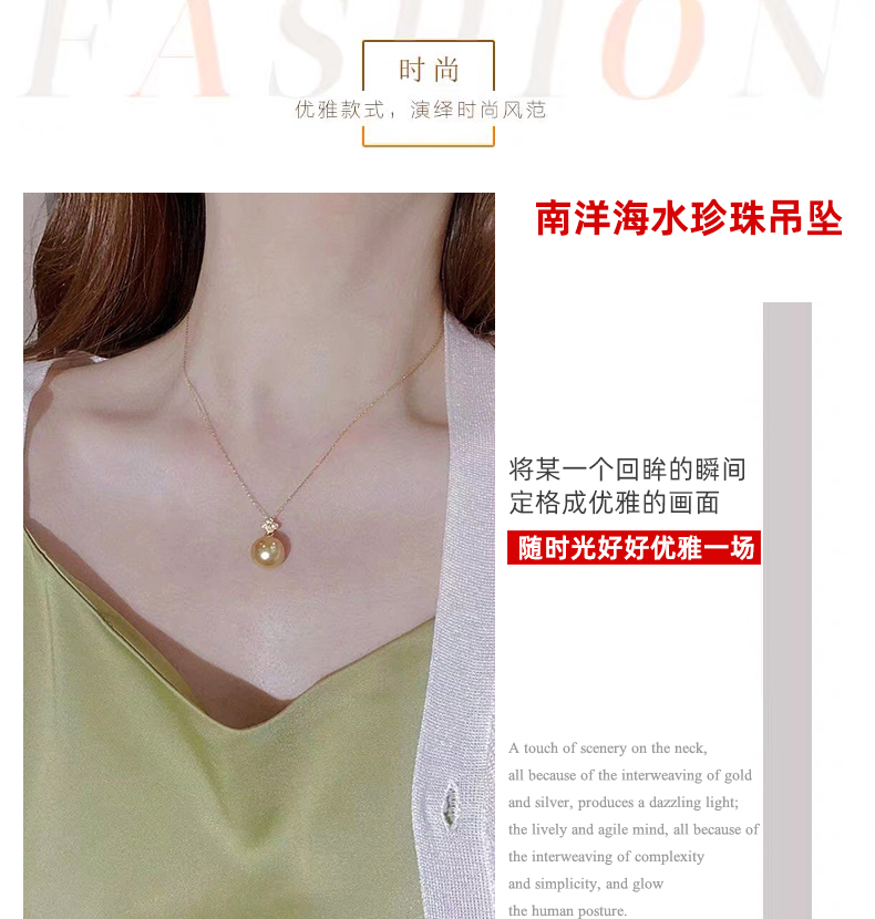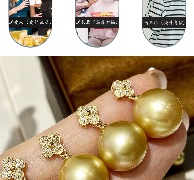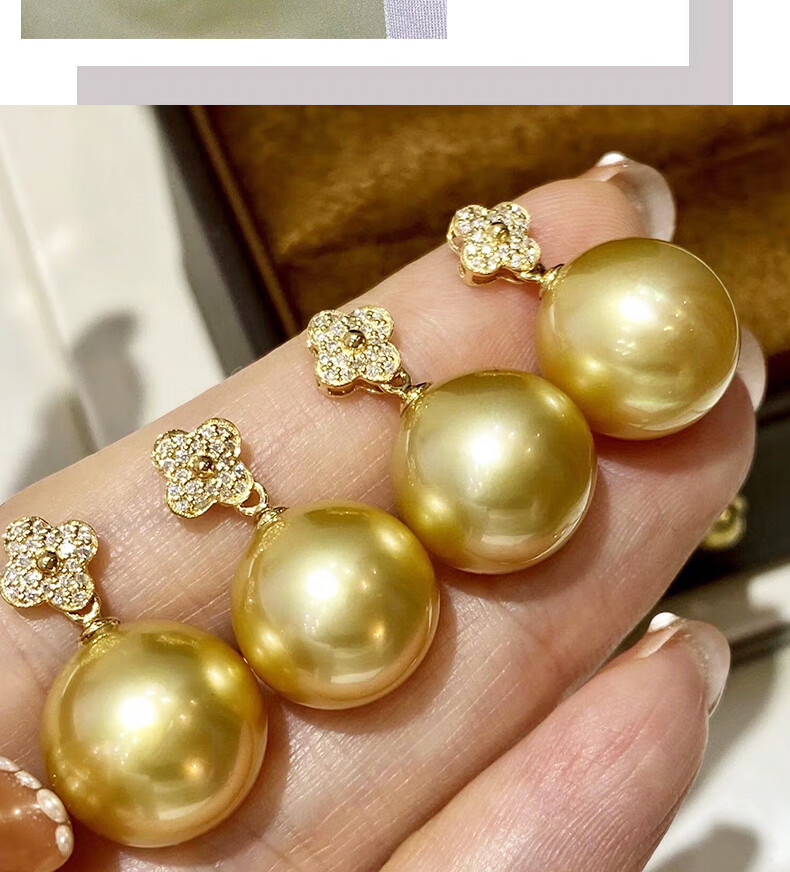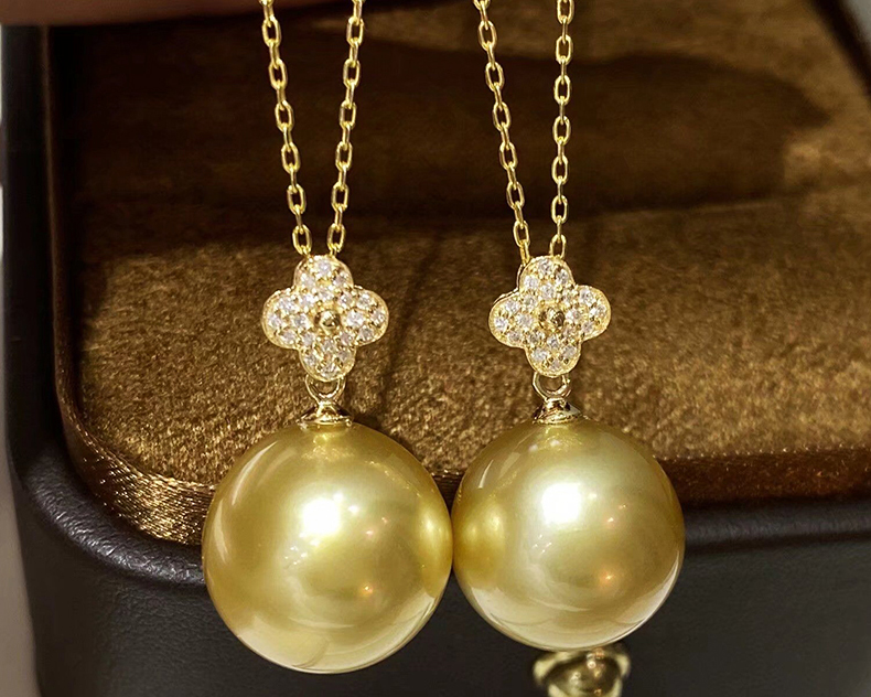 Jennifer Jewelry 12-13mm True Round South Sea Gold Pearl 18k Gold Diamond Pendant Four-leaf Clover Clavicle Chain True Round U18k Gold Diamond Pendant Without Chain 12-13mm South Sea Gold Pearl