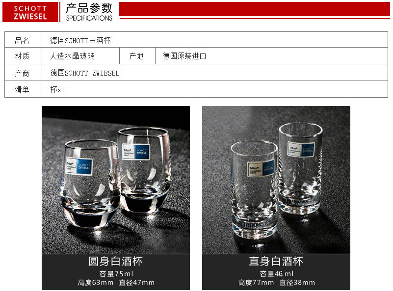 SCHOTT St. Visa German imported crystal glass spirit cup one-cup wonton cup white wine cup household small Ruyi cup set single straight 46ml 46ml 1