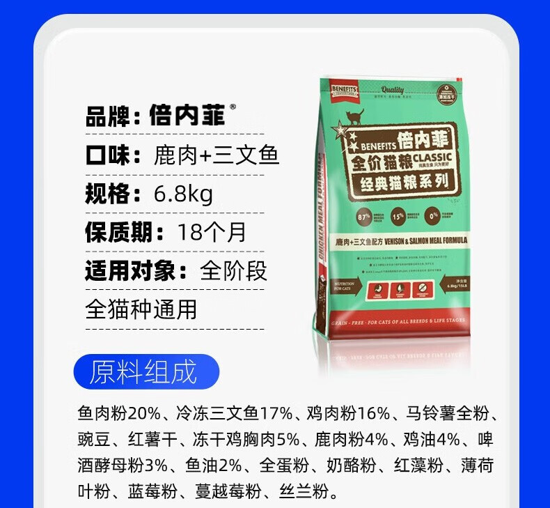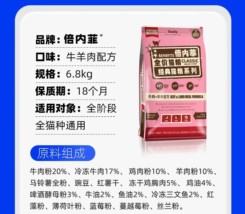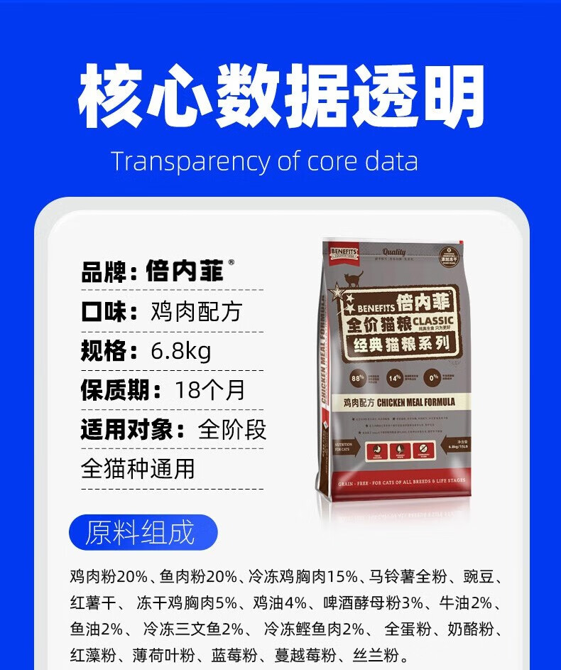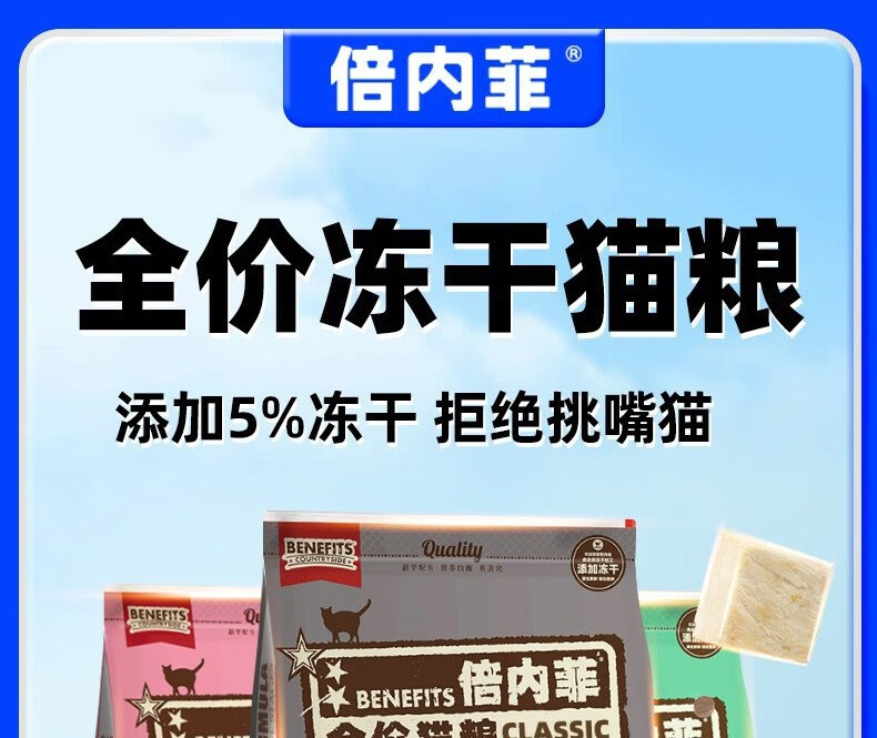 Benefits cat food, freeze-dried cat food, grain-free cat food, universal full-price cat food for adult cats and kittens, chicken formula (3.6kg)