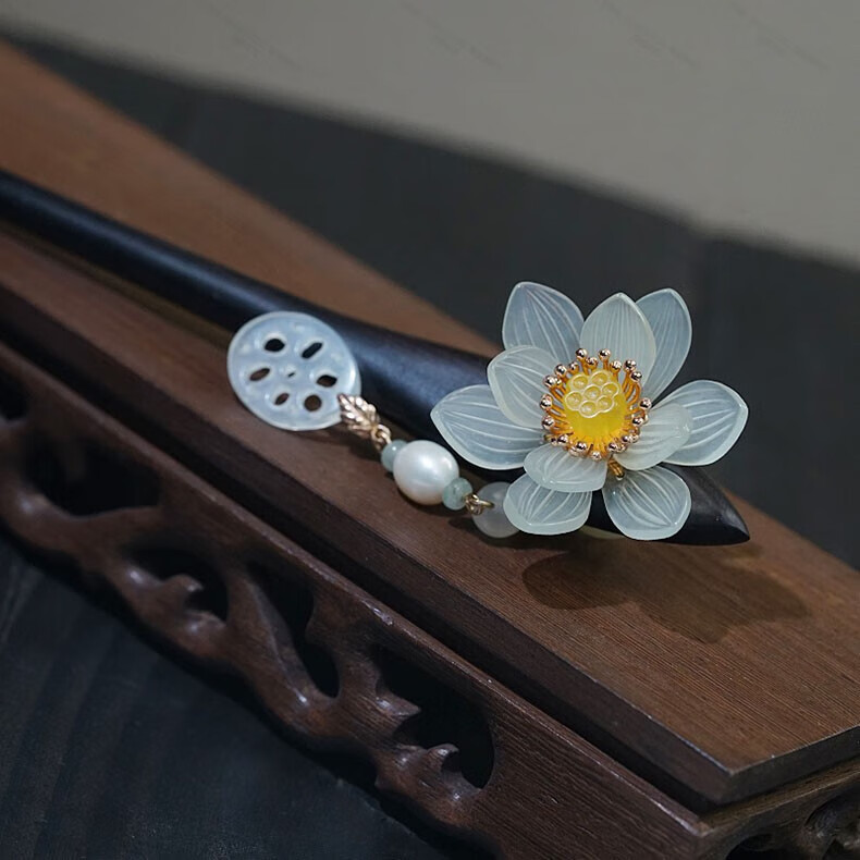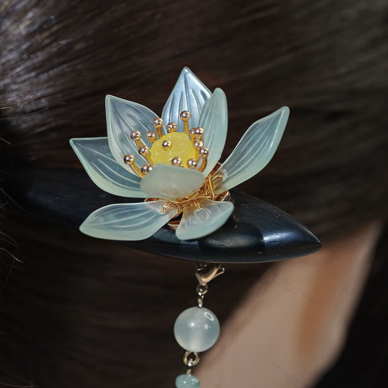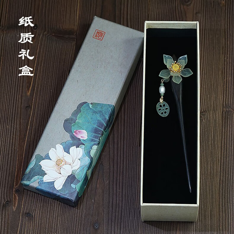 Kamalun (KAMALUN) lotus hairpin ancient style tassels black sandalwood Hanfu hairpin hairpin hairpin for girlfriend and wife birthday Chinese Valentine's Day gift picture style