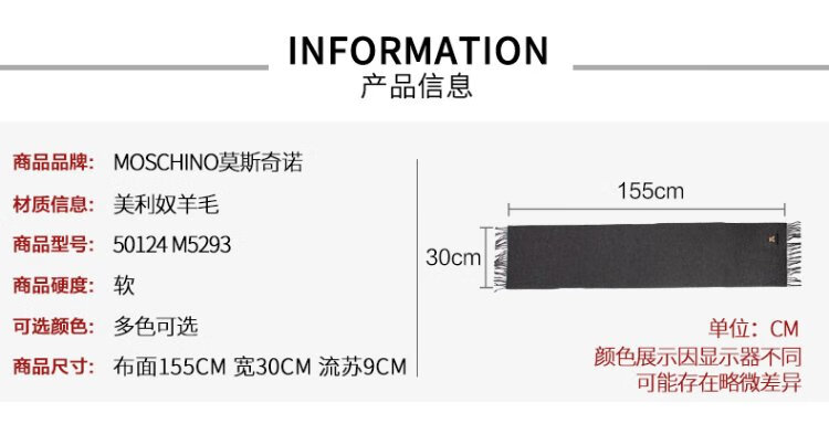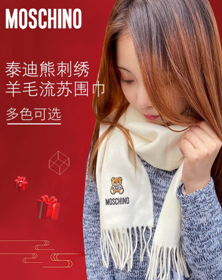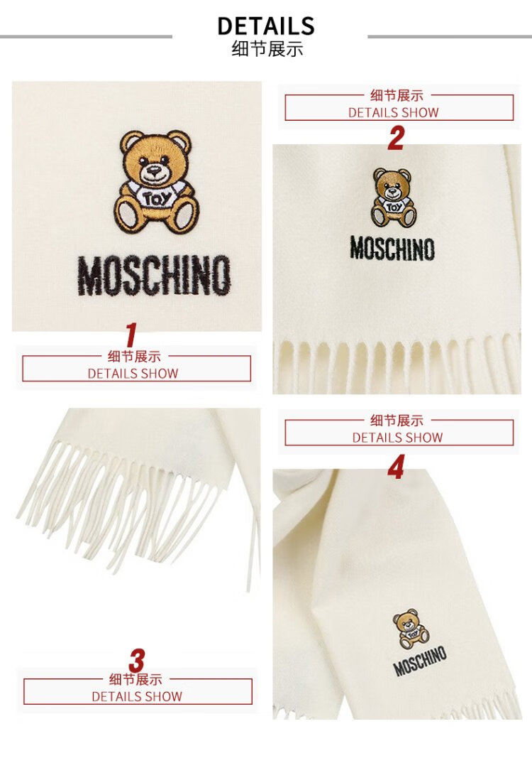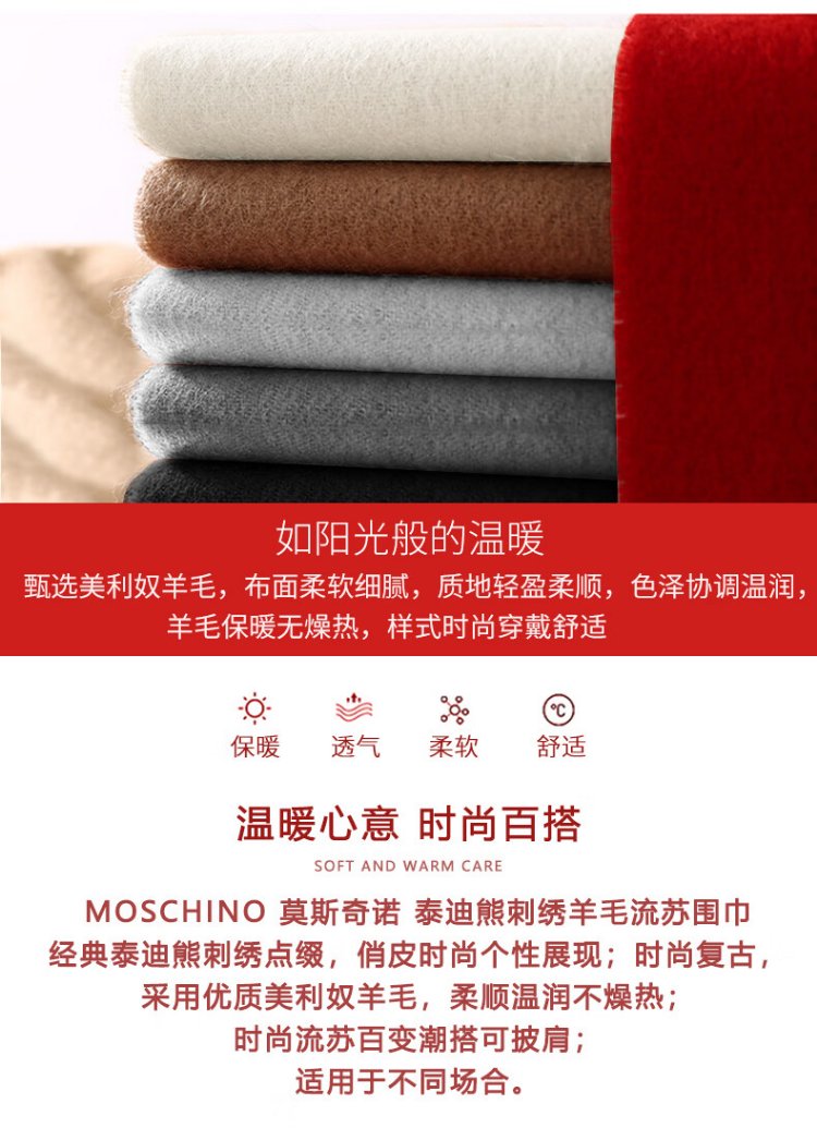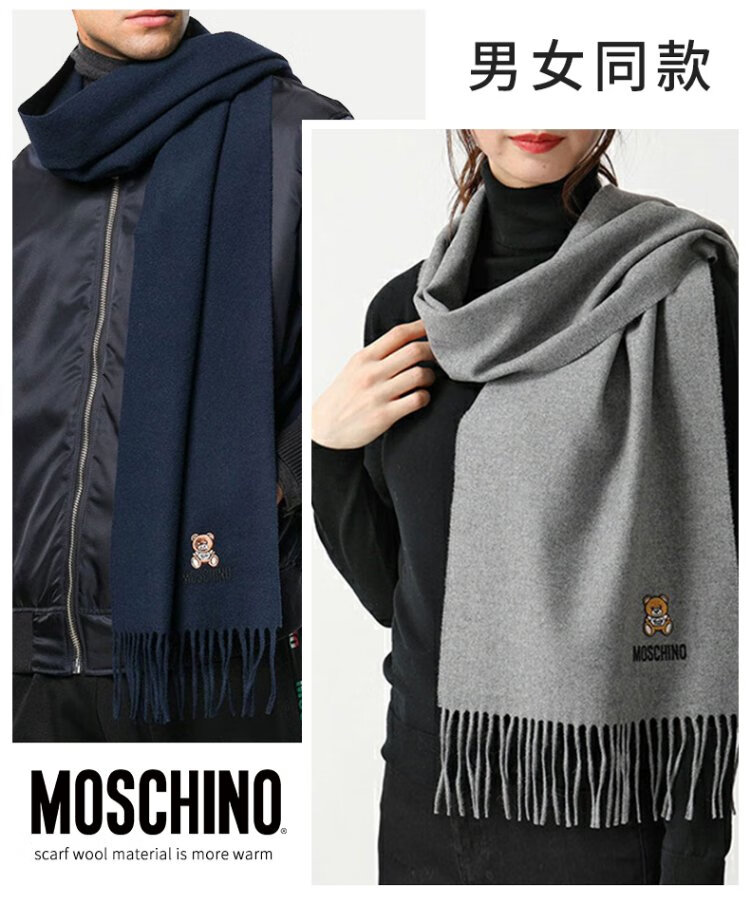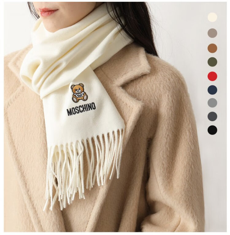 Directly supplied by MOSCHINO brand, embroidered tassel wool scarf, couple's scarf, same style for men and women, Women's Day birthday gift, black bear style