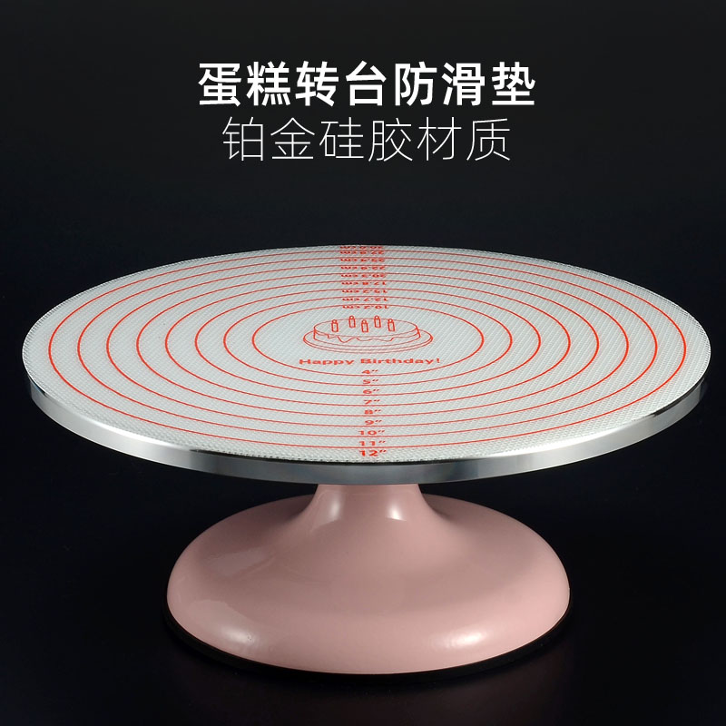 Xinbaiyue cake turntable, decorated turntable anti-slip mat, children's placemat, baking and kneading mat, silicone mat, round kitchen insulation mat, thickened platinum silicone 26cm, graduated anti-slip mat