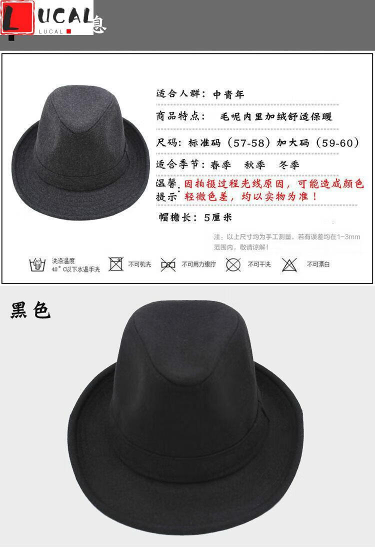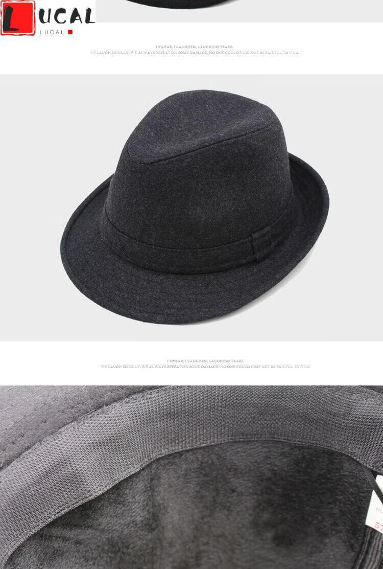 LUCALY Republic of China style men's top hat and elderly hat men's autumn and winter thickened velvet big-brimmed top hat for middle-aged and elderly people to keep warm. // Solid color (no velvet inside) - black and gray standard size (56-58cm) lining adjustable