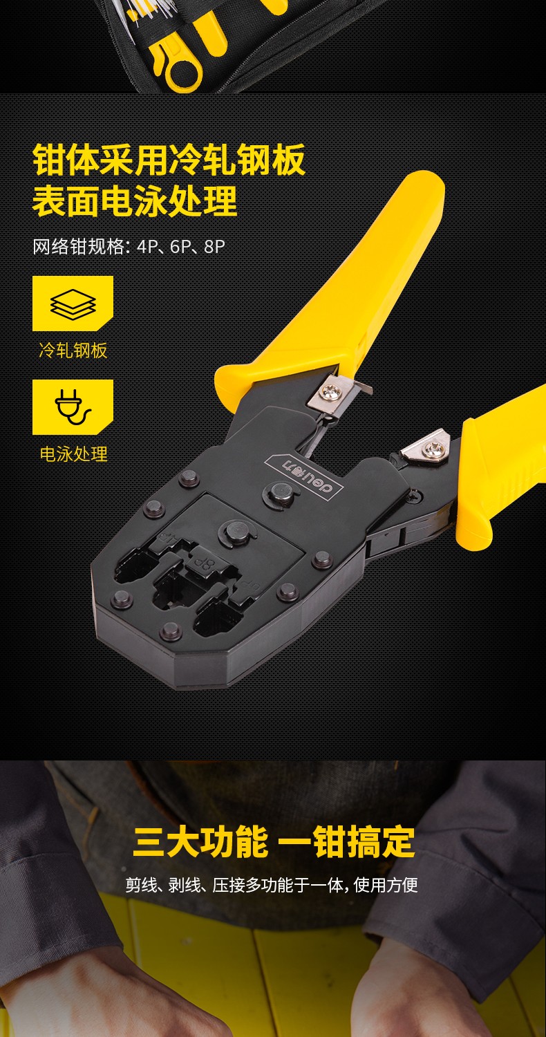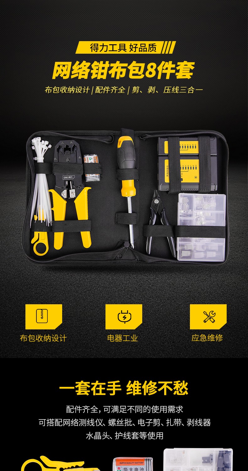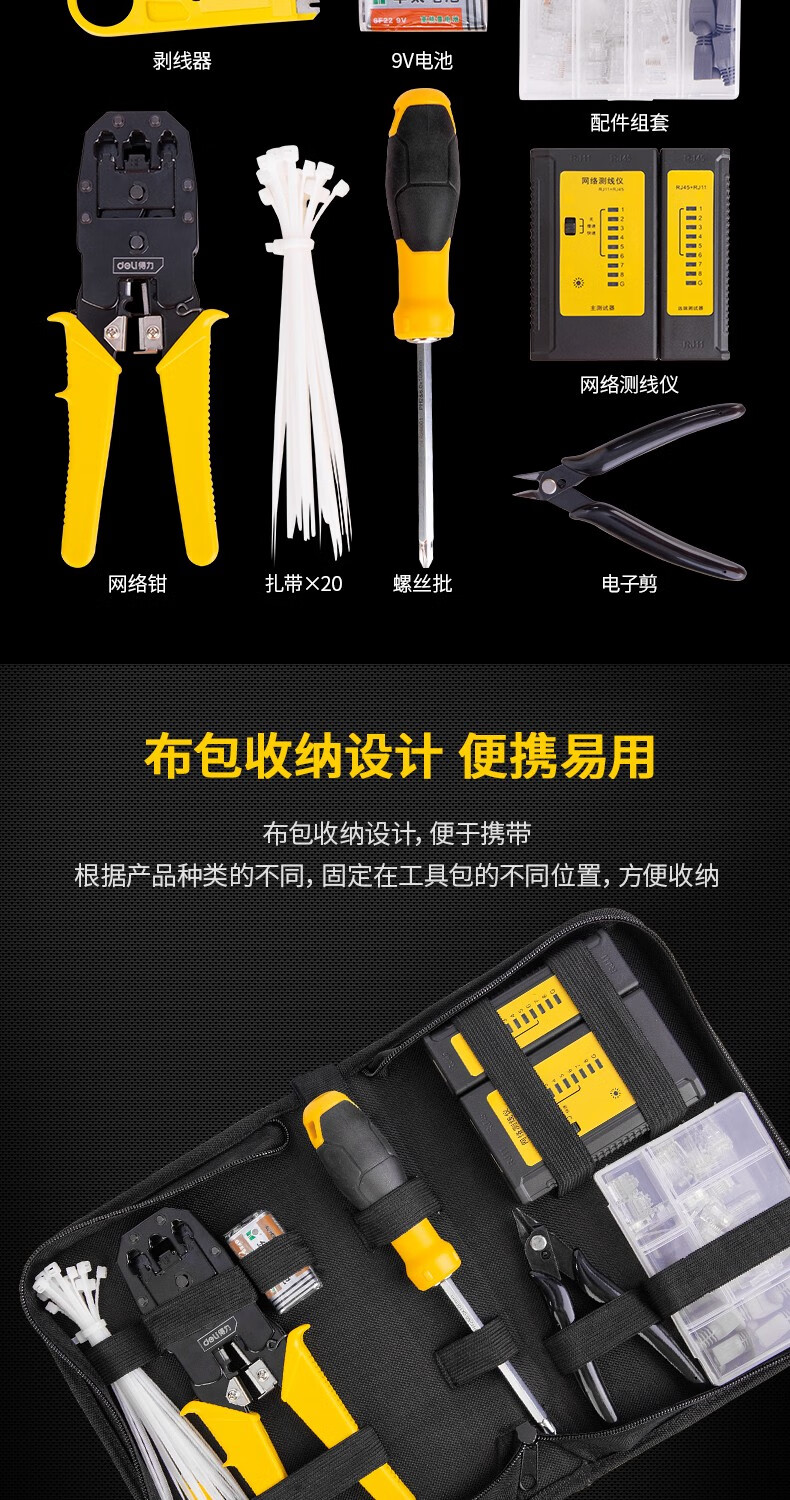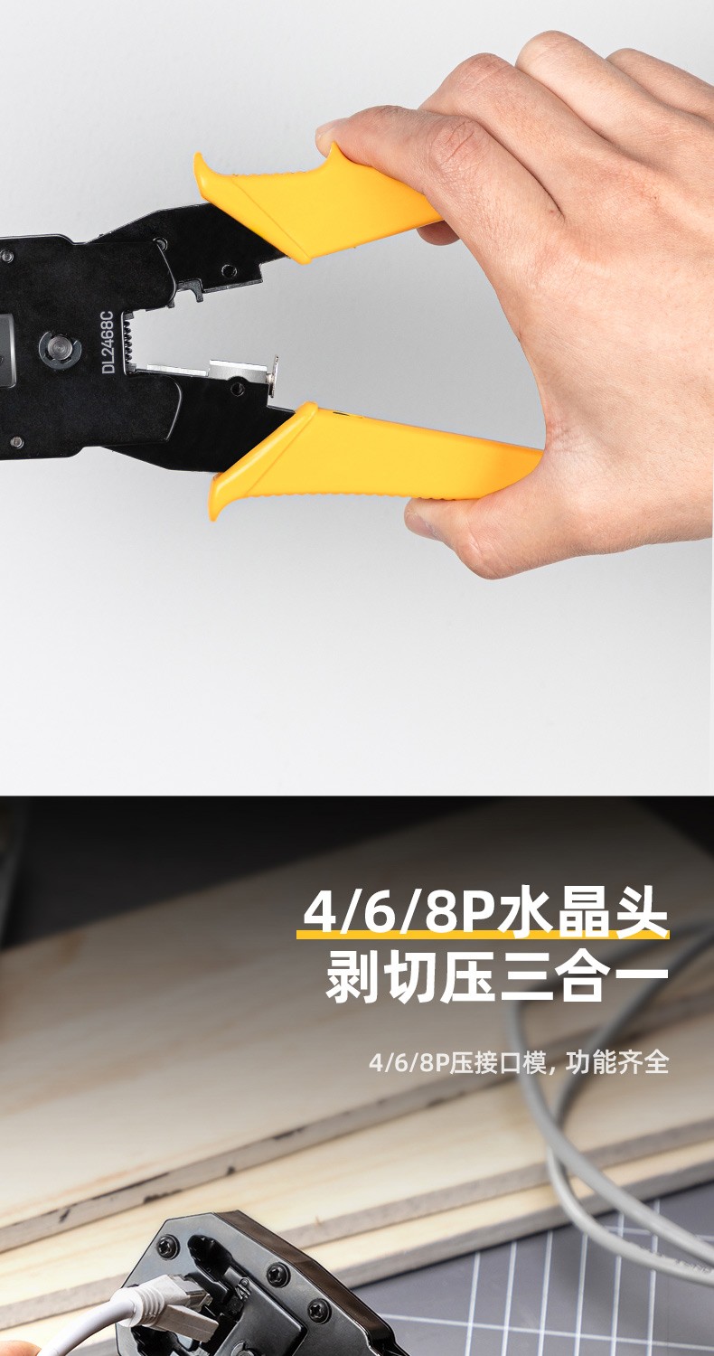 Deli network cable pliers set household multi-functional professional-grade crimping pliers crystal head connector pliers network cable tester single three-purpose network pliers DL2468C