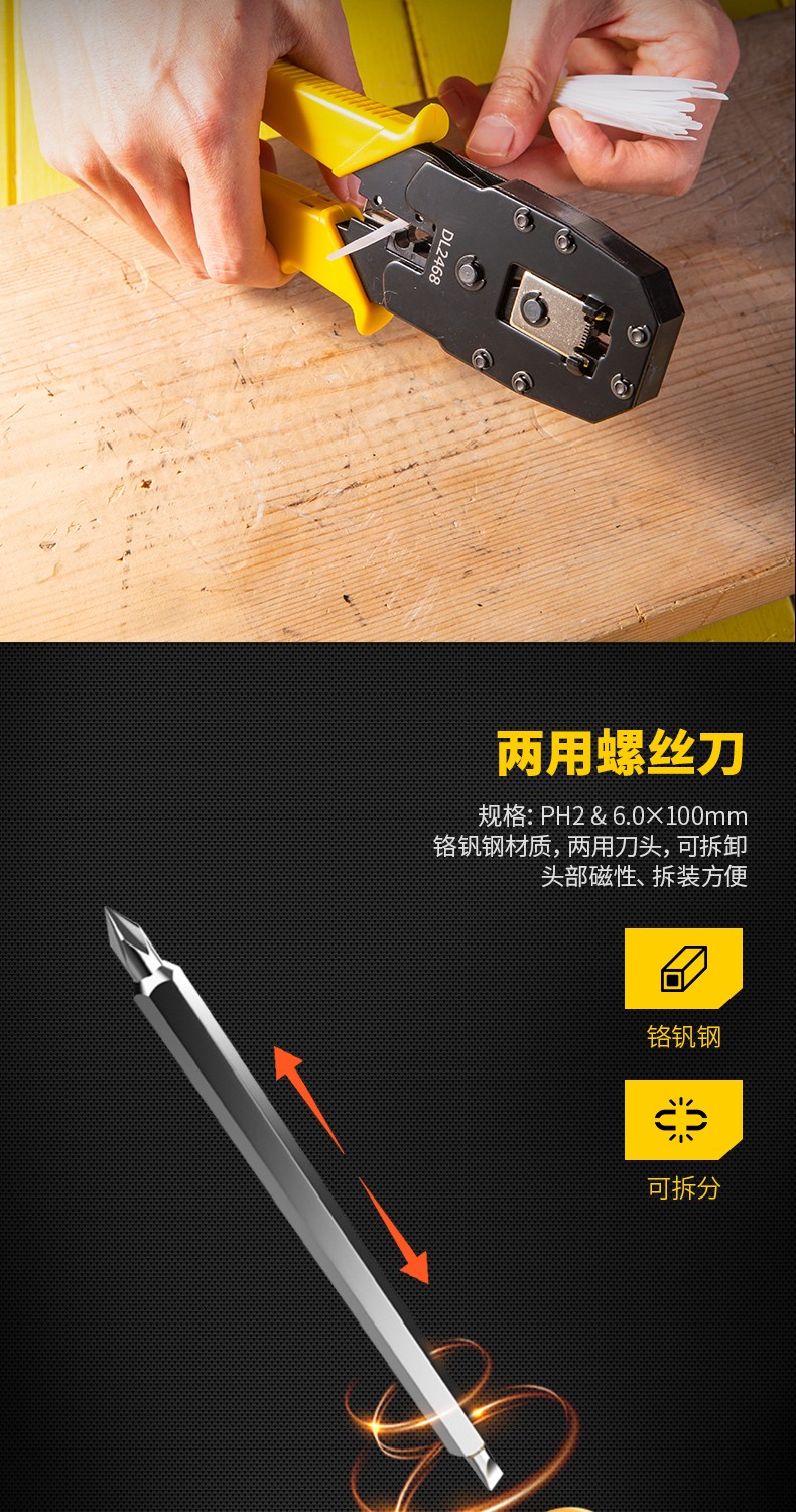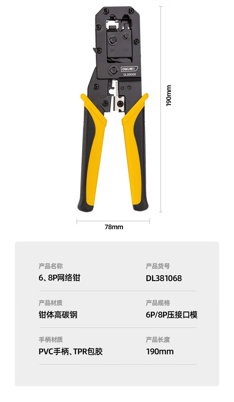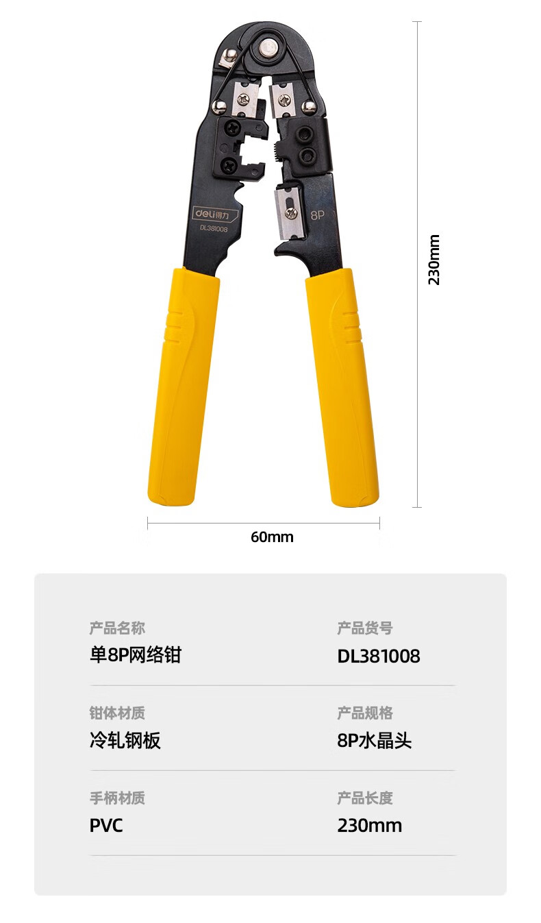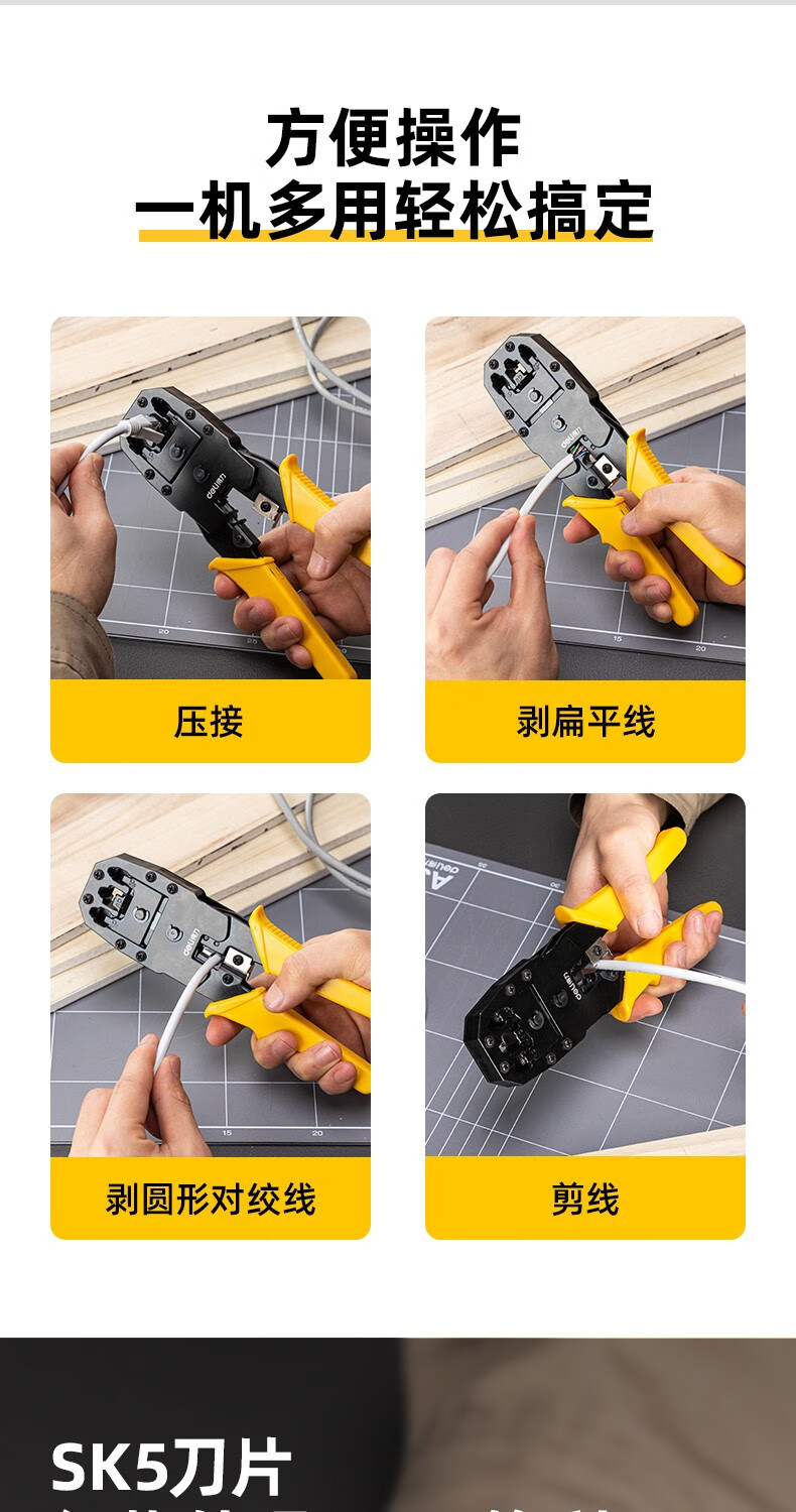 Deli network cable pliers set household multi-functional professional-grade crimping pliers crystal head connector pliers network cable tester single three-purpose network pliers DL2468C