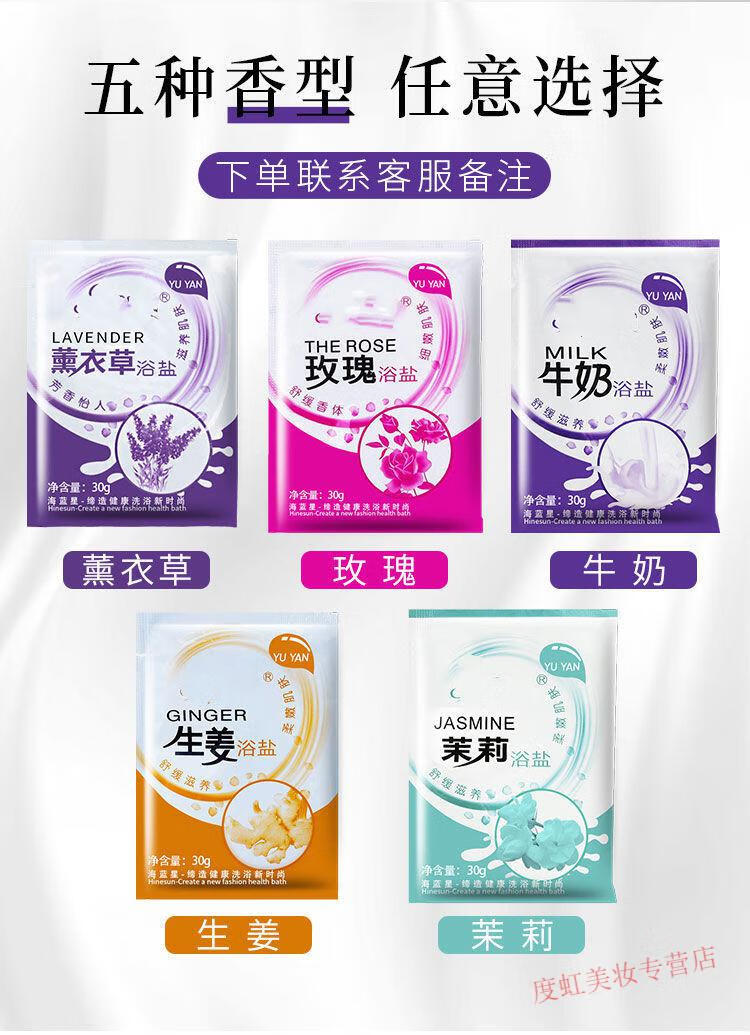 100 bags of milk bath salt anti-itch sea salt whole body exfoliating dead skin chicken skin foot bath supplies rose + milk + ginger + jasmine + lavender 10 bags